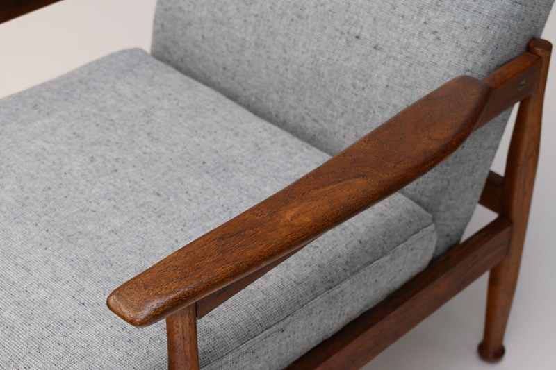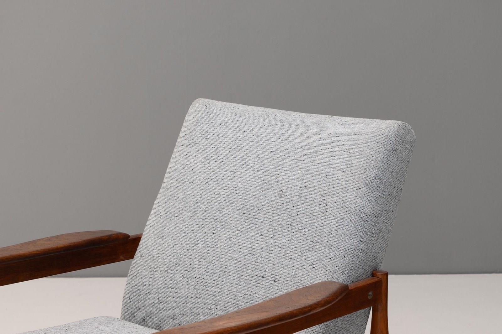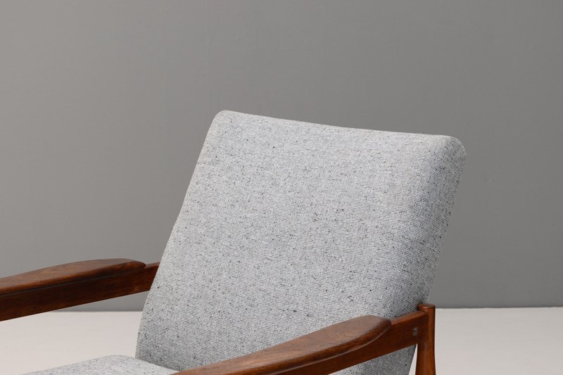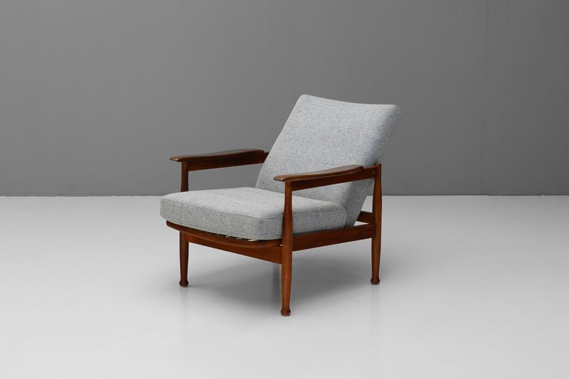 Reclining armchair by Guy Rogers, newly upholstered in Yorkshire wool. U.K circa 1960.