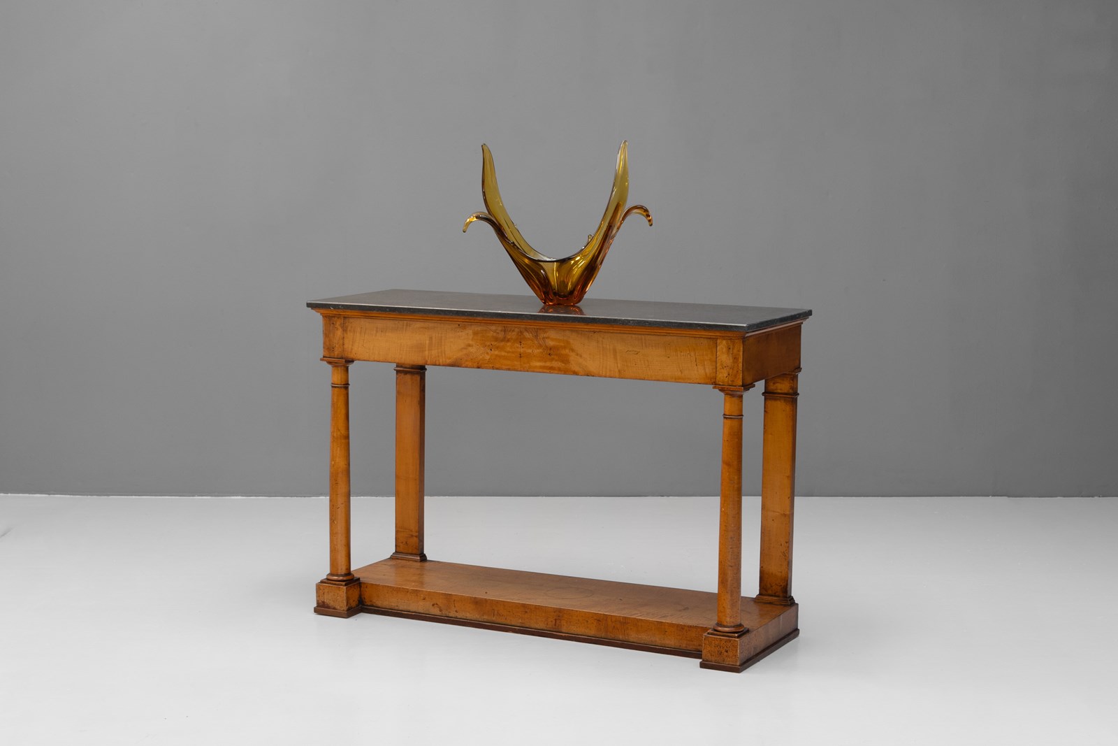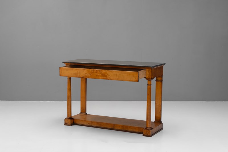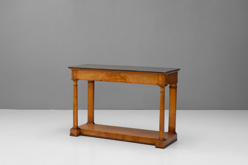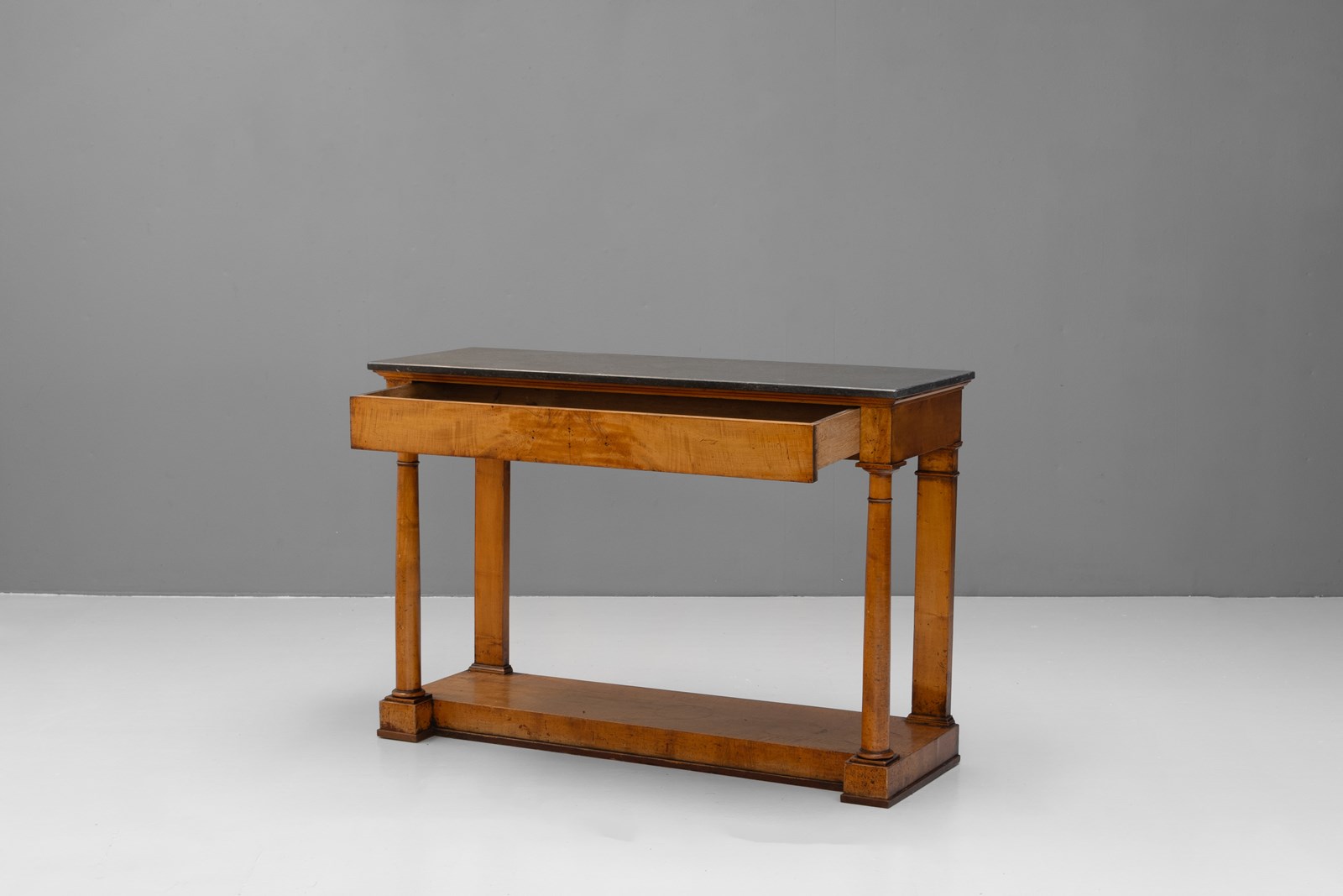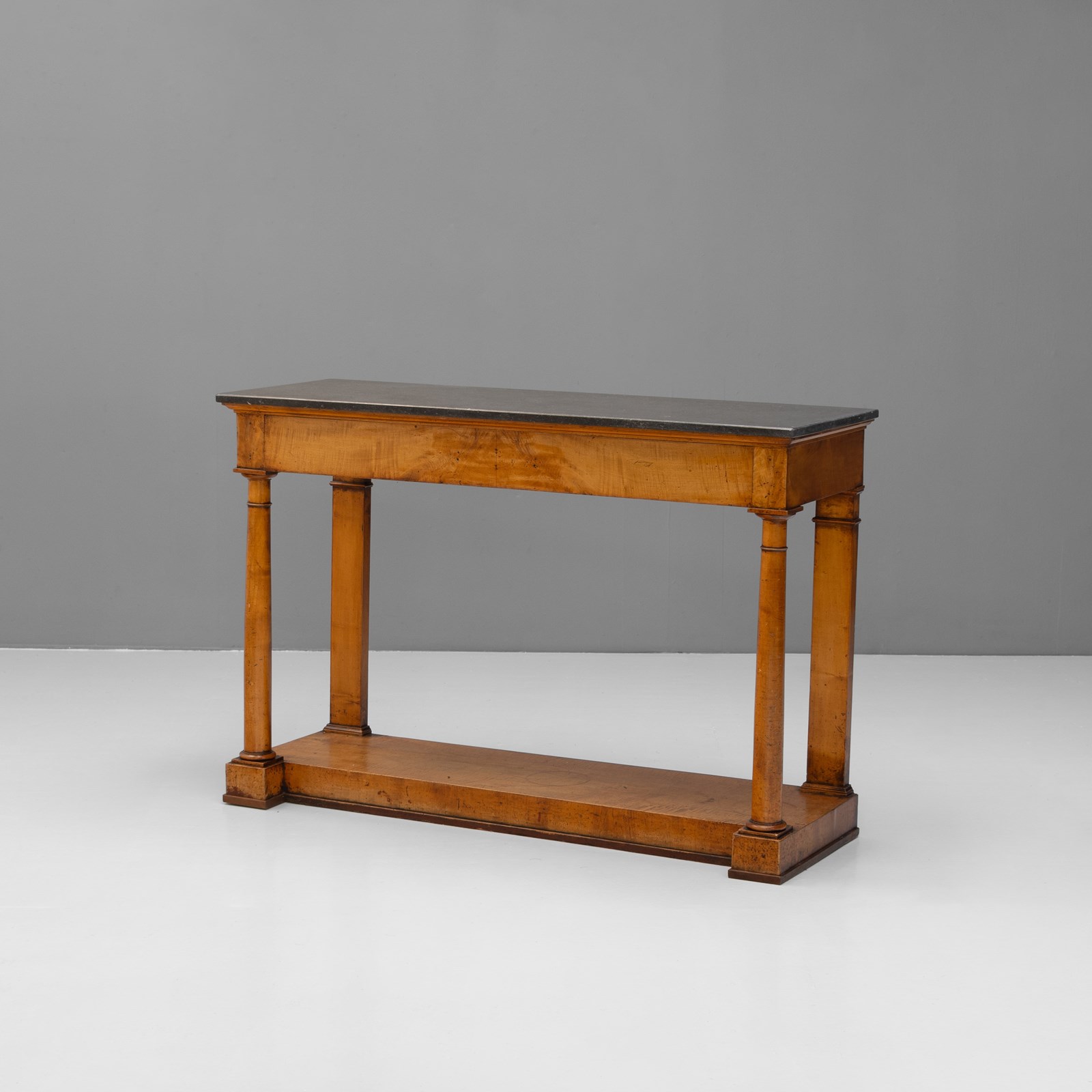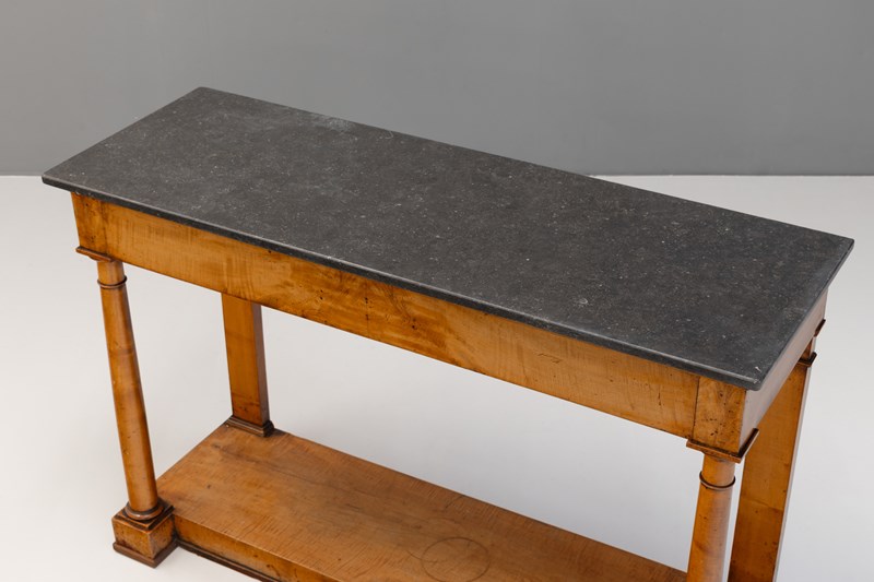 Large late 19th century French Empire style marble top cherry console table. Great size and colour. Old repair to marble top, hardly noticeable as shown in images. France circa 1850.