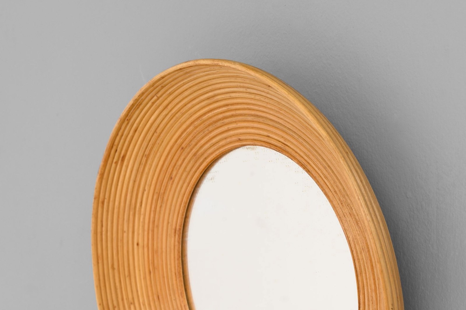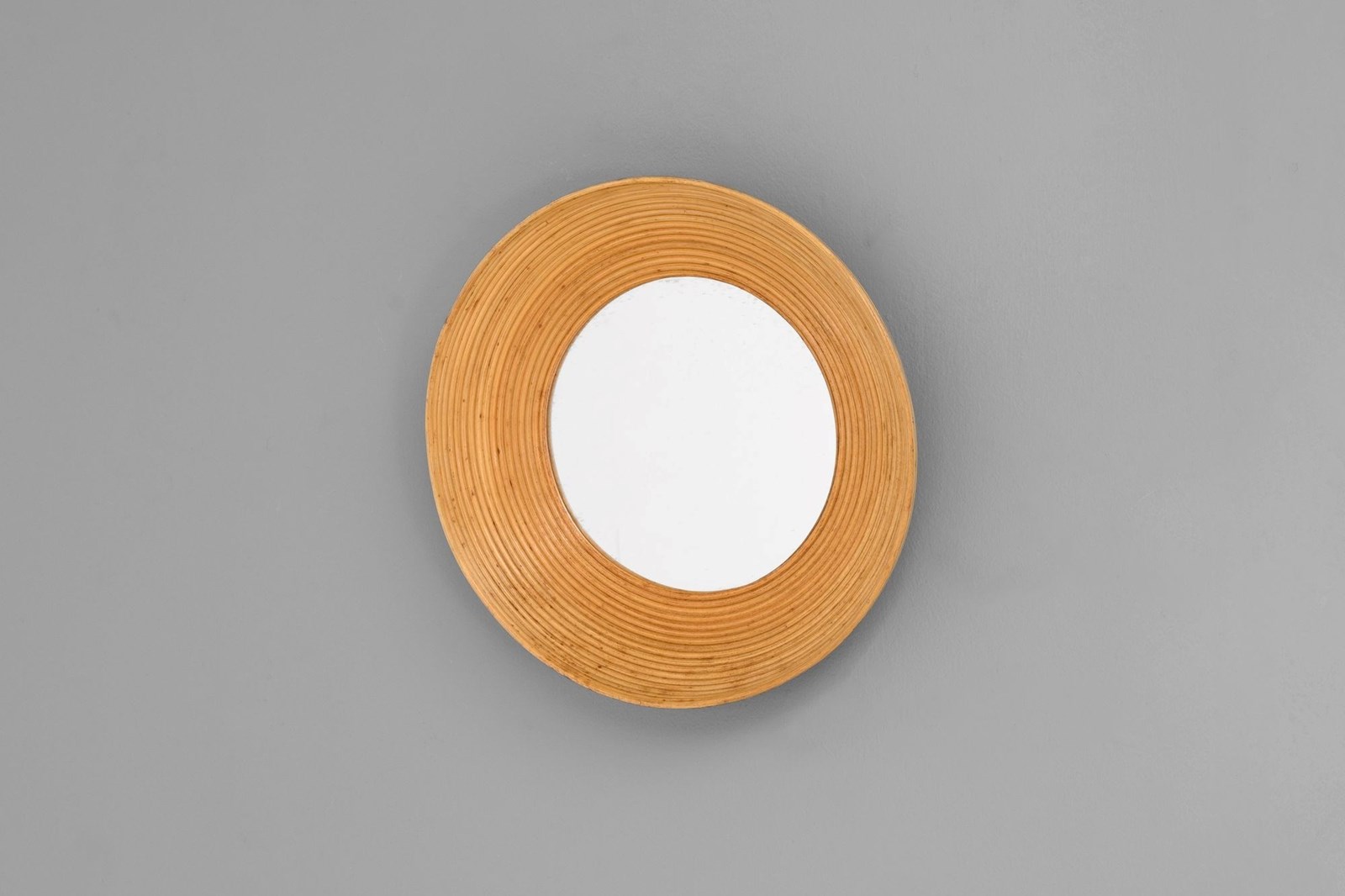 Small cane bowl shaped mirror. Original glass.