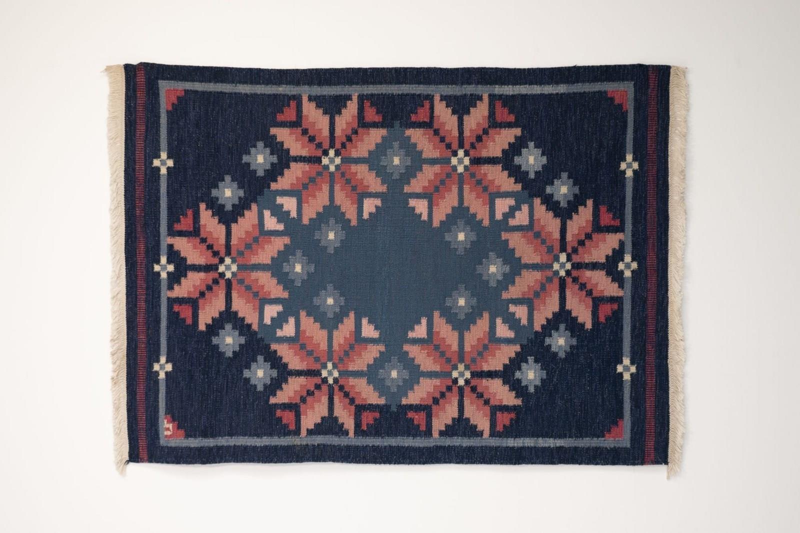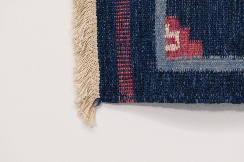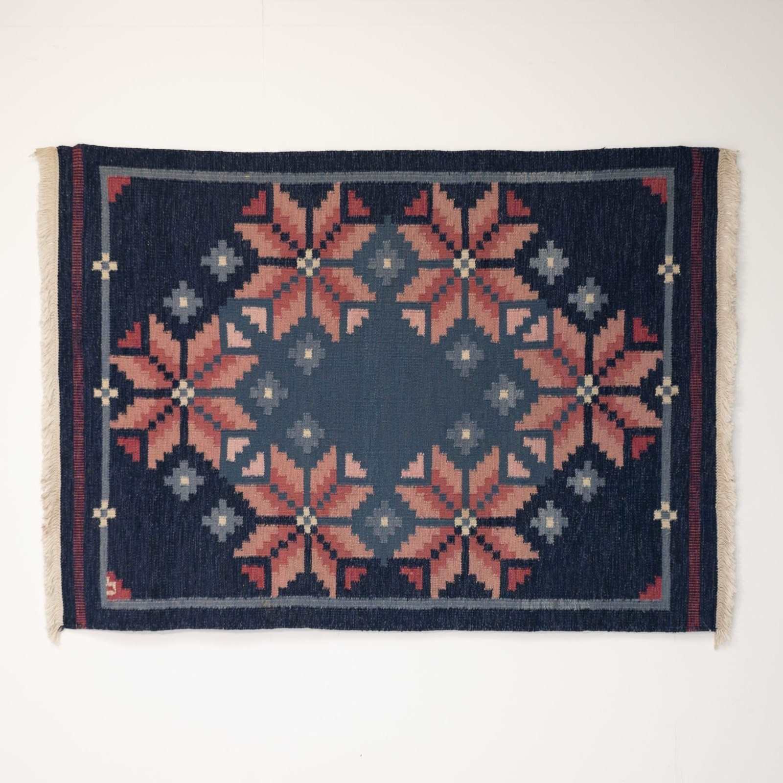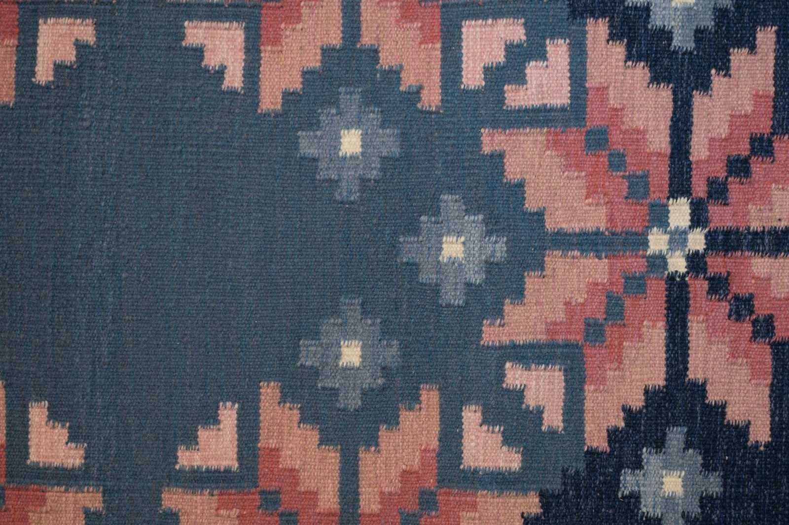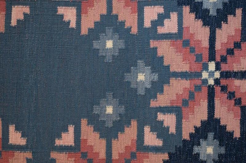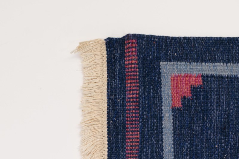 Mid-Century Swedish Kilim In Navy And Pink