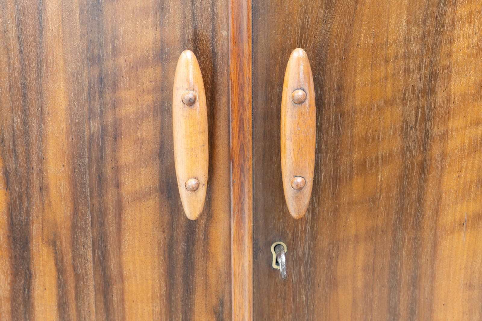 Mid-Century English wardrobe by Vesper in beech and walnut. Fully restored. U.K circa 1950.