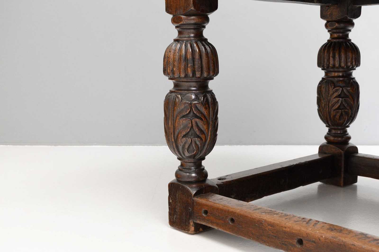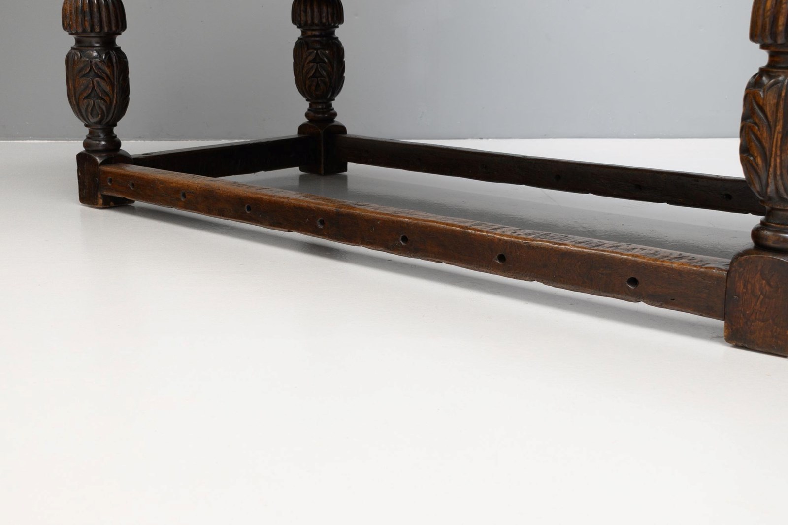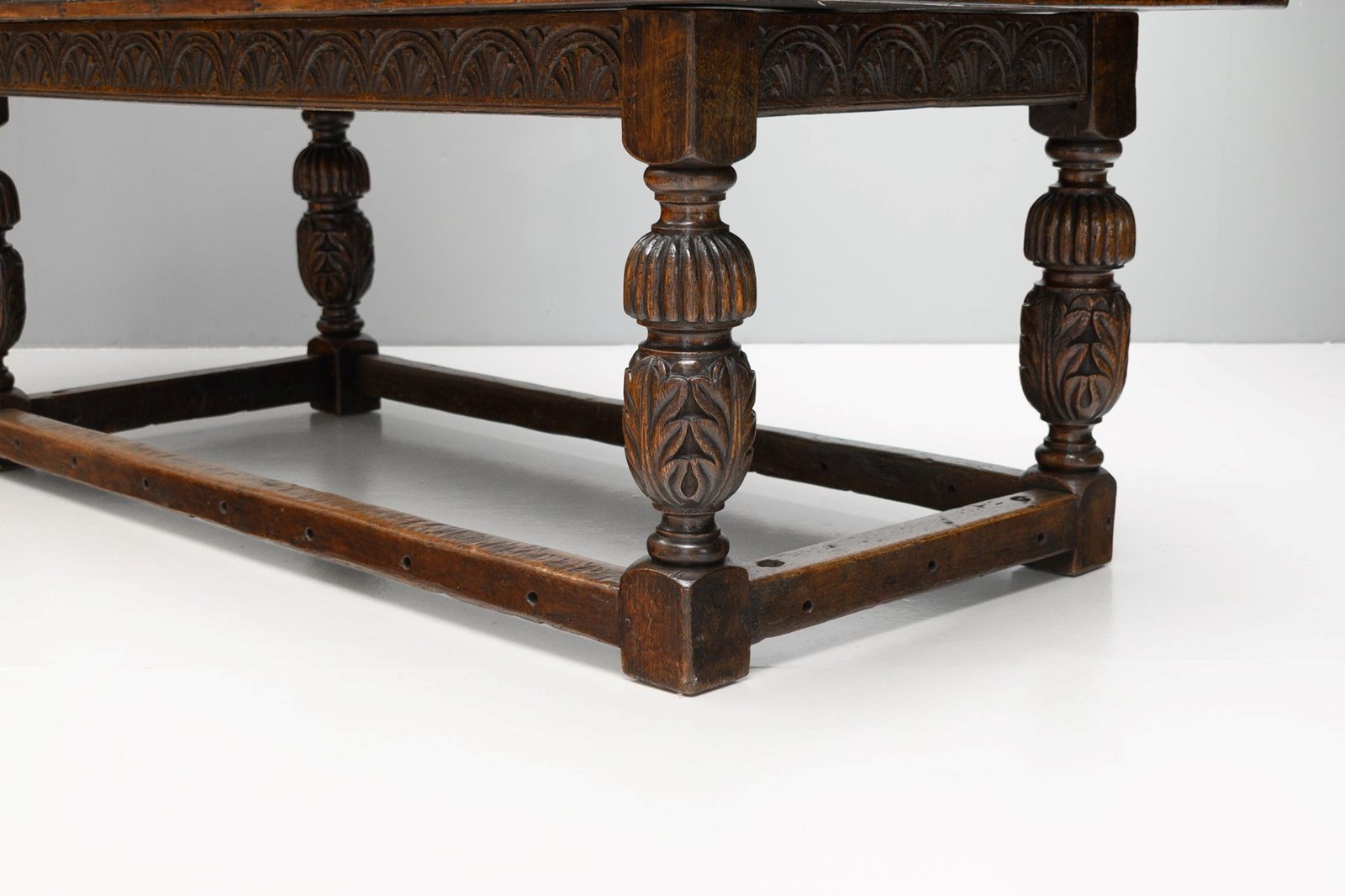 Oak refectory table with plank top on stretcher base. U.K circa 1850.