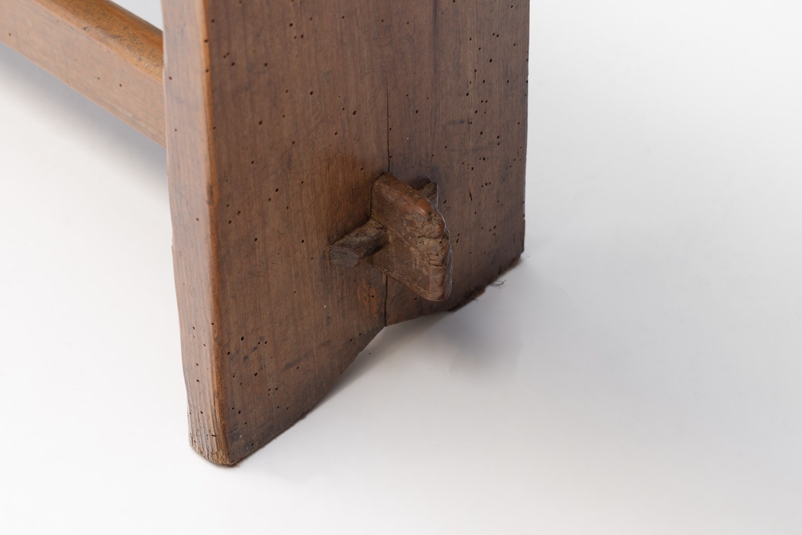Pair of early 20th century solid pine benches. Great aged patina with signs of old worm. Fully treated and restored. France circa 1920.
