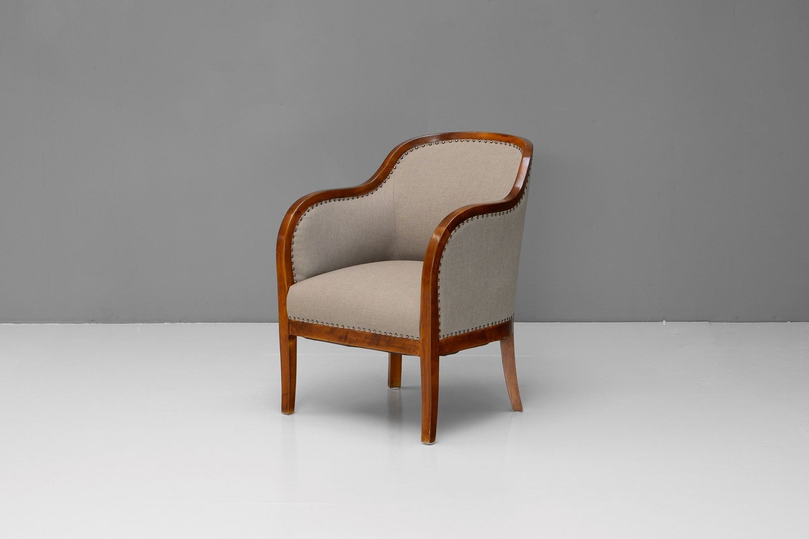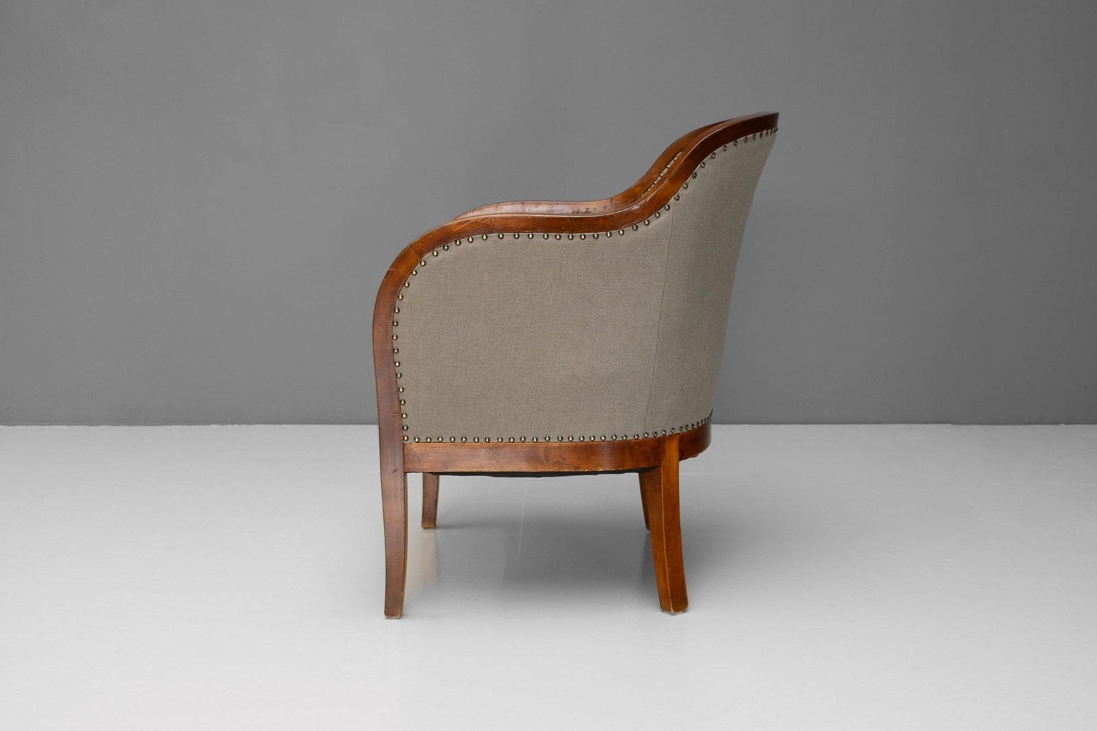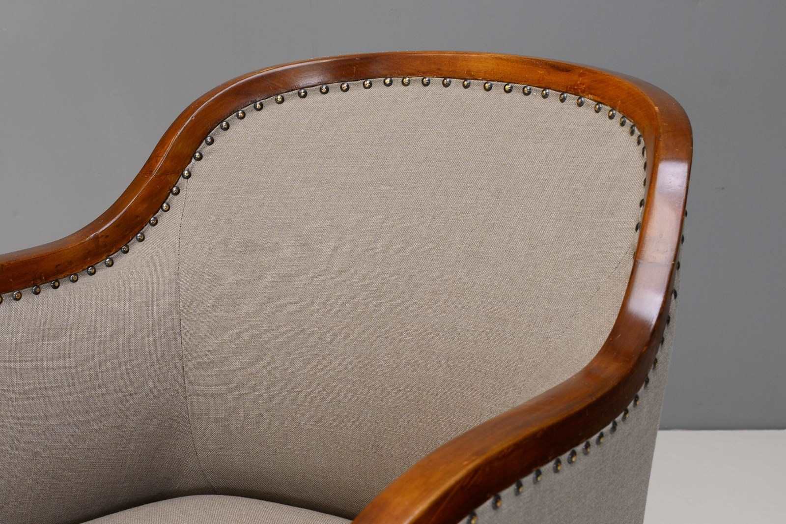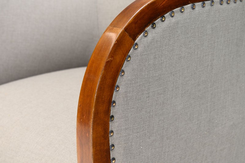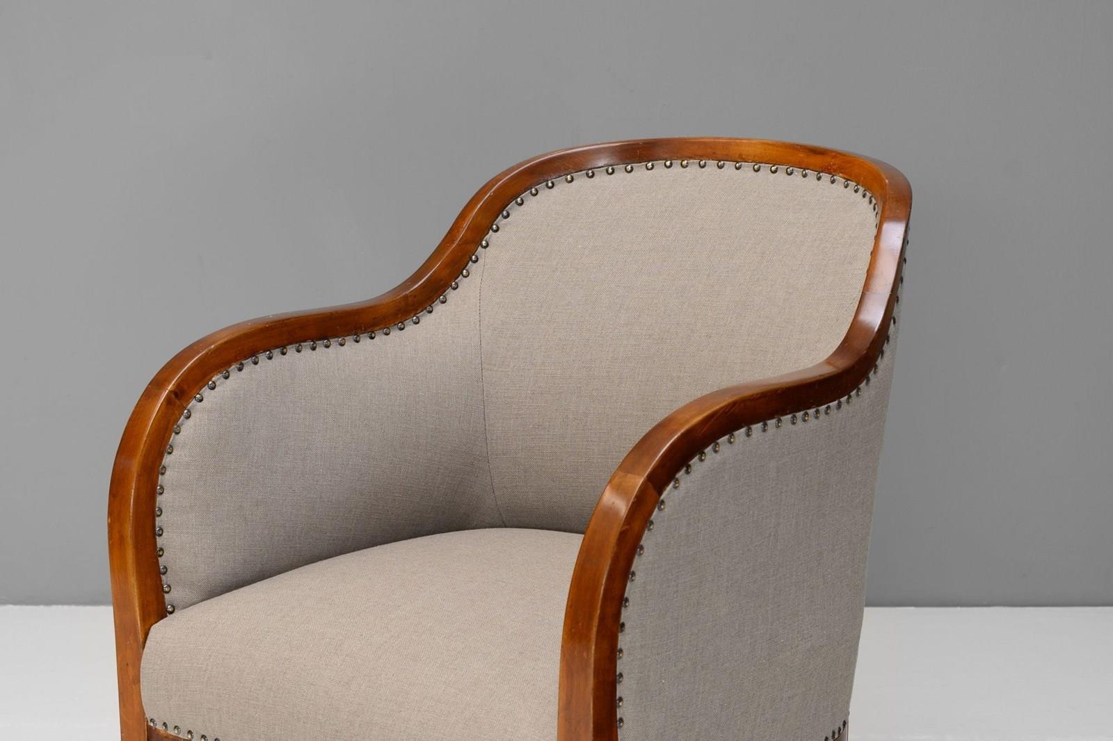 Pair of Swedish art deco club chairs fully restored and upholstered in a muted green fabric. Re-finished.