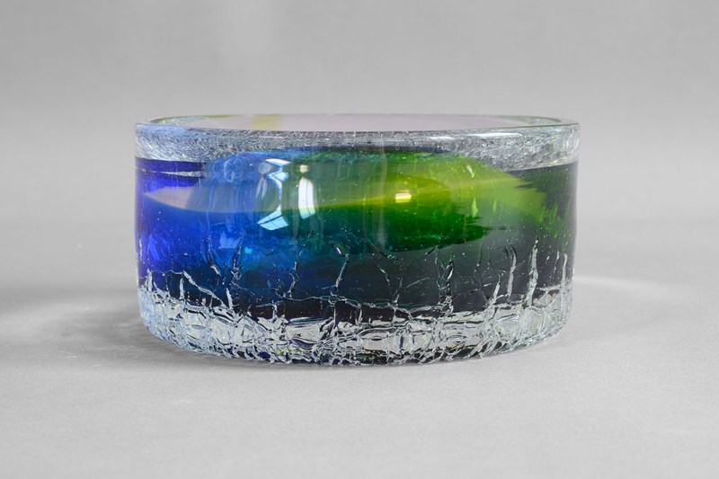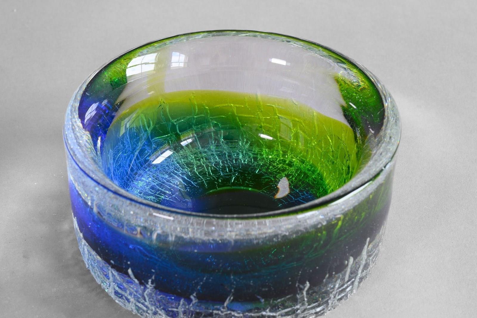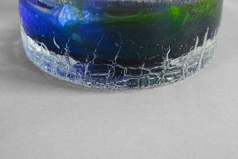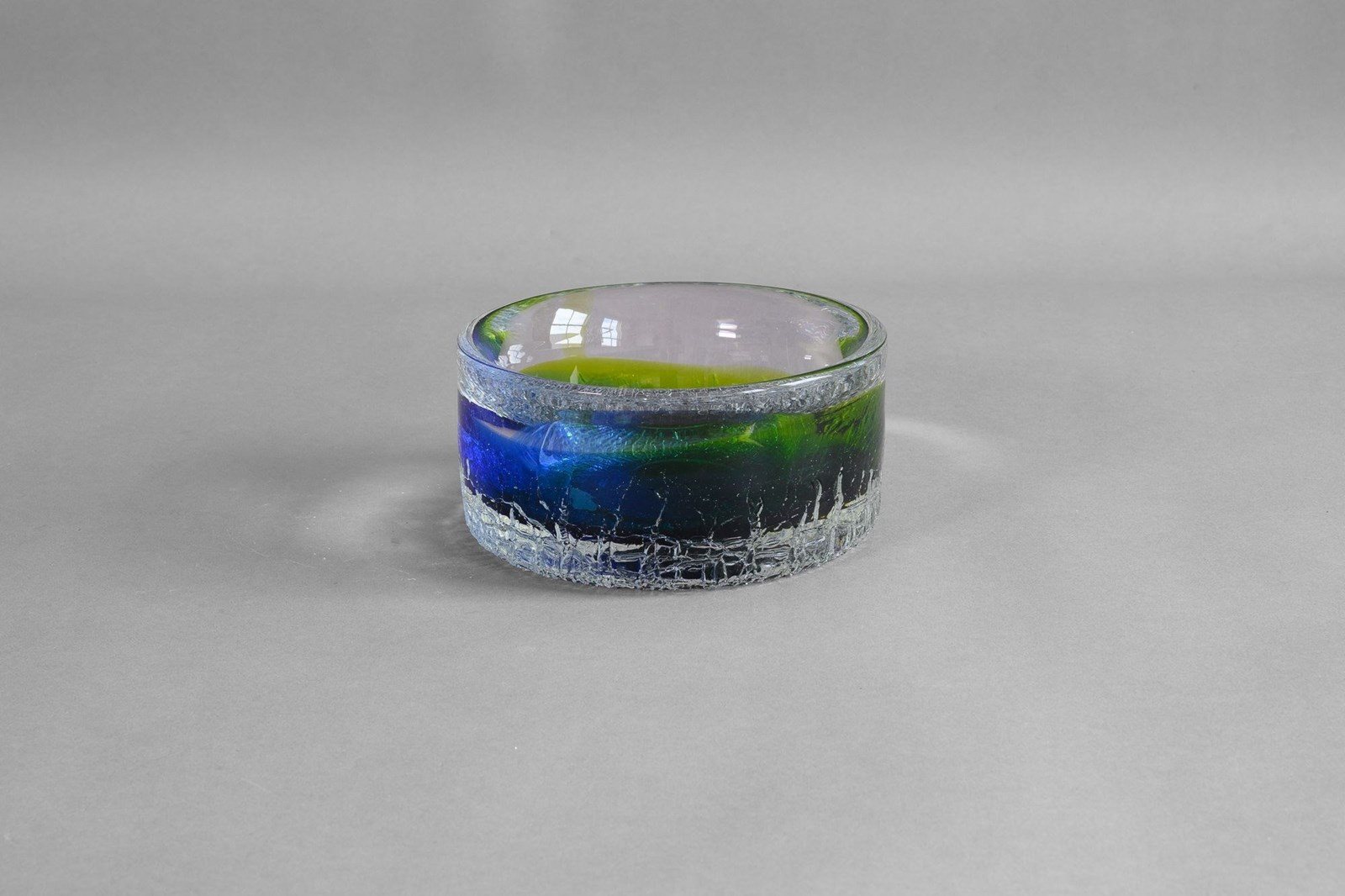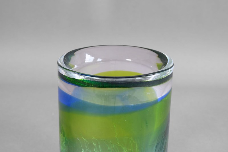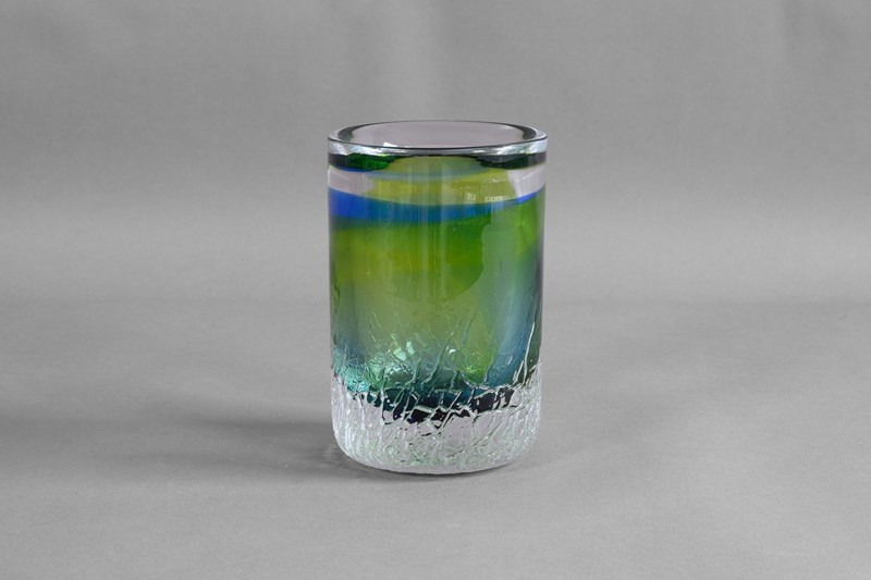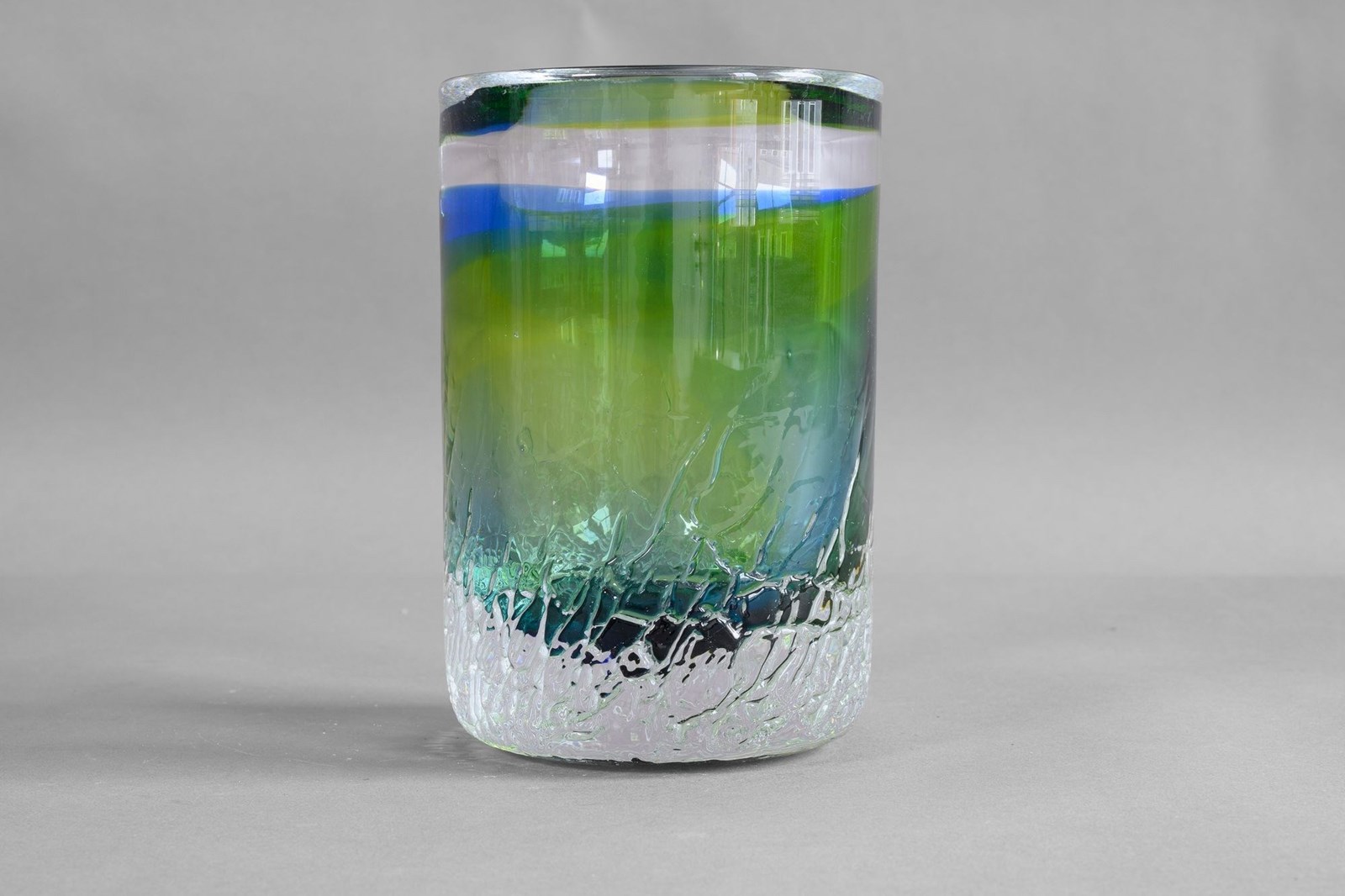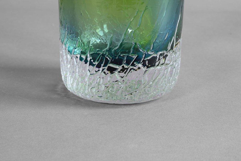 Pair of late 20th Century glass vases in a green and blue textured finish.