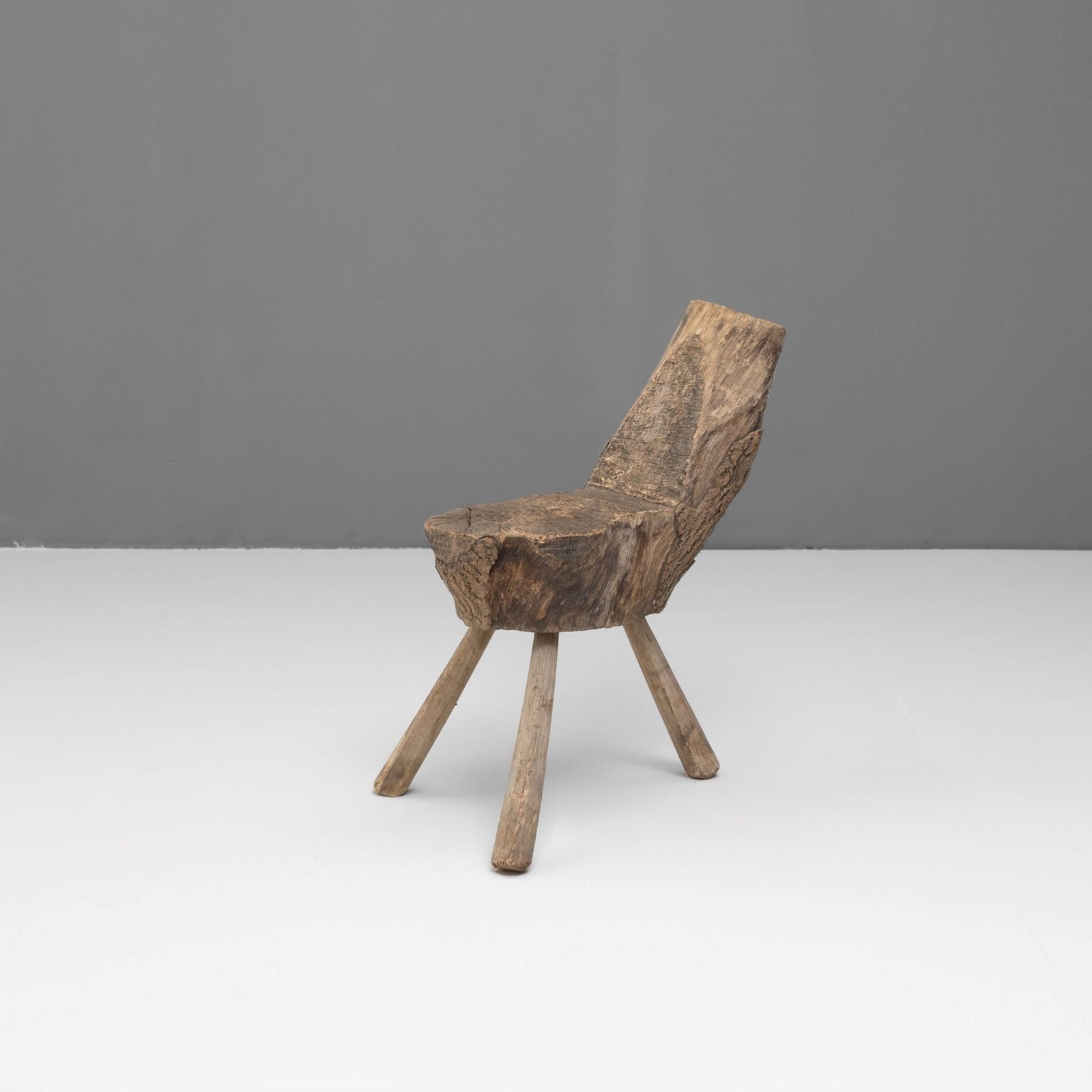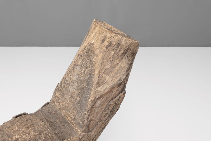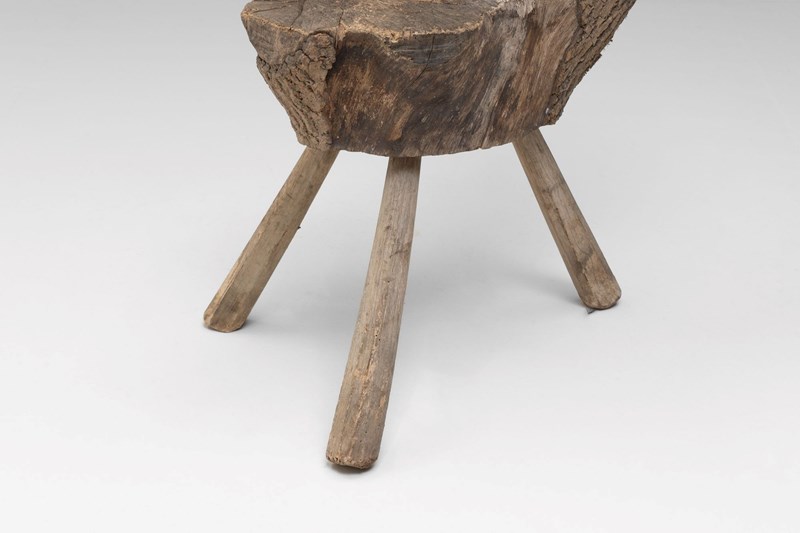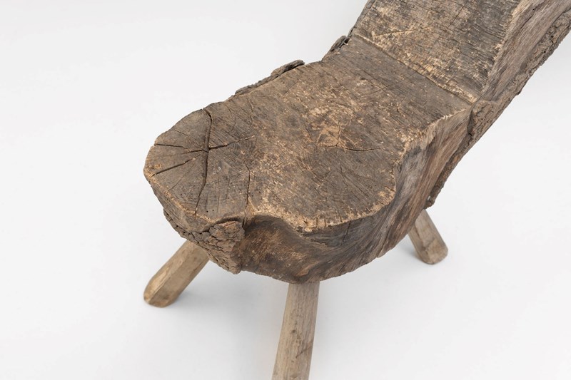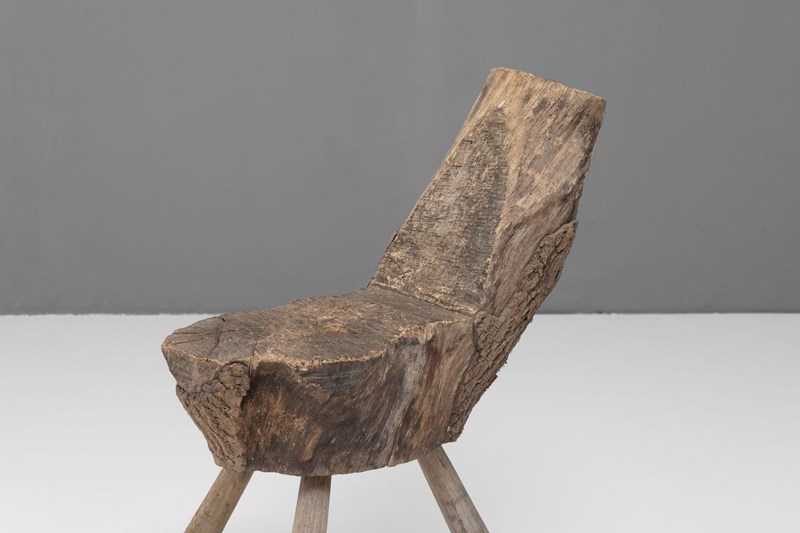 Rough hewn primitive French seat on 3 legs.