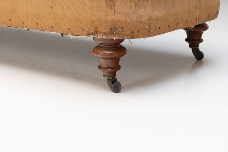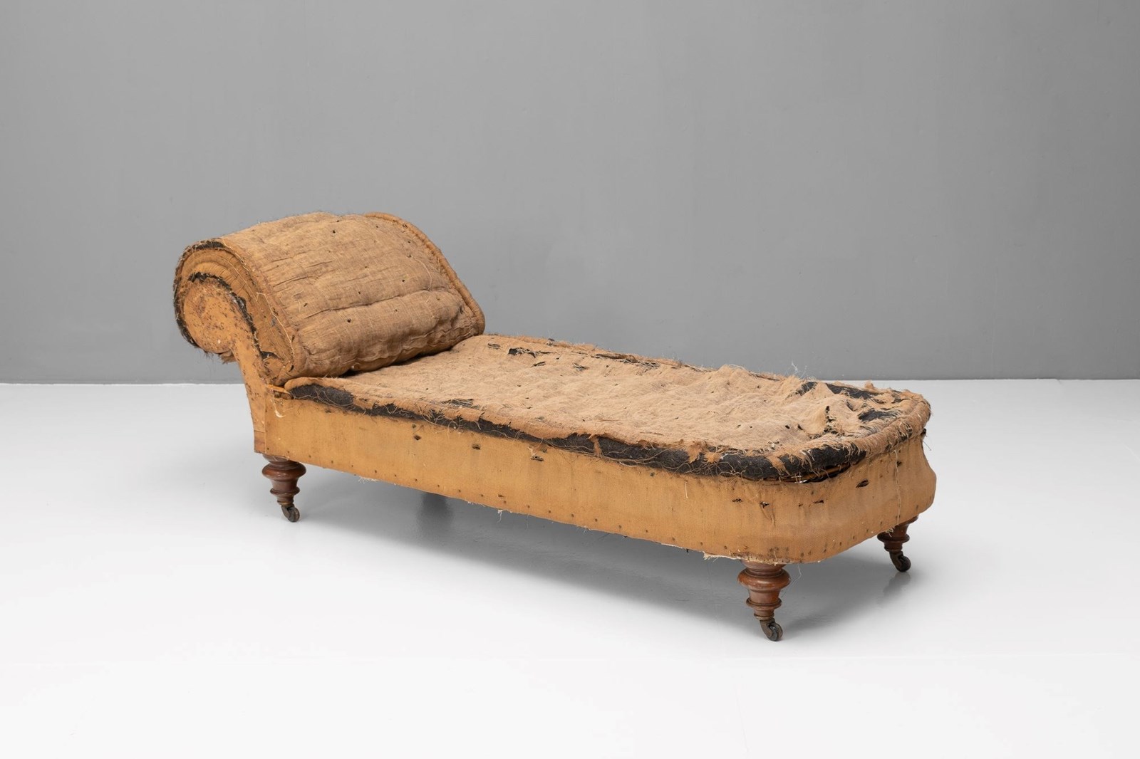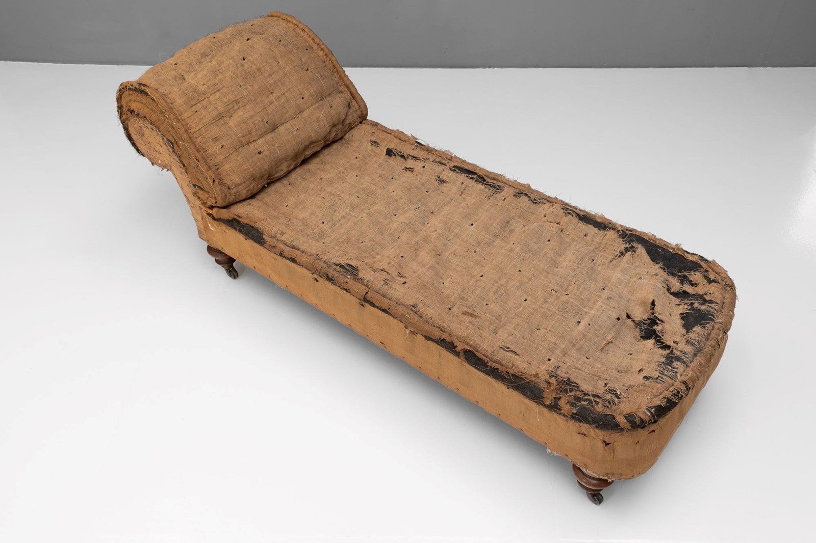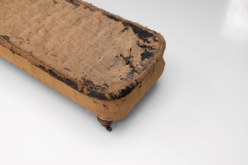 Scroll end daybed on turned walnut feet with original casters. Circa 1890.