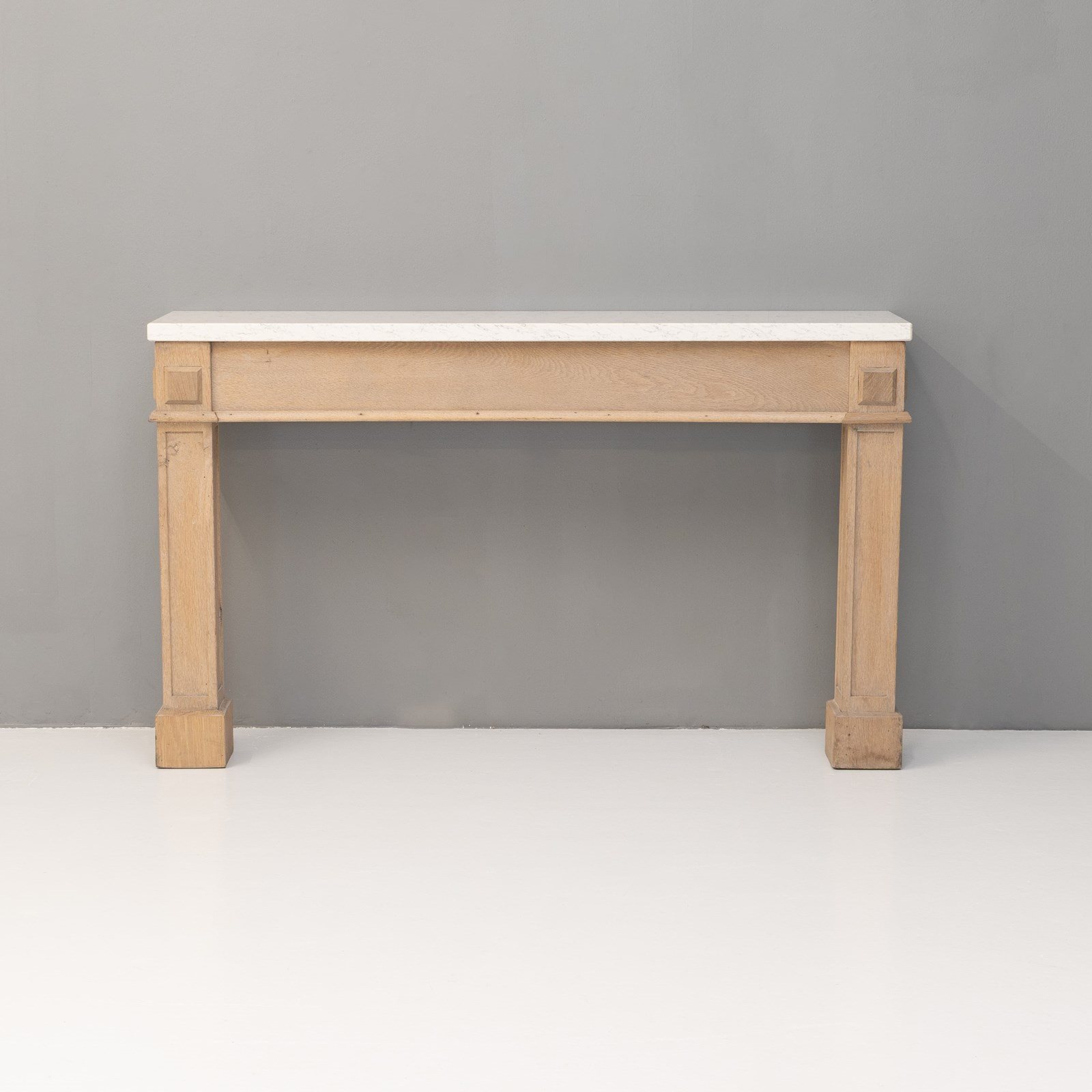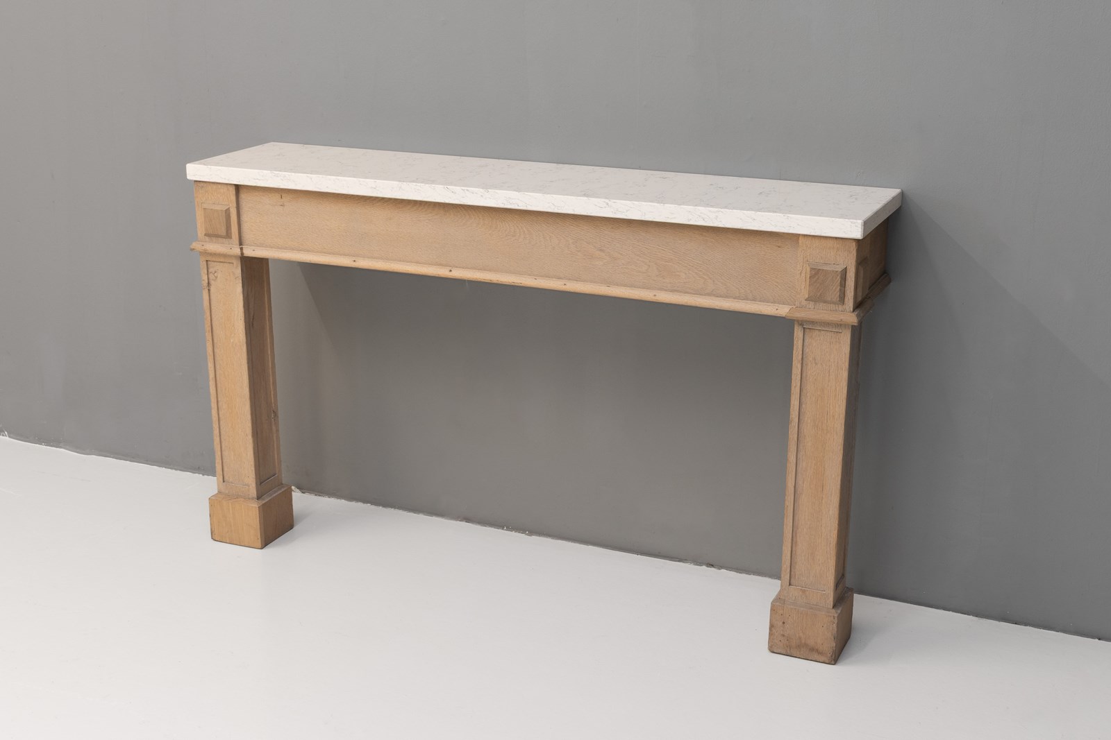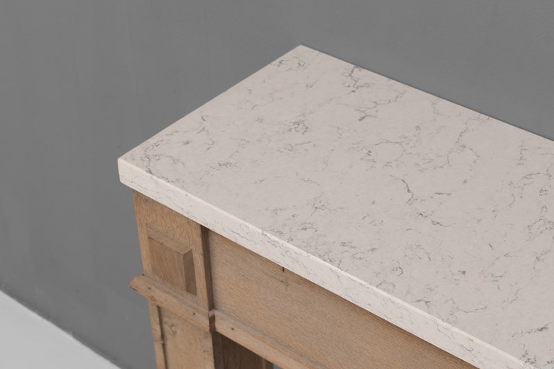 Oak frame side / console table with replaced modern quartz top. Circa 1900.