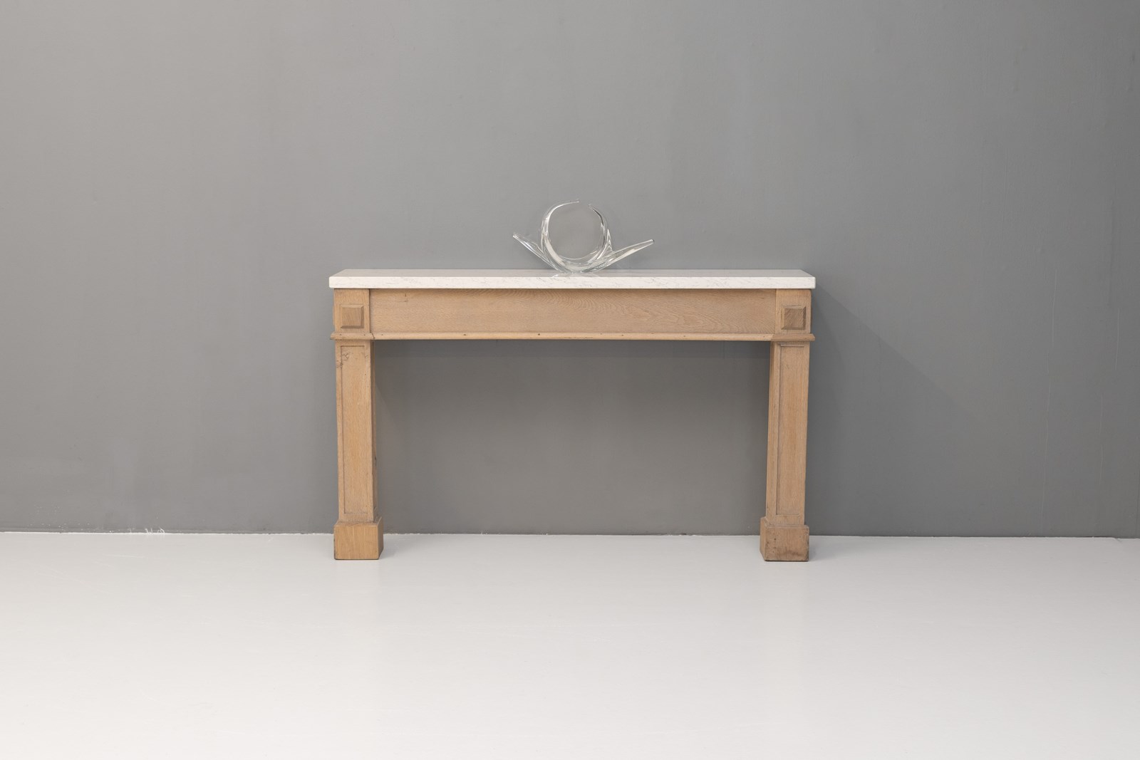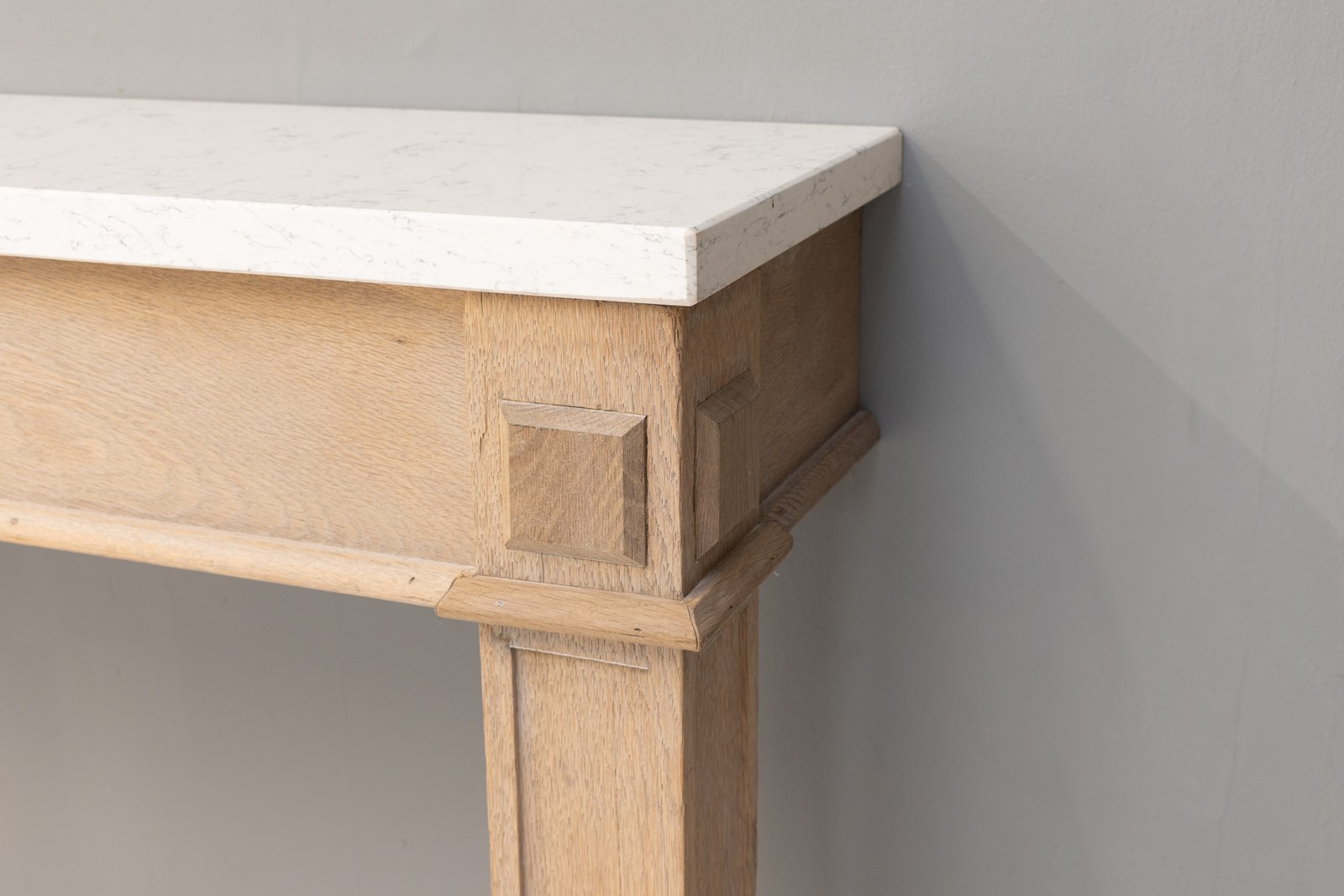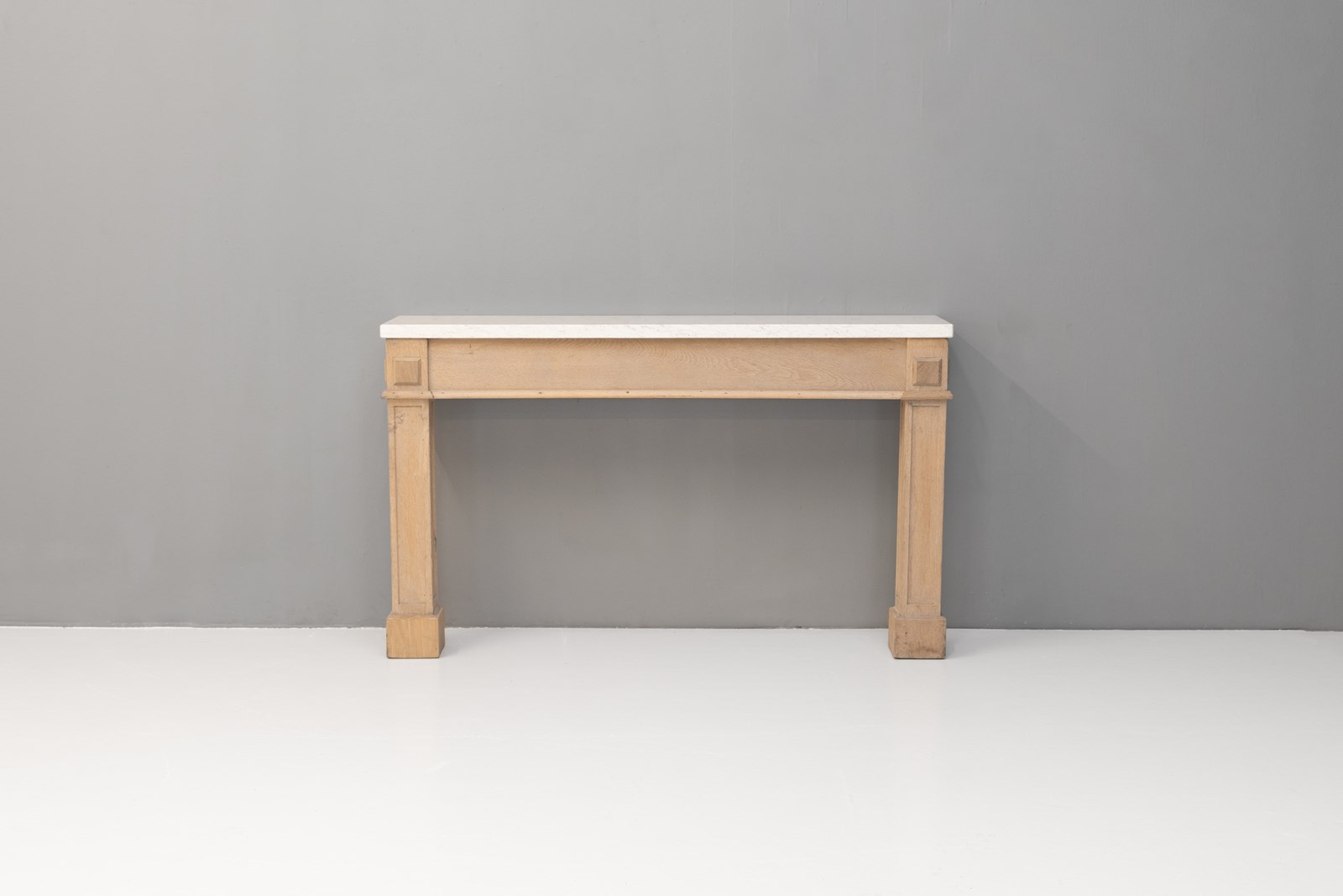 Oak frame side / console table with replaced modern quartz top. Circa 1900.