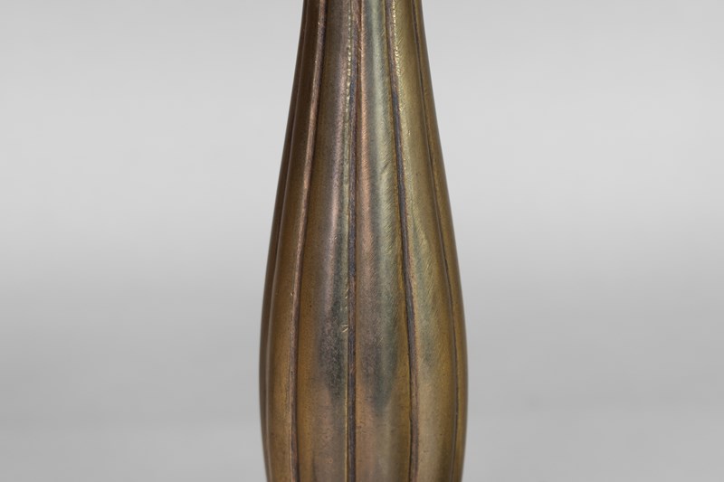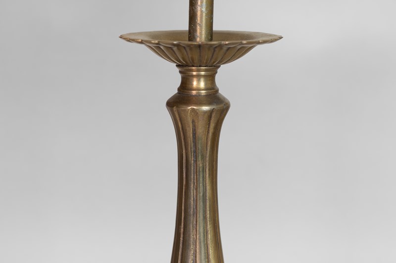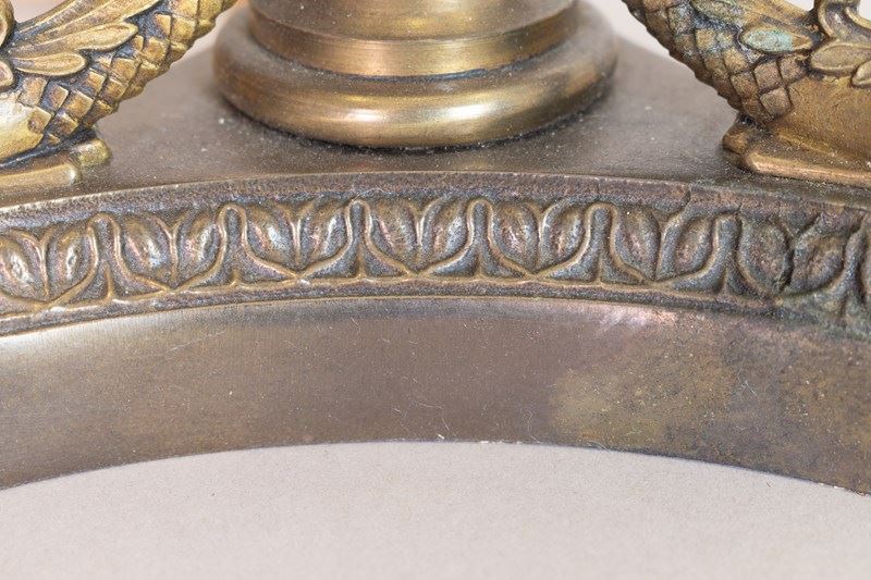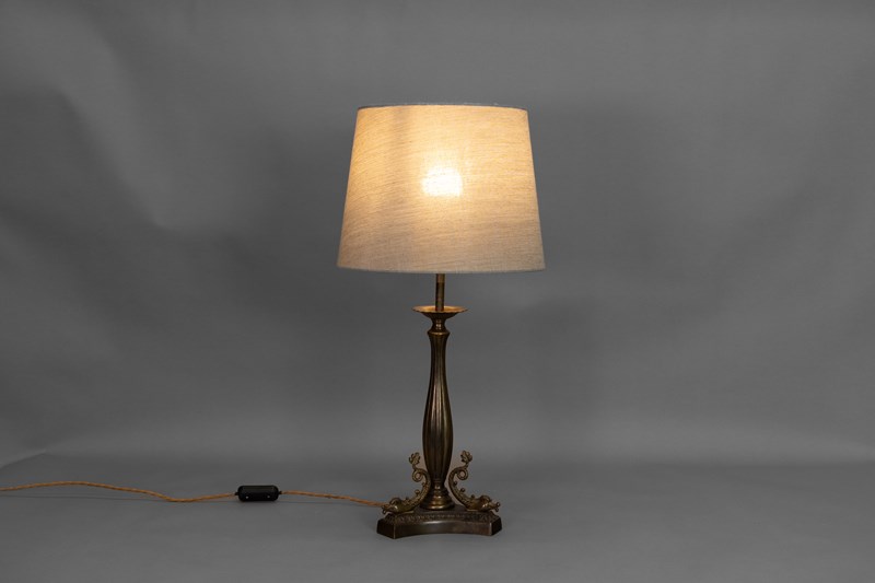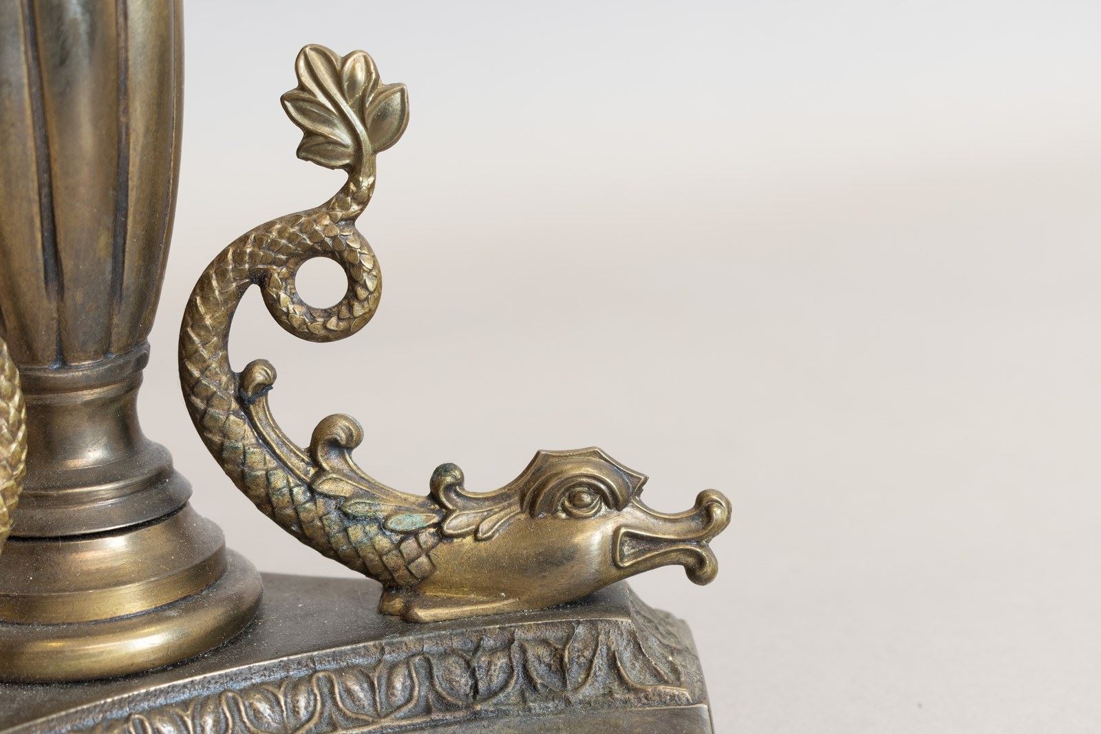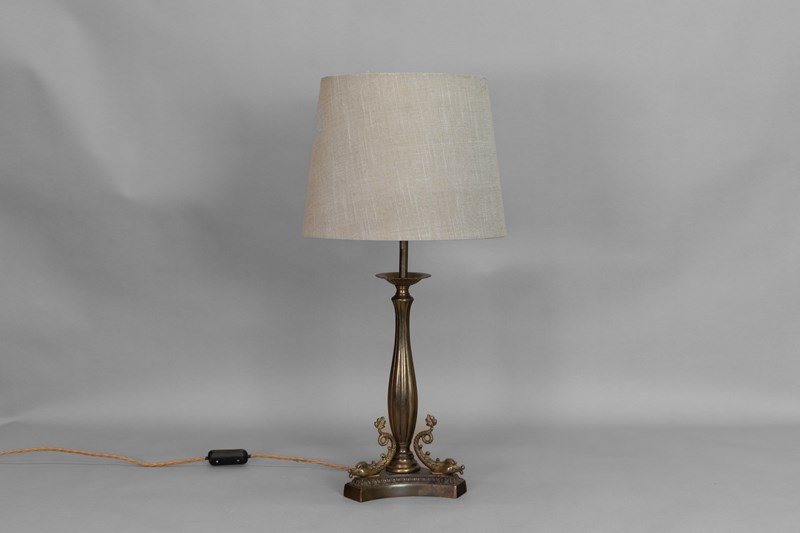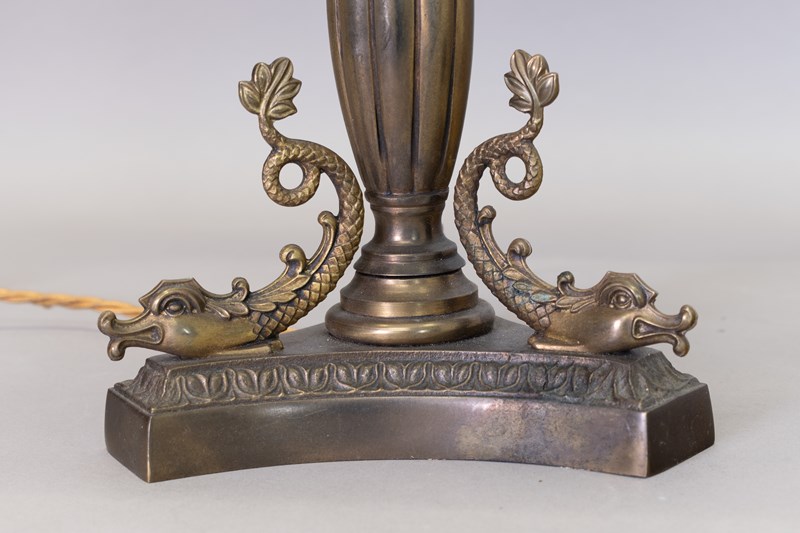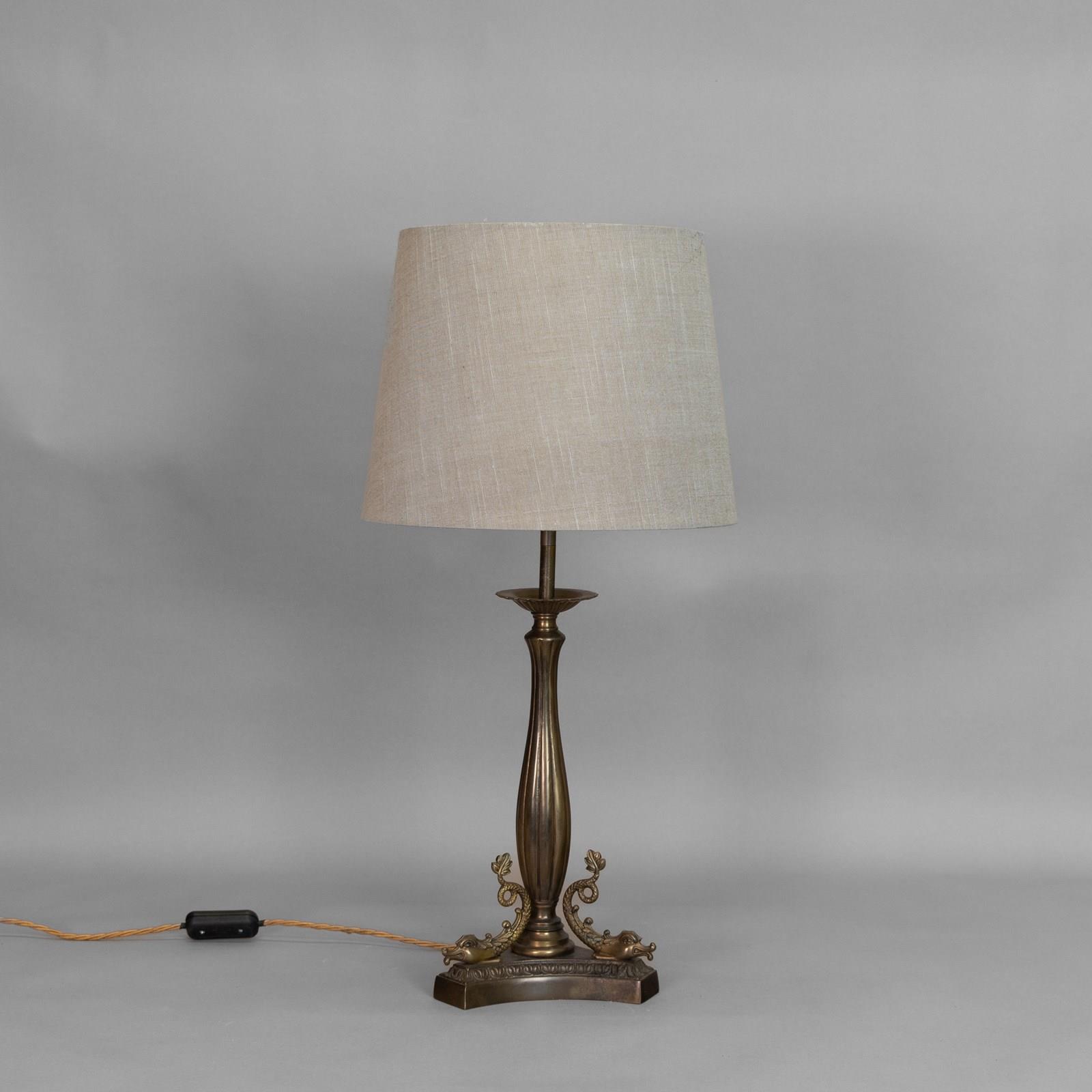 Solid brass table lamp with fish decoration. Shade not included. France circa 1900.