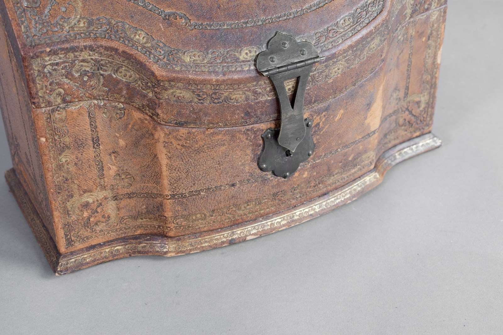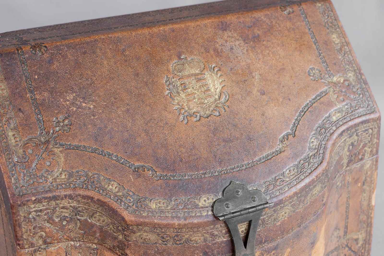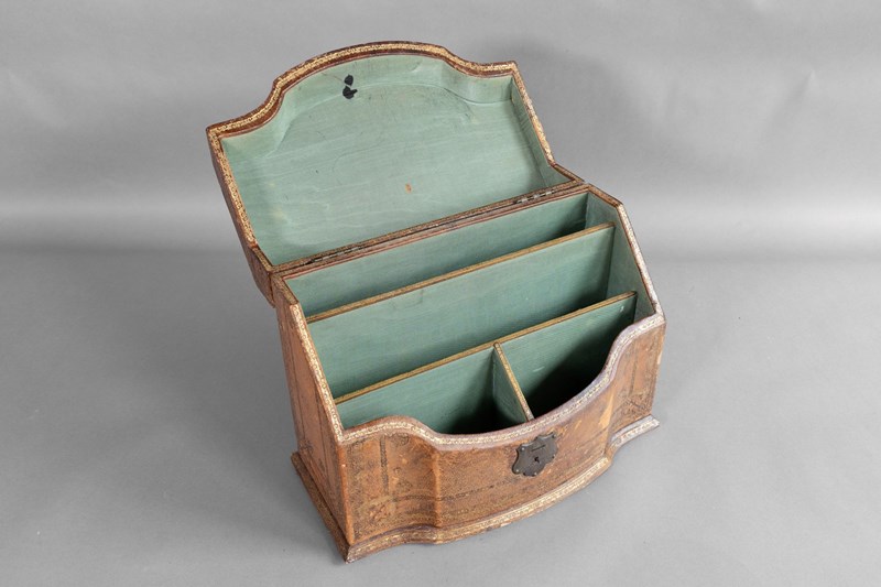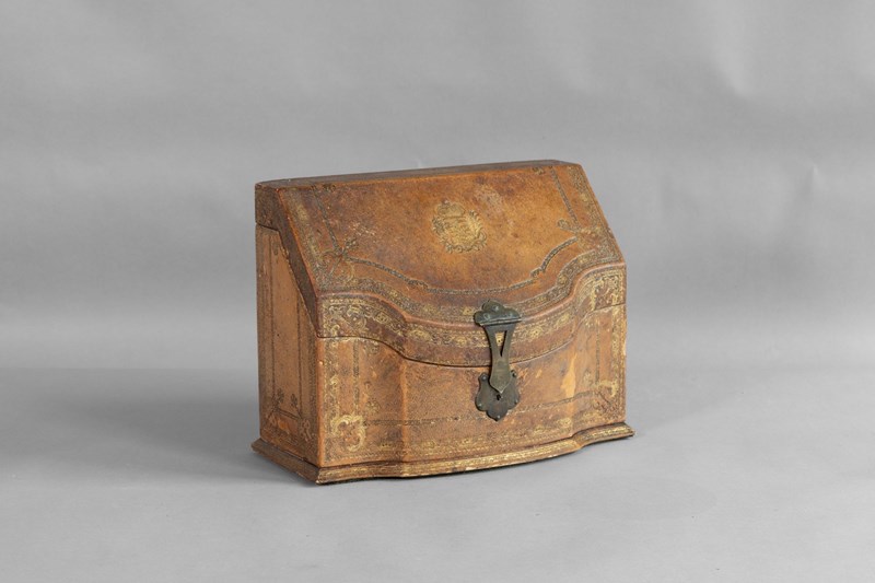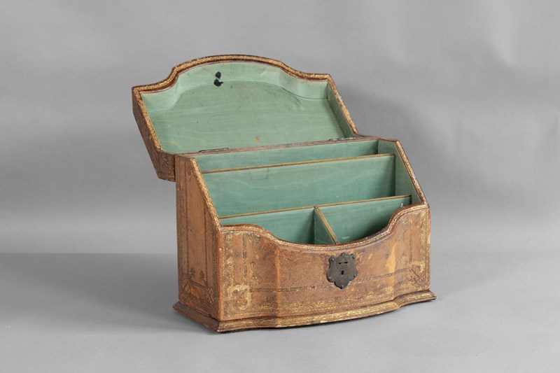 French leather bound stationery box with decorative gilding. Circa 1950.