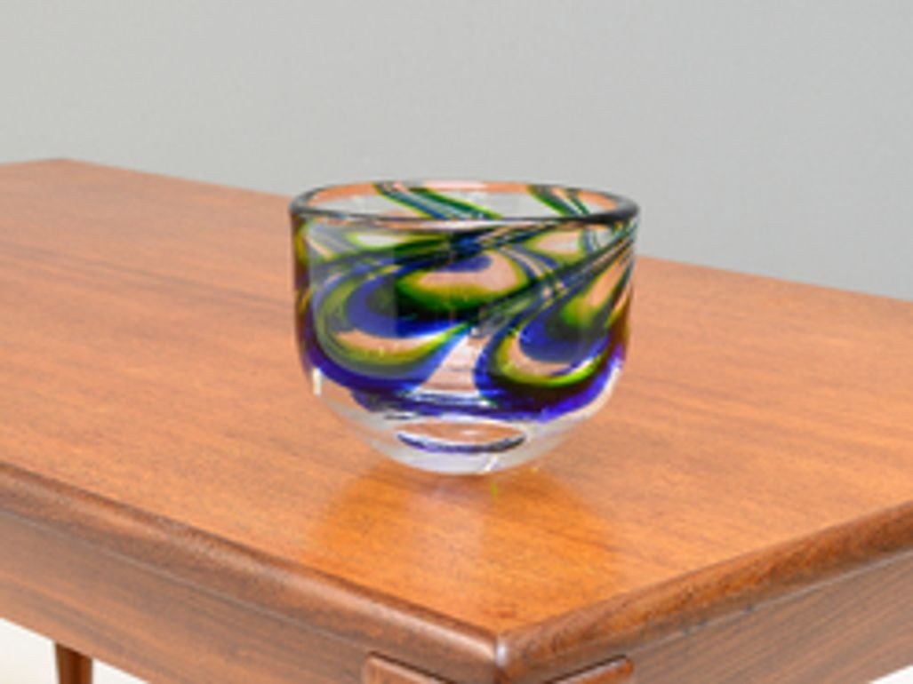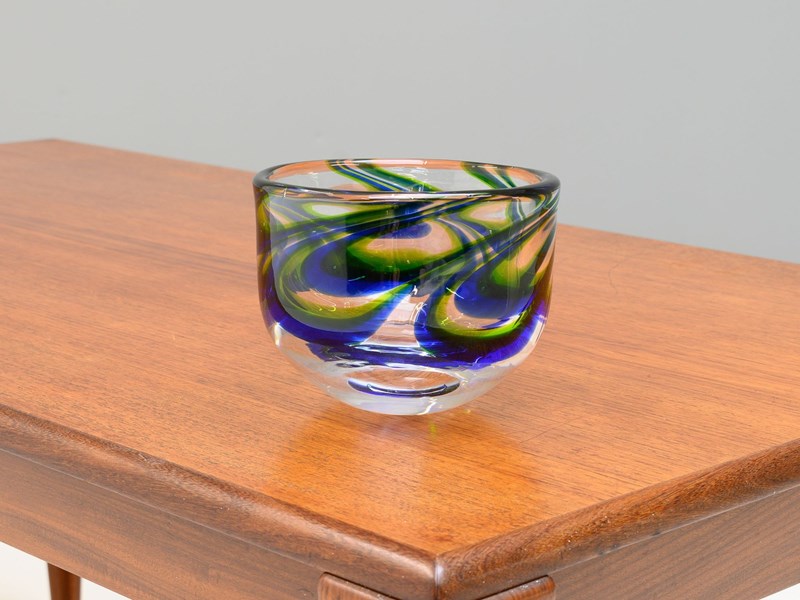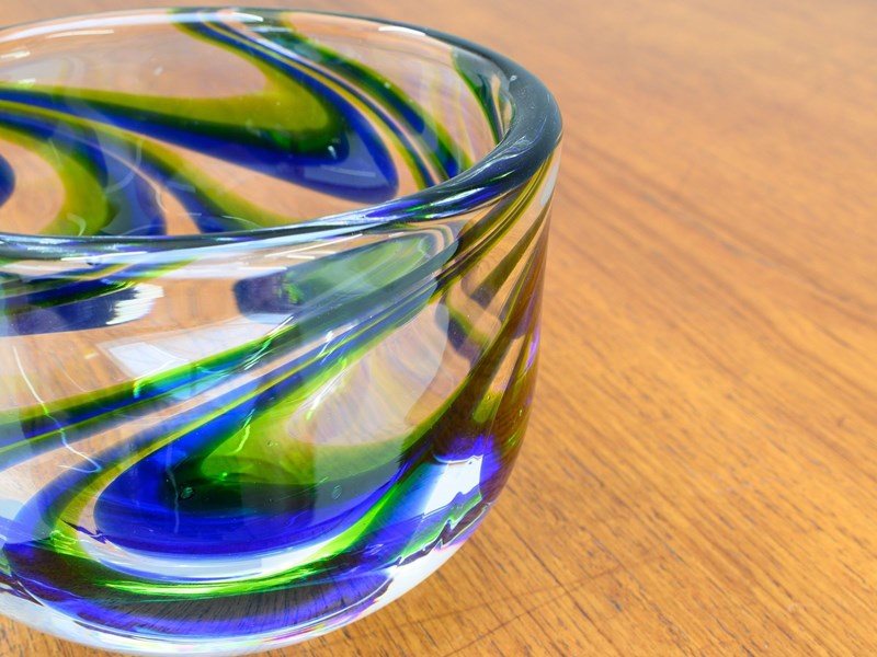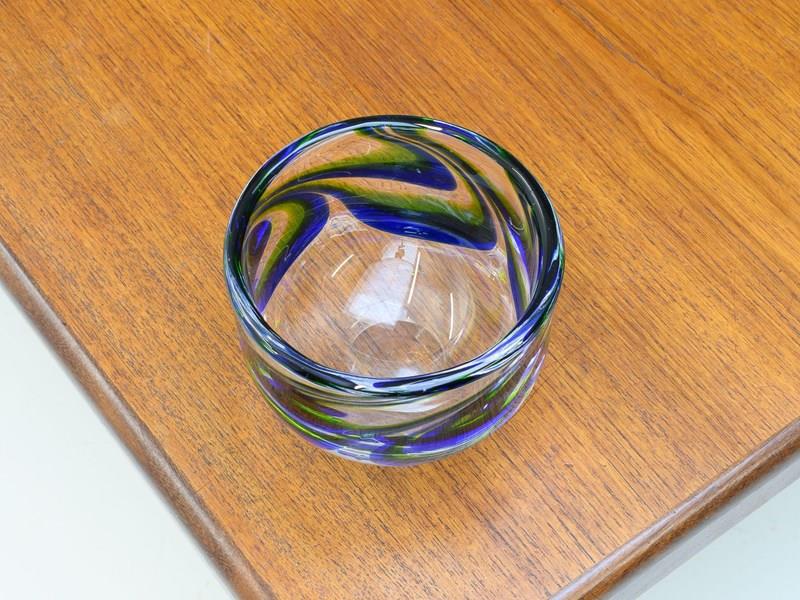 Mid-century Swedish glass vase with blue and green decoration. Circa 1960.
