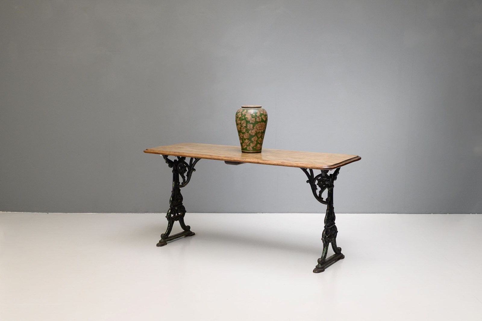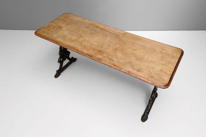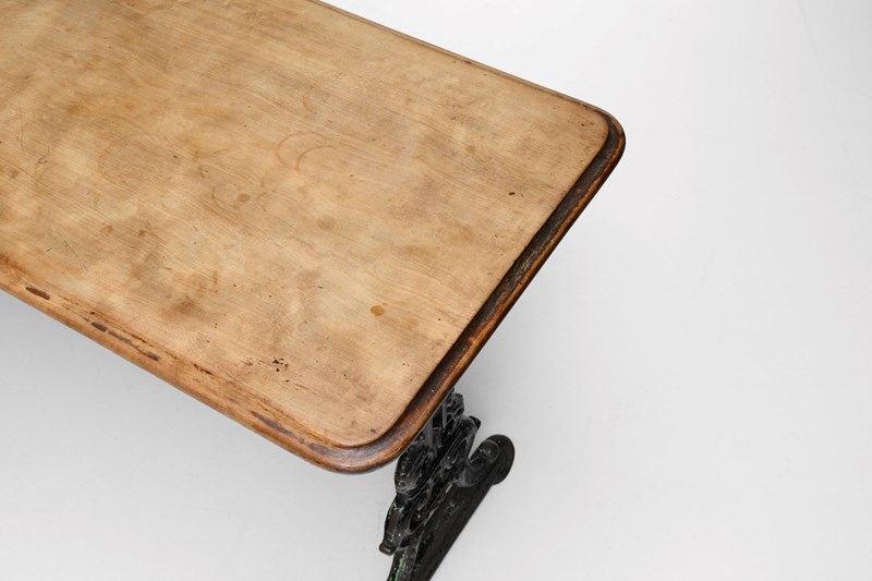 Mahogany top tavern table on cast iron ends. U.K circa 1870.