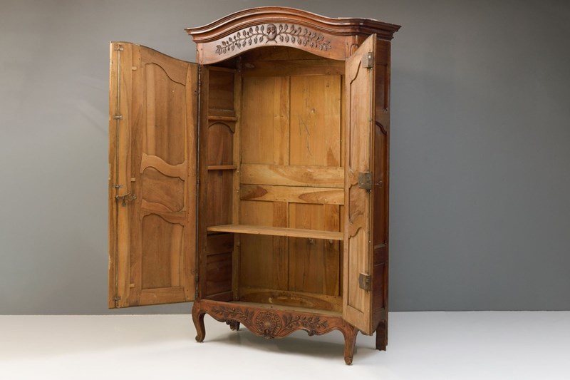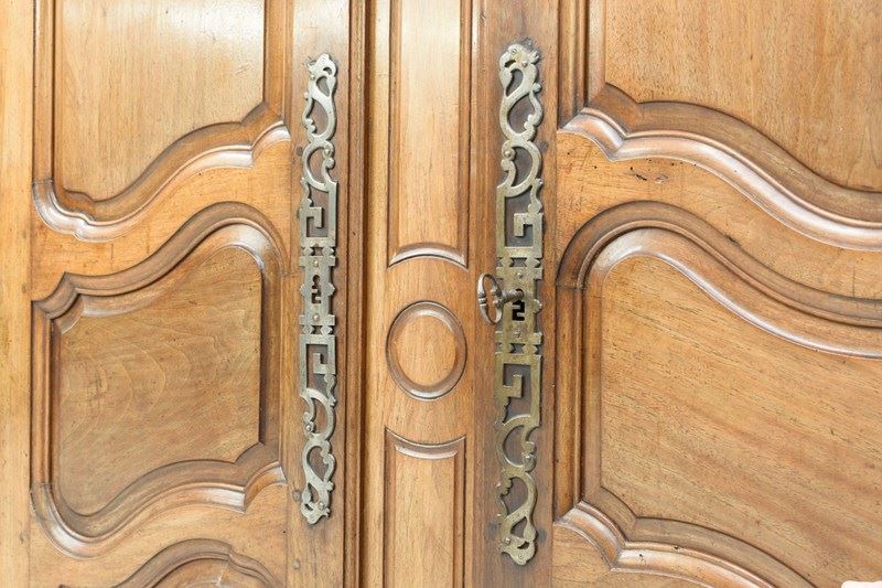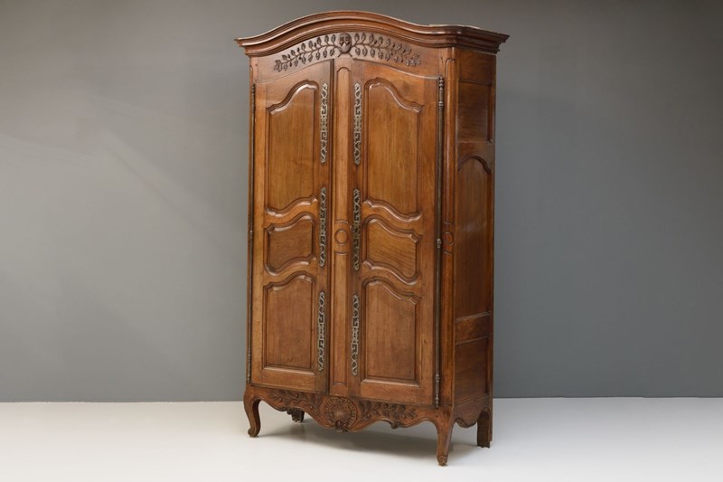 2 door French walnut armoire with arched top and shaped panelled doors. Circa 1880