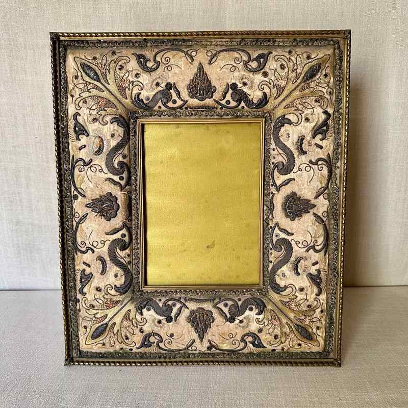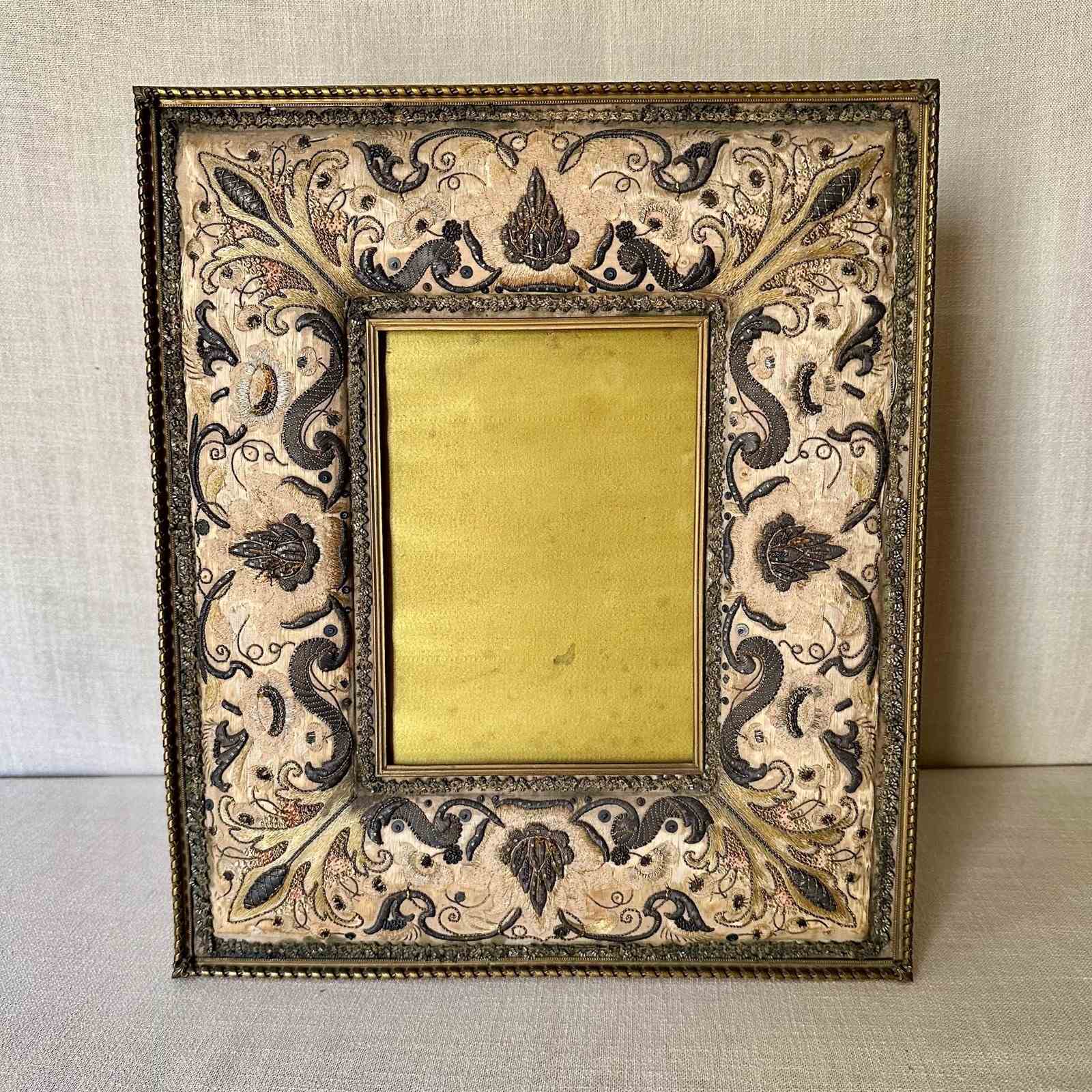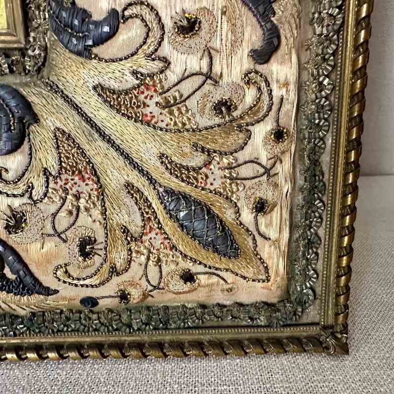 Exceptionally rare 17th Century stumpwork Reliquary frame. Designed to enshrine an image of a Saint as the focus for daily Devotions.