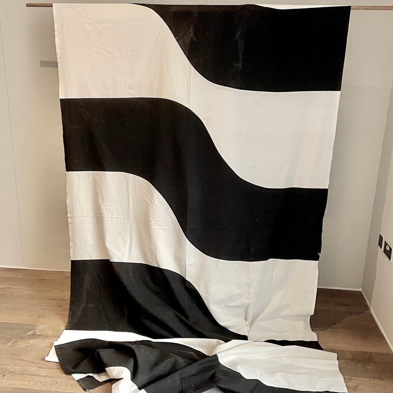 Quintessentially Bridget Riley, the 1960’s monochrome Black and White fabric captures the sense of movement using only deceptively very simple geometric forms.