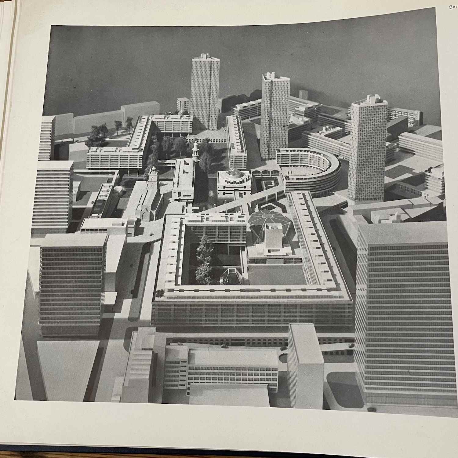 Between 1955 and 1959 Chamberlin, Powell & Bon submitted three reports on the Barbican redevelopment to the Court of Common Council. In 1959, their third report was approved with a one-vote majority, and in 1960 they were appointed as architects. Over the next 22 years,until Queen Elizabeth II officially opened the building in 1982, both the brief and the architects’ design response to it were in a constant state of flux.