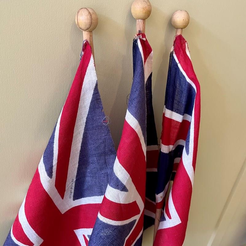 The flags are marked 'British Made’, with each flag pinned to the original stick.