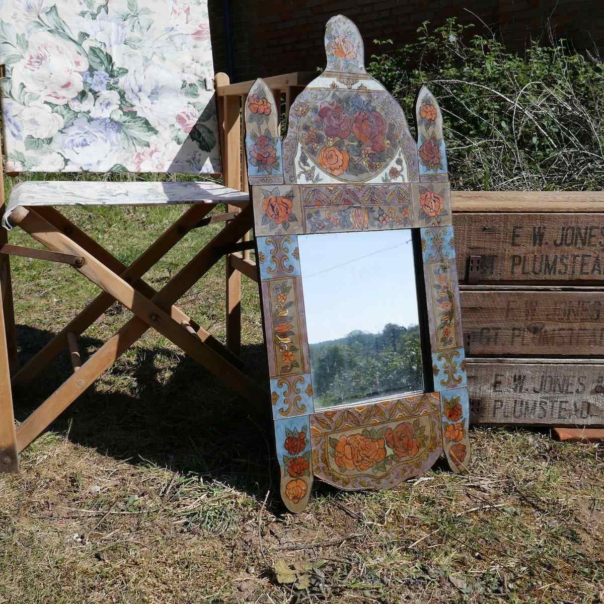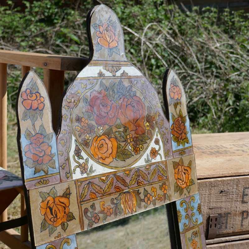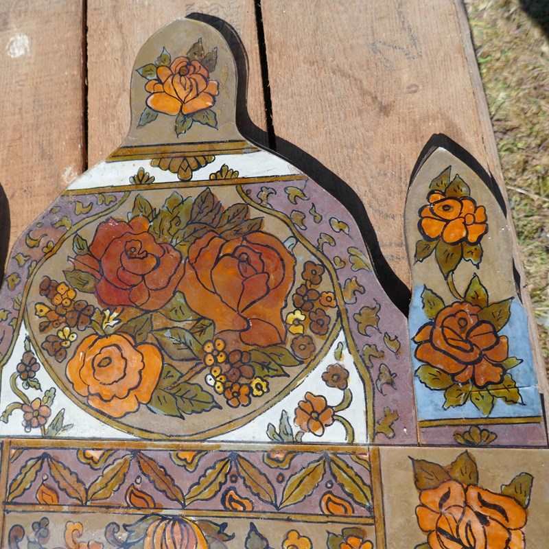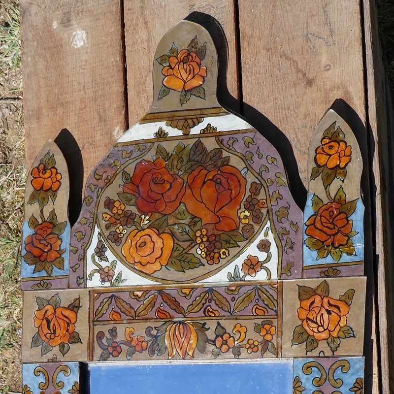Naive construction and decorated with roses painted on glass. The rose is a significant flower across the Arab world.