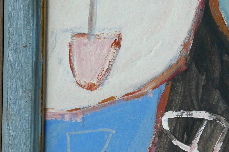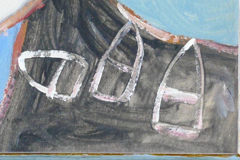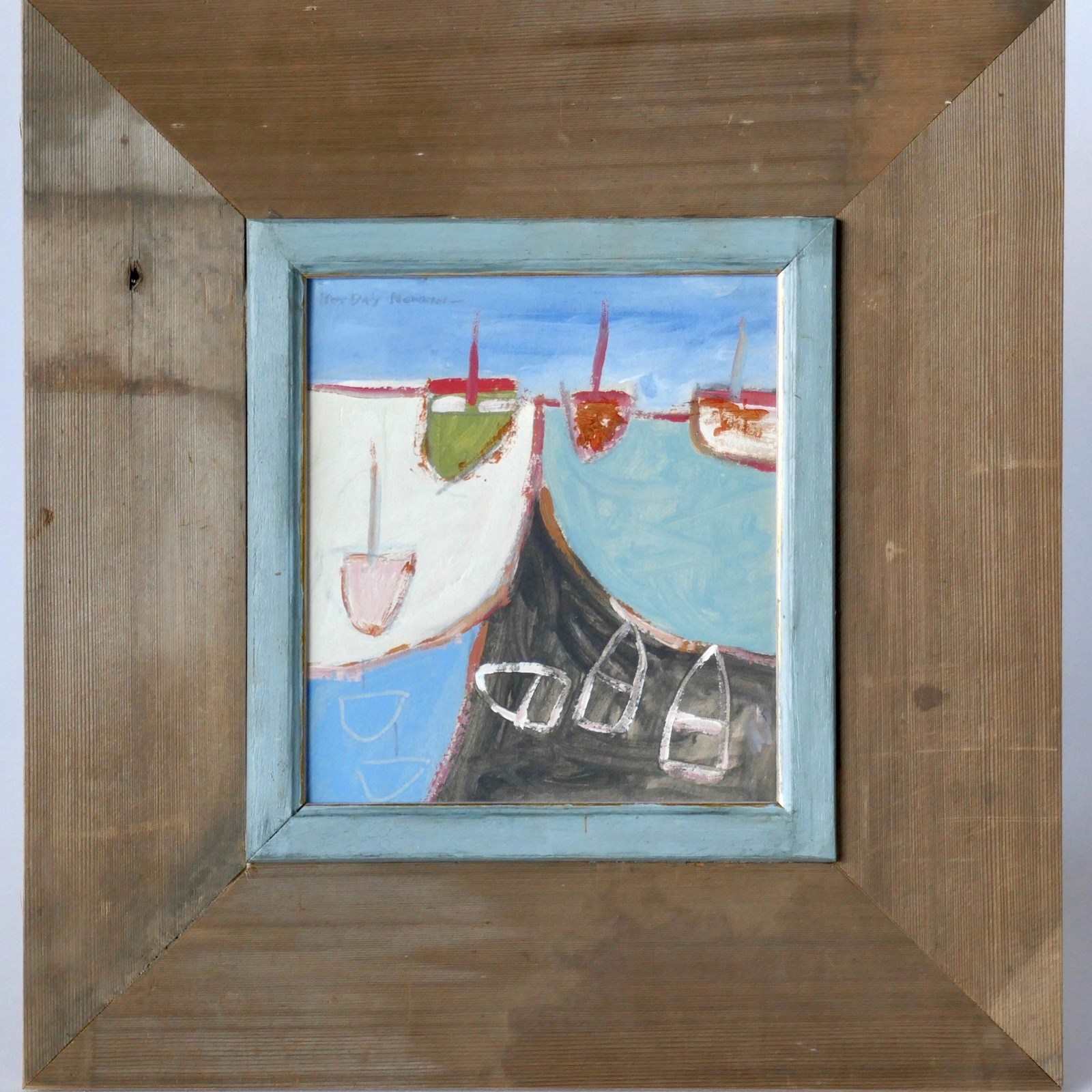 A fabulously evocative painting in the Newlyn School open air style. The painting has been framed to capture the spirit of "repair for another day's use" with junk shop finds and salvaged cedar rescued from an old boat shed.