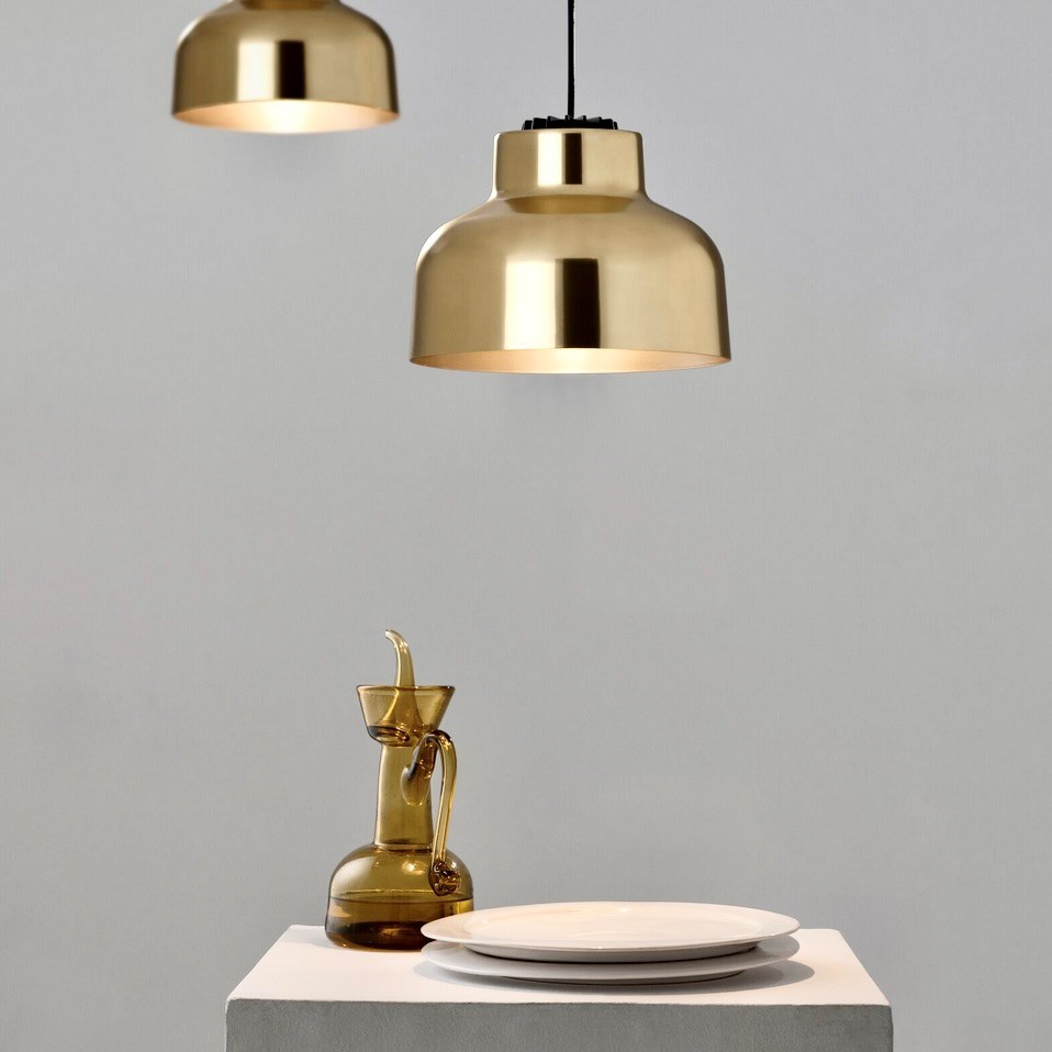 Set of 8 Polished Brass M64 dimmable Pendant Lights