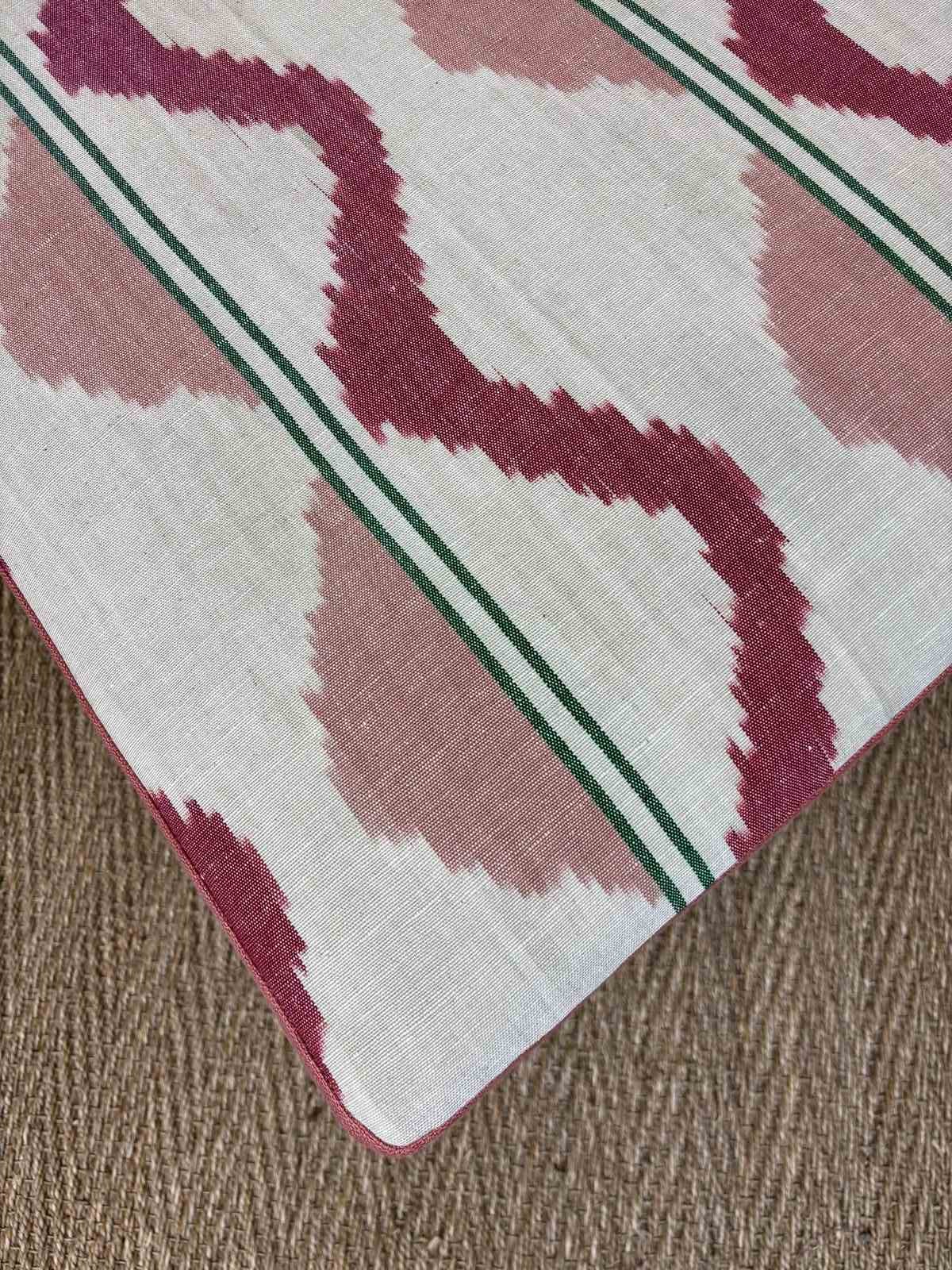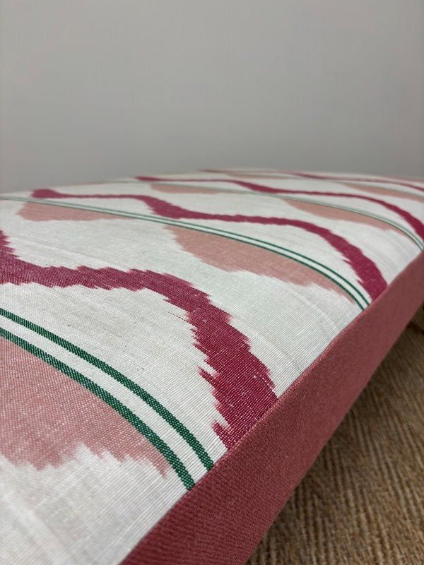 Upholstered in IKat Wave Cherry by White Pomegranate Textiles a beautiful linen/cotton mix.