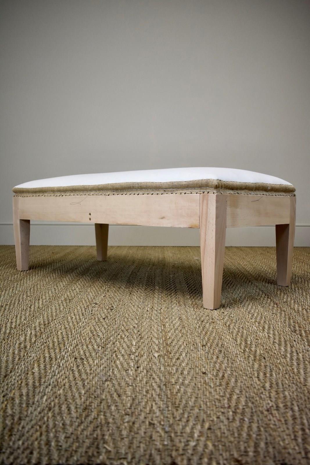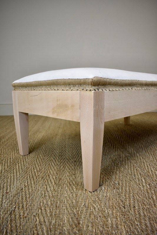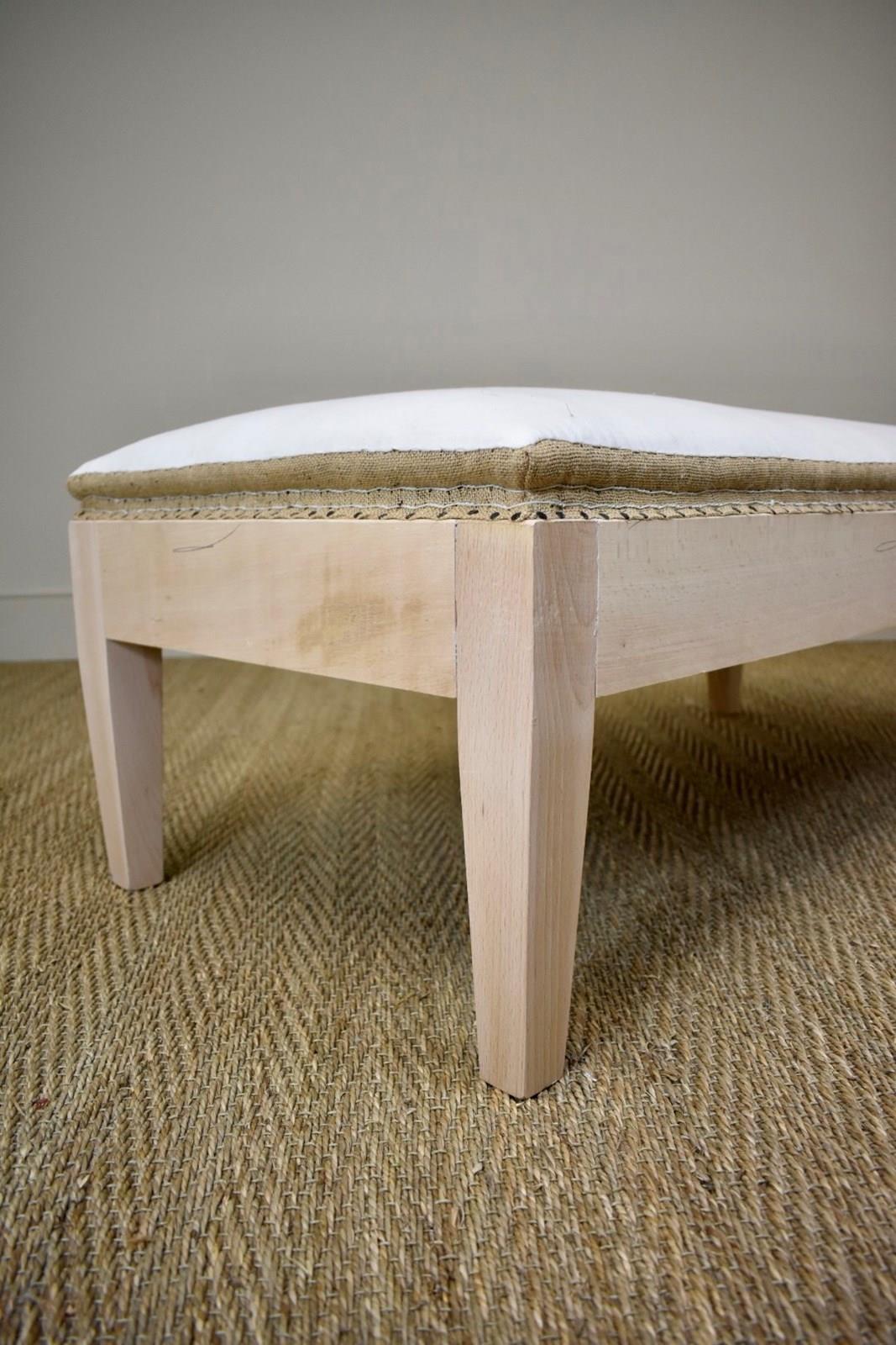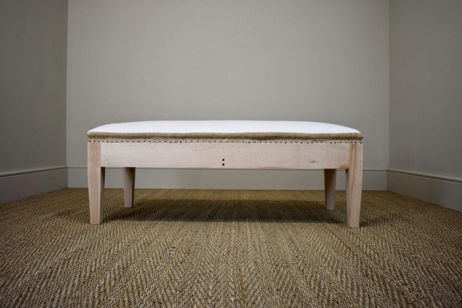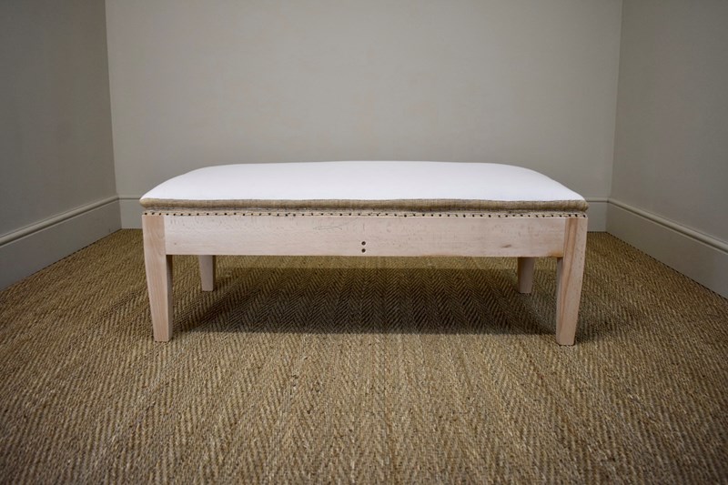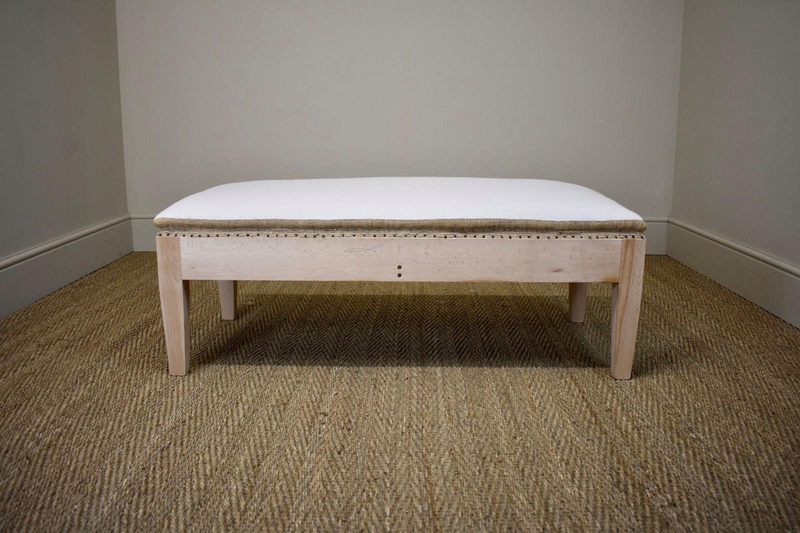 A solid beech frame with tapered leg, traditionally upholstered with a stitch and stuffed rolled edge. Finished in new calico. Looks great as is, with legs and frame stained to chosen colour. Alternatively it can also be upholstered in your chosen top cover, in the style of either our St Columb or St Eval footstool model. Choice of castors available.