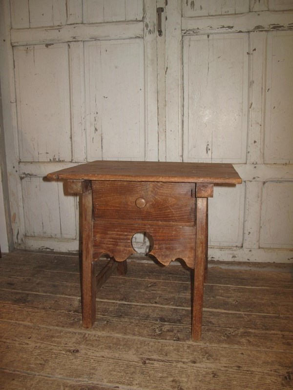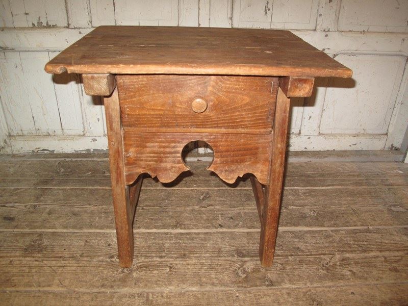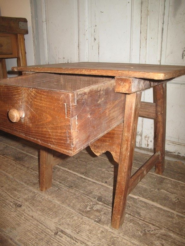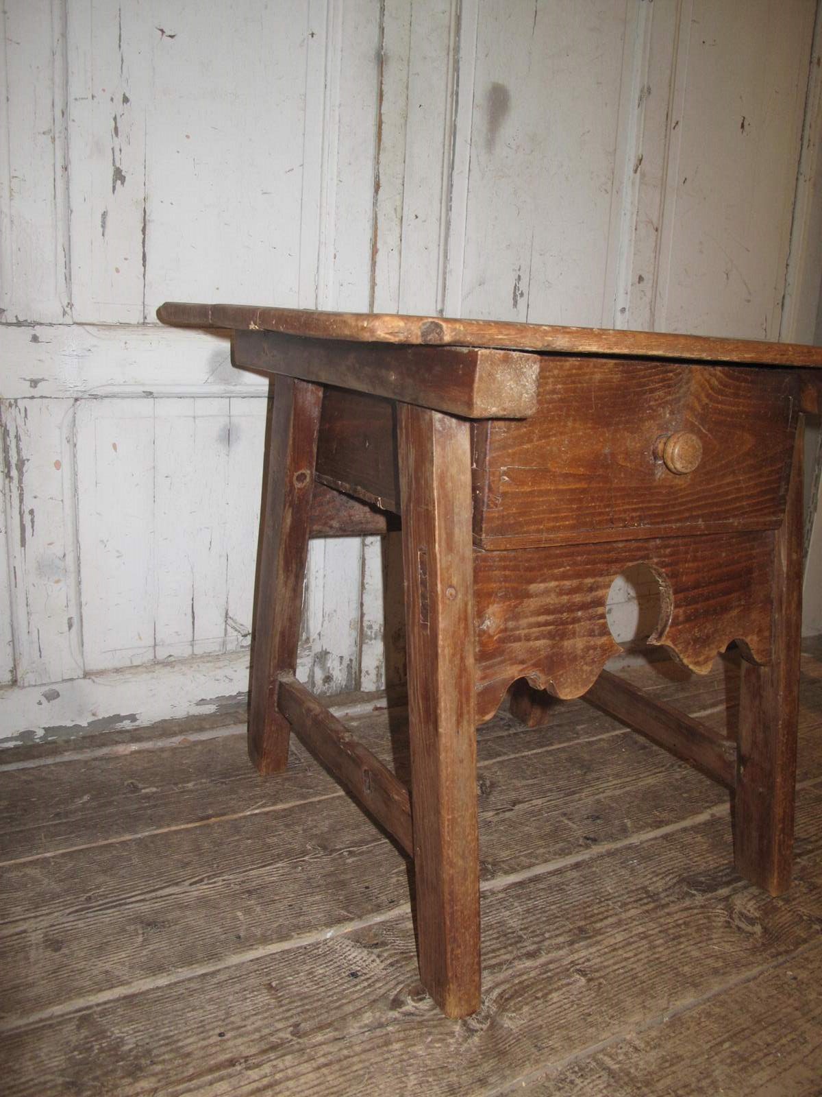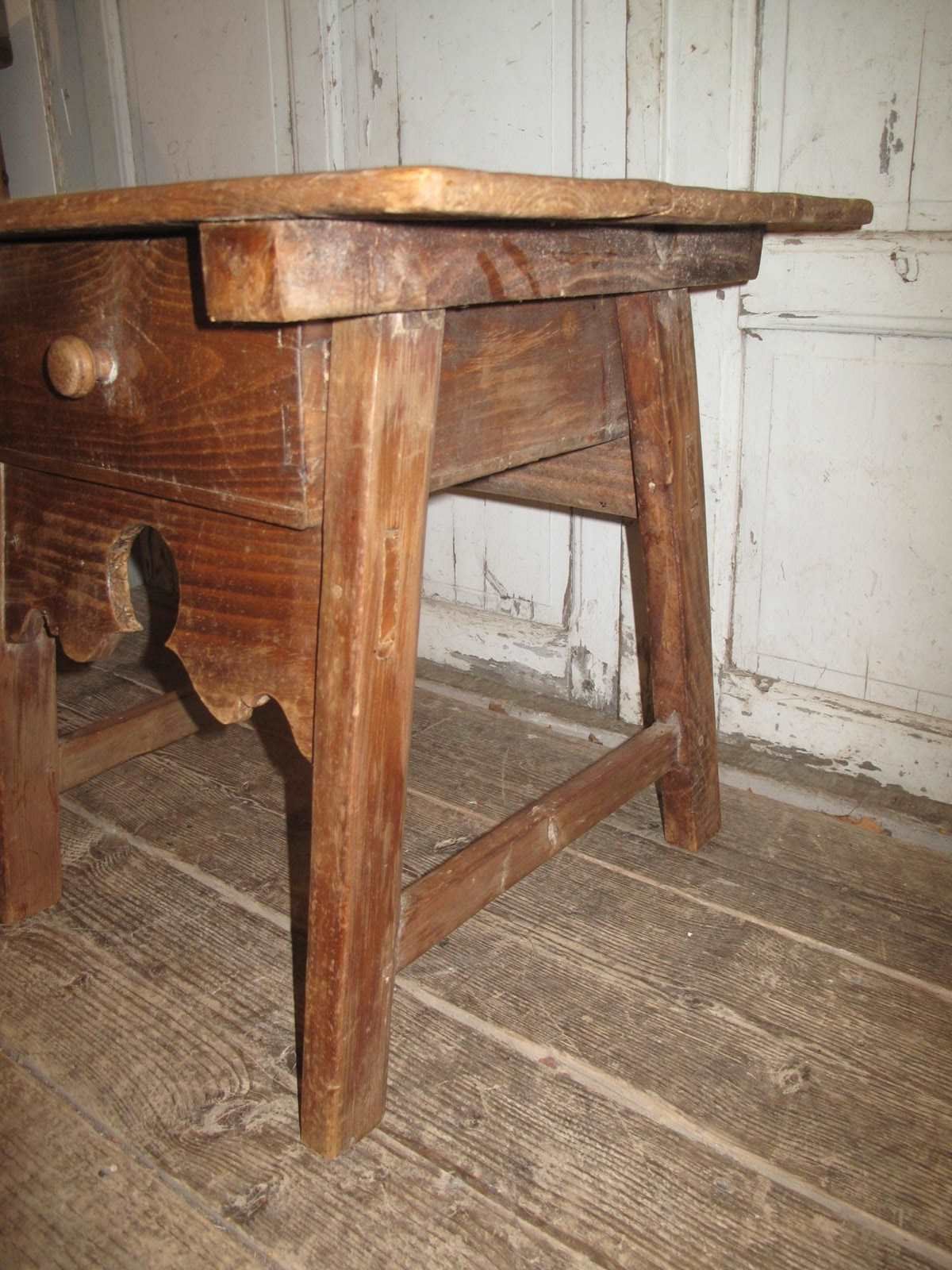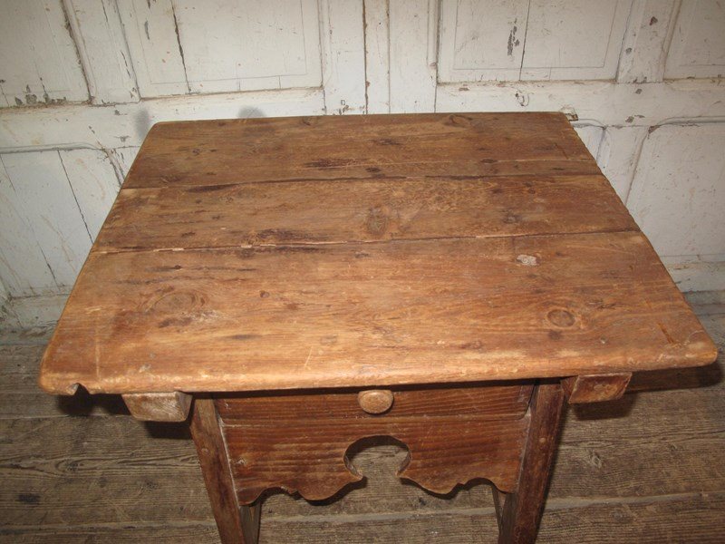 18th century fruitwood cobblers table with a single sliding drawer. The table has oak pegged joints and is in good condition and is very sturdy. Late 18th century.