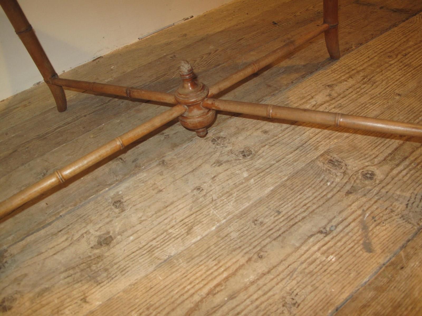 Faux bamboo table with pine top. Nice size table that would fit in anywhere in the hard to find faux bamboo. c.1900.