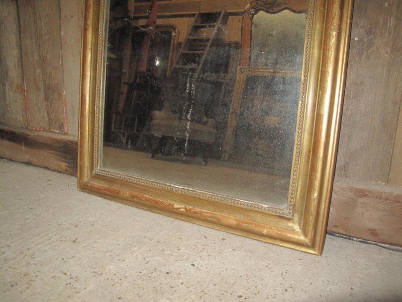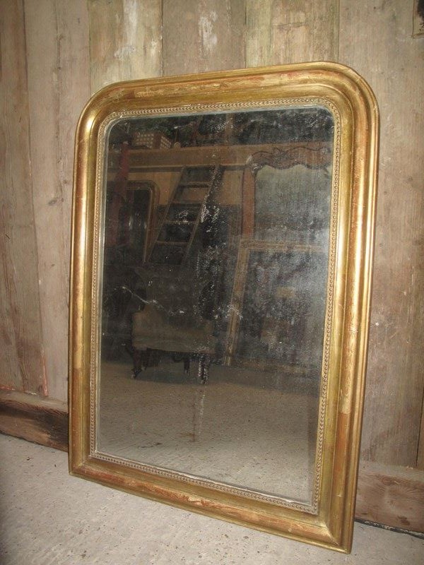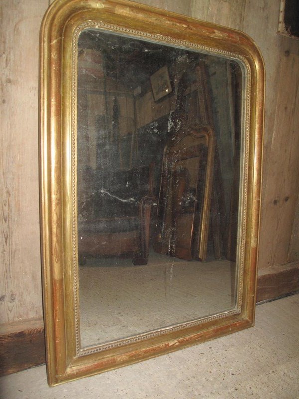 Large antique Louis Philippe mirror with its original faded gilt finish. The mirror also has its original glass and backboards.