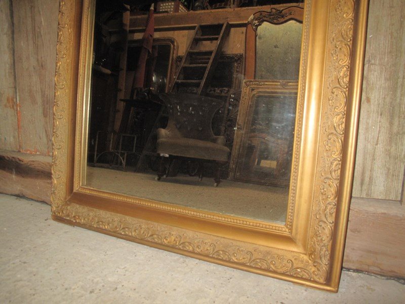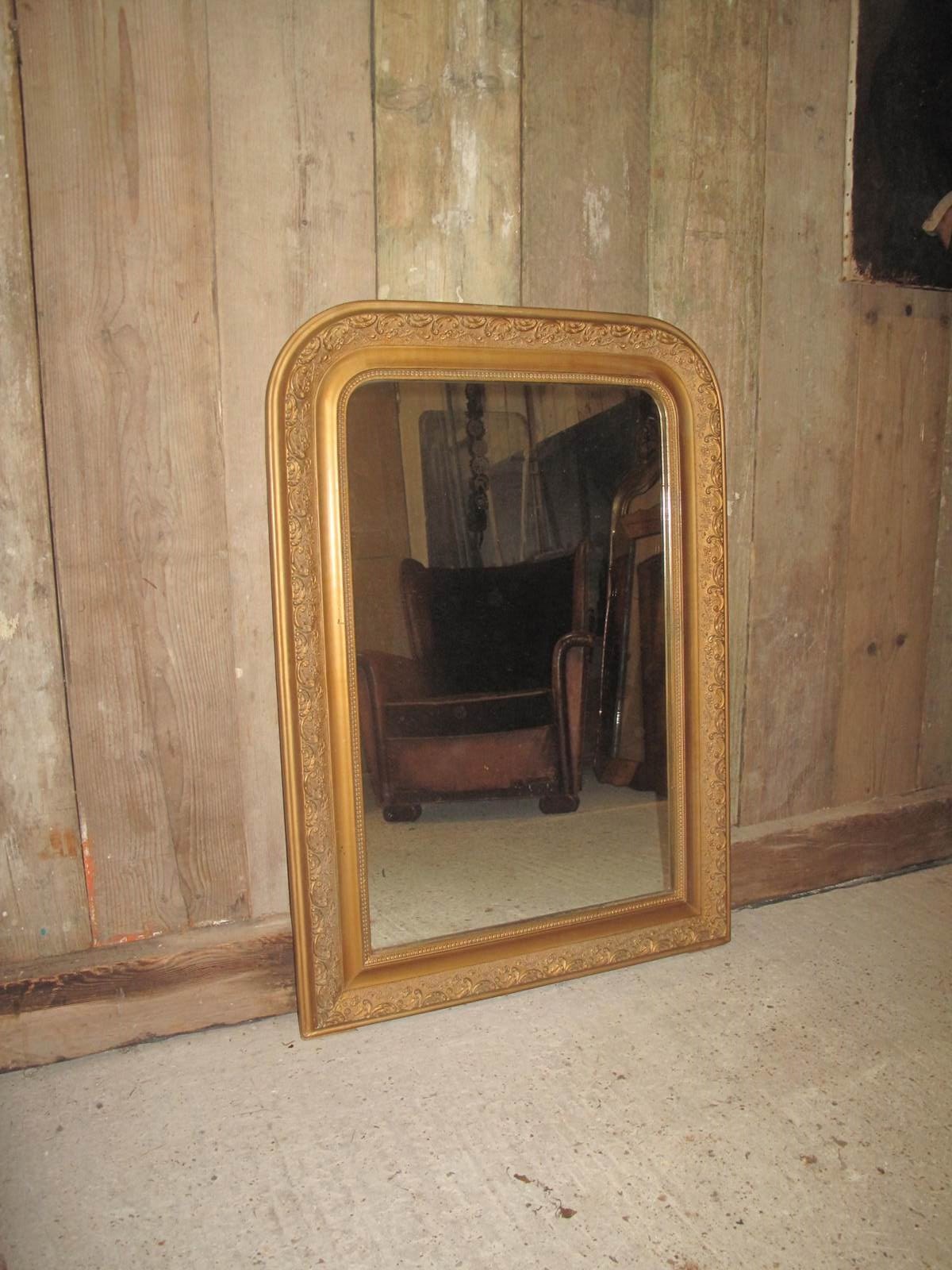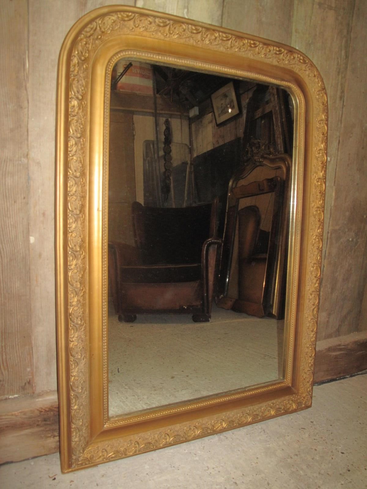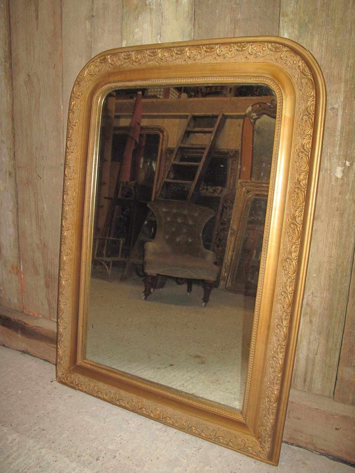 Antique mirror with its original glass, gilding, and backboards.
