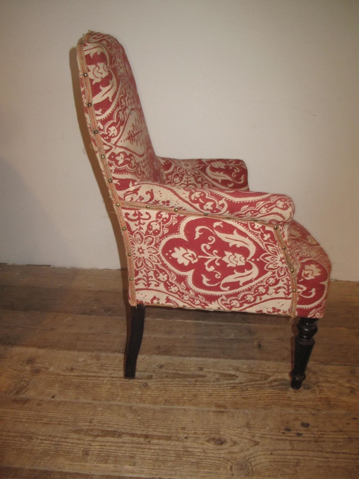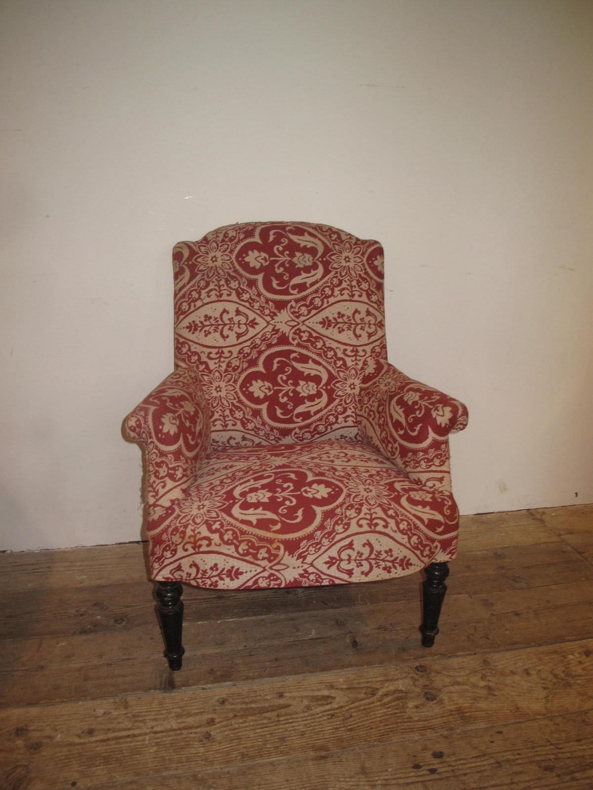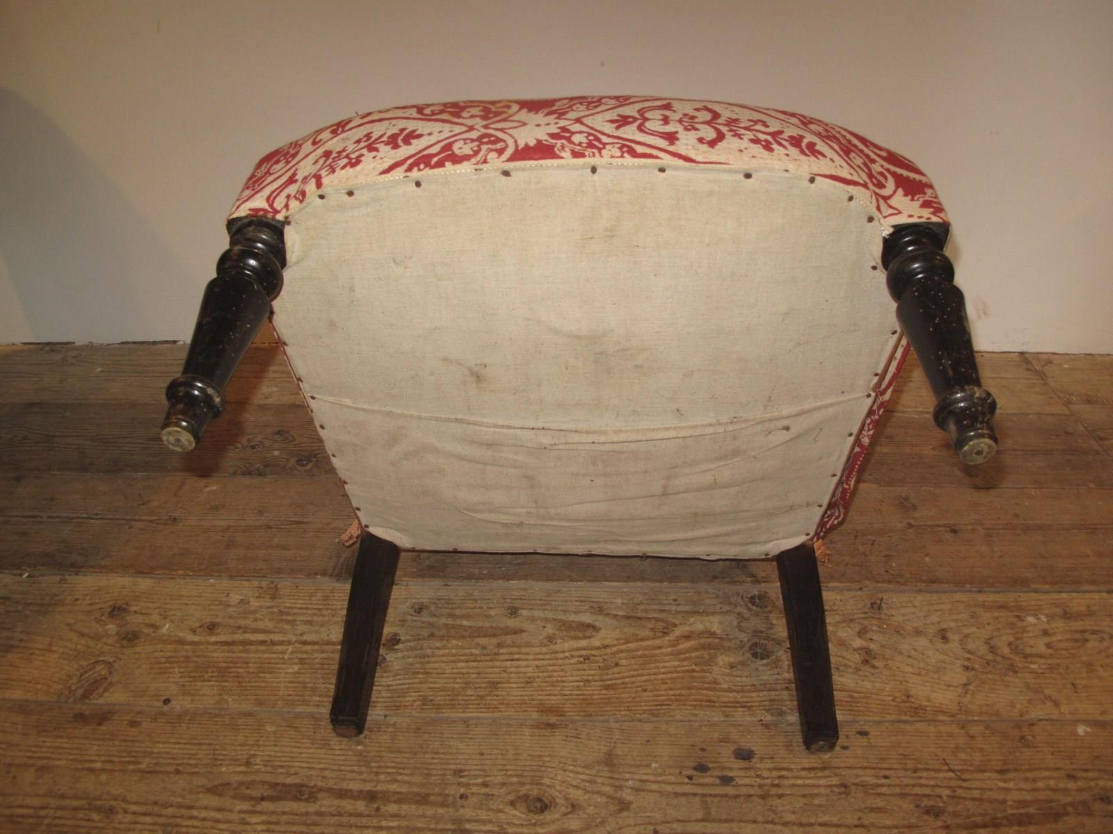 Napoleon III chair with ebonised legs. The chair has a good solid frame and is ready for recovering.c.1890.