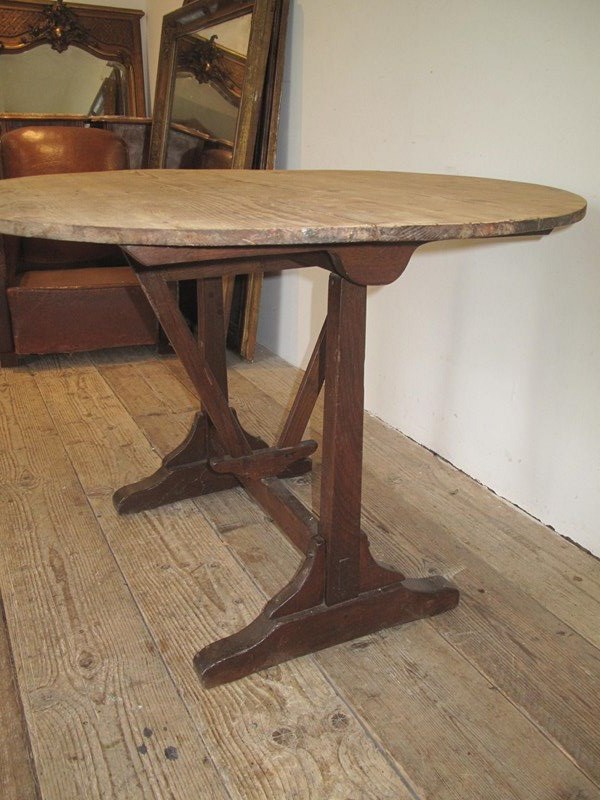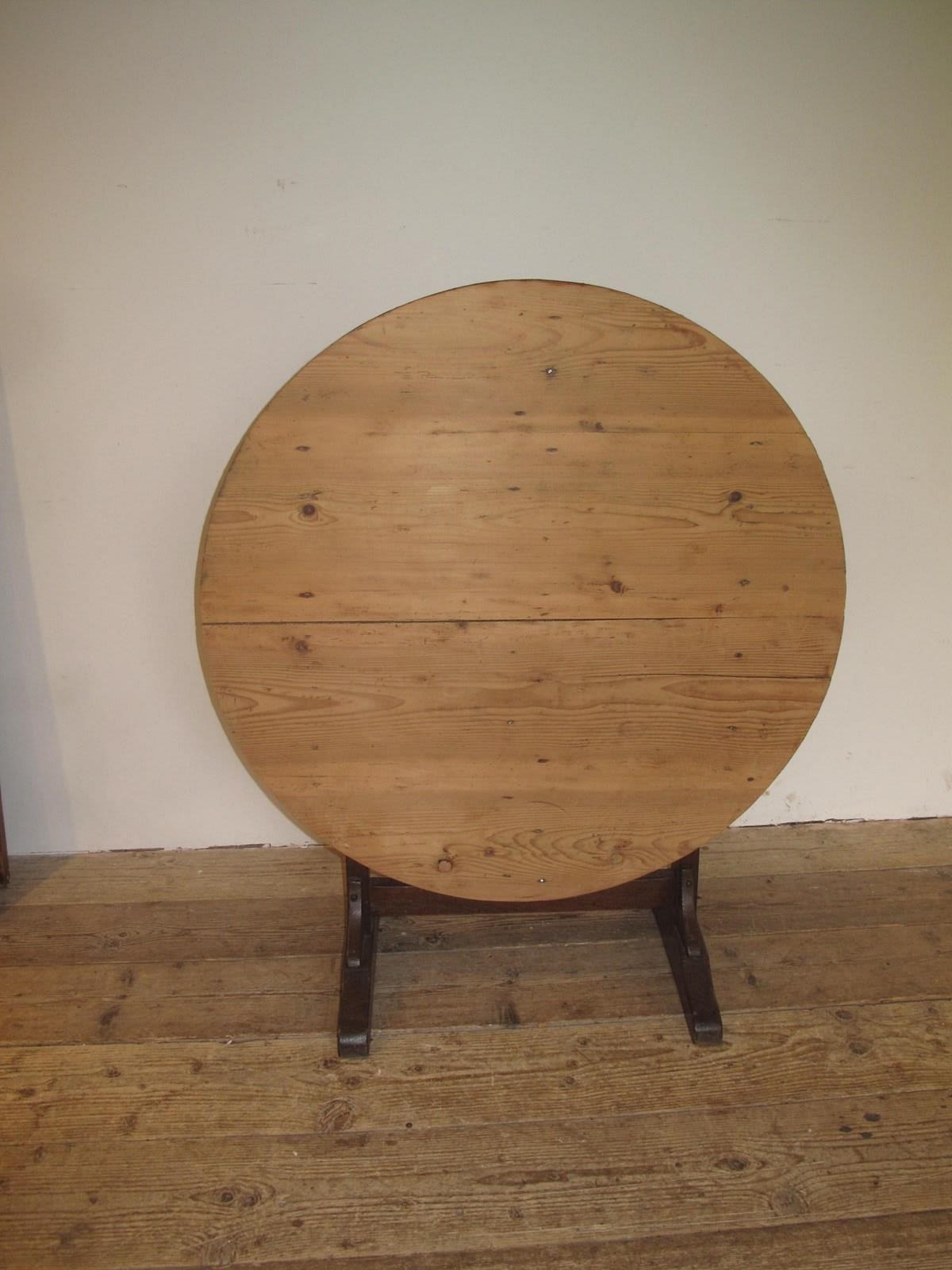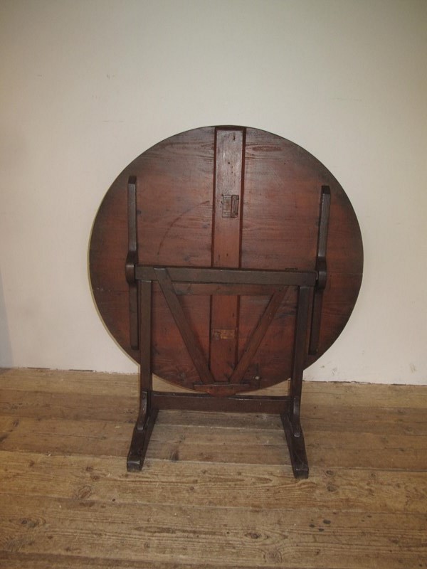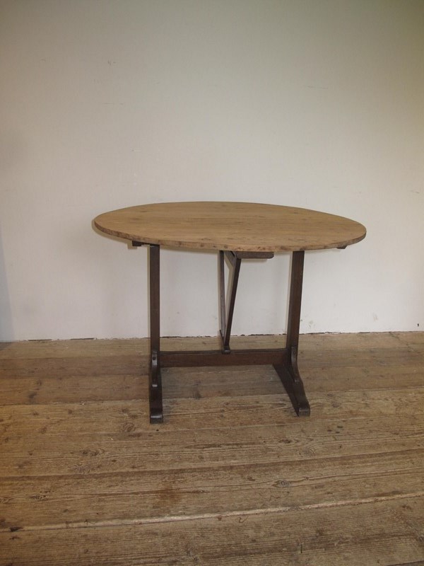 Antique vendage table in good condition straight from a vineyard in southern France. The table has a pine top and a sturdy oak base. The table folds easily and is in good condition. c.1890.