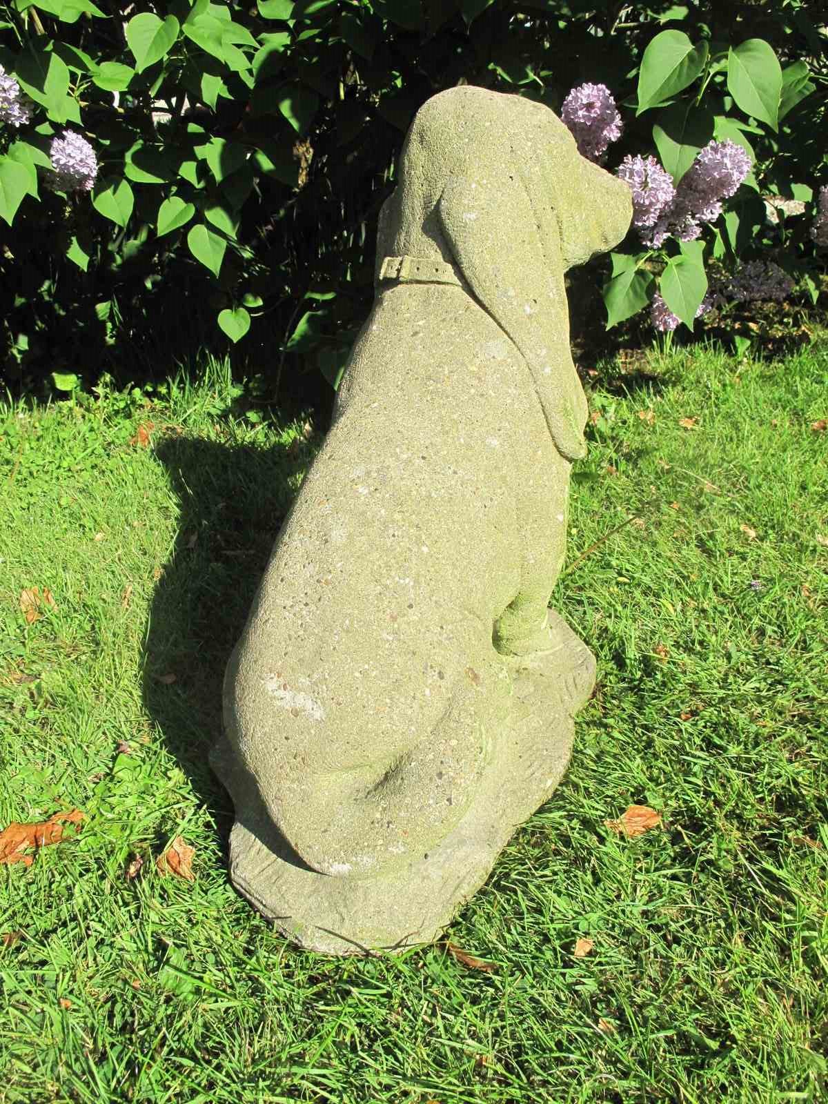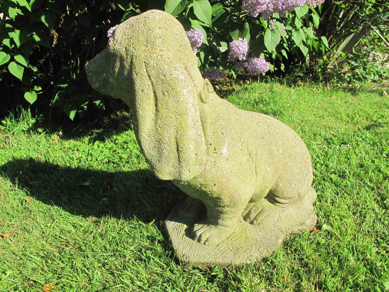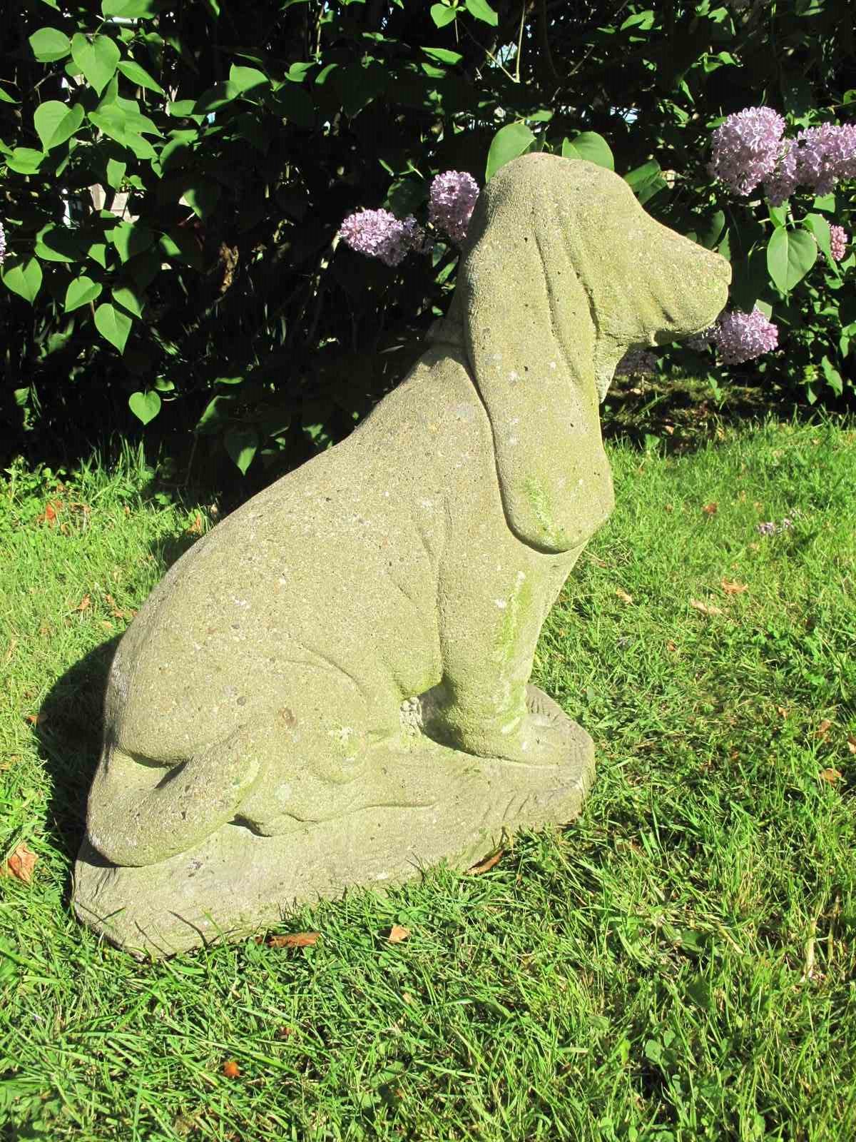 Composition Bassett hound in good condition with light mossing no cracks, chips, or repairs. Mid 20th century.