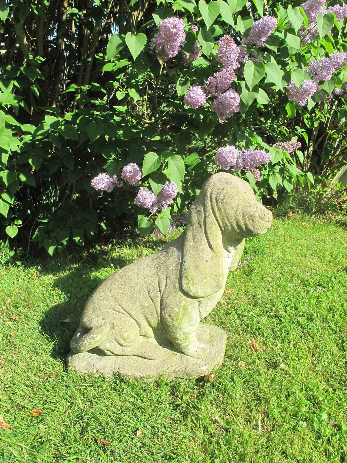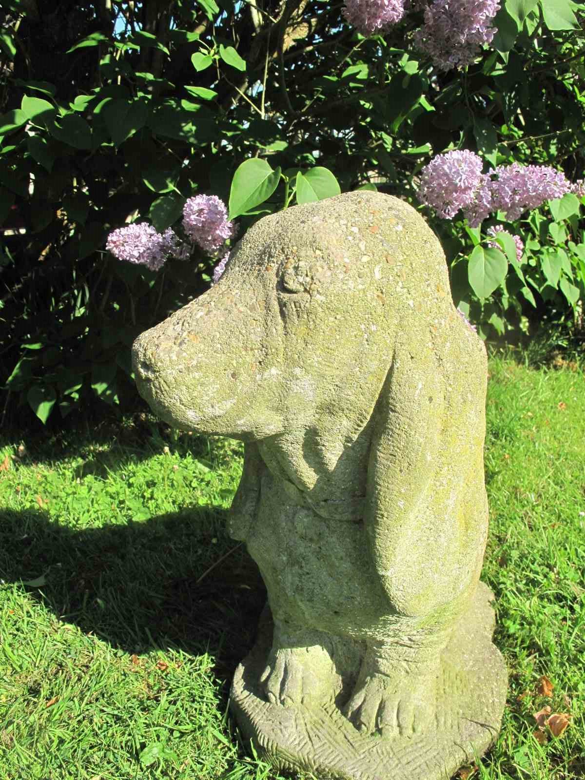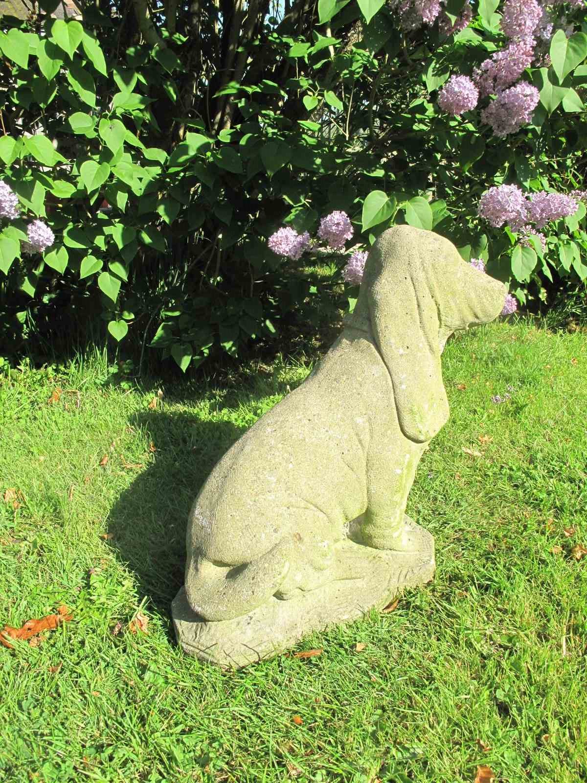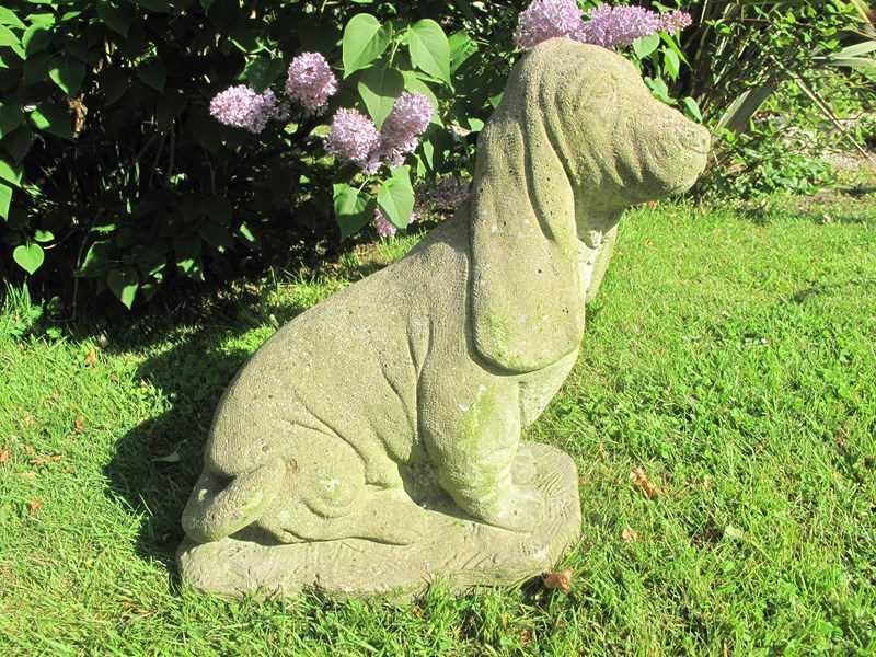 Composition Bassett hound in good condition with light mossing no cracks, chips, or repairs. Mid 20th century.
