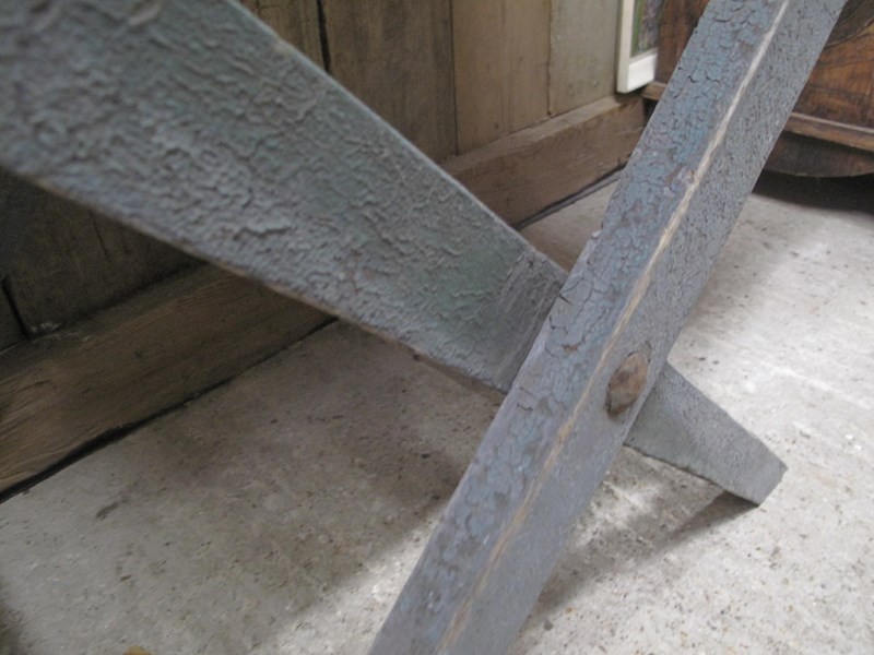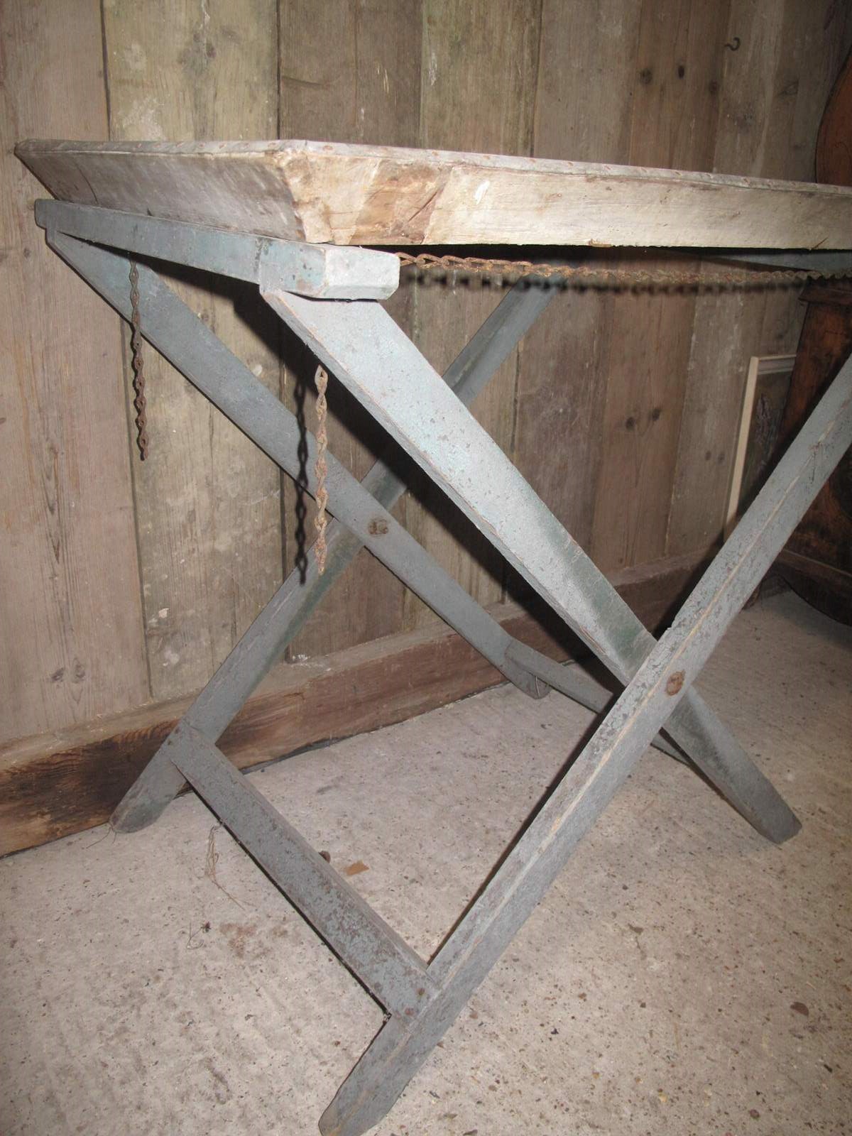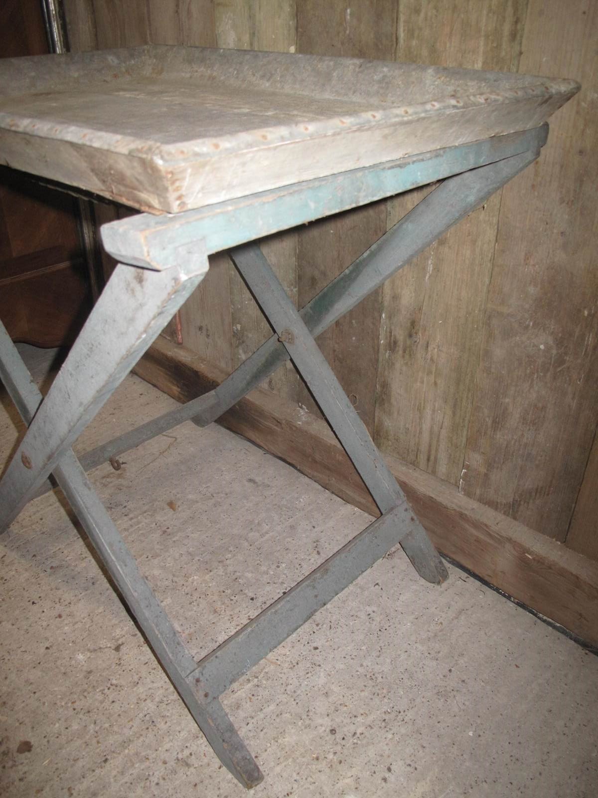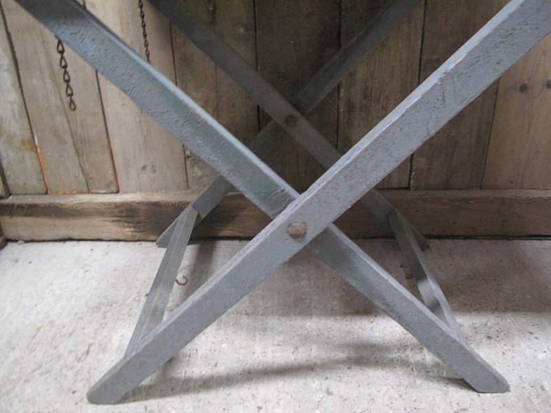 Unusual folding potting table in its original paint and its original zinc tray.