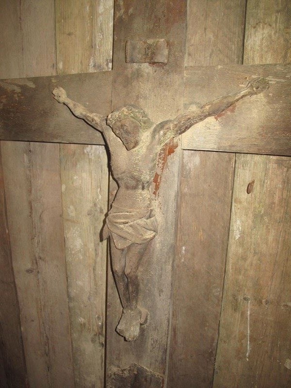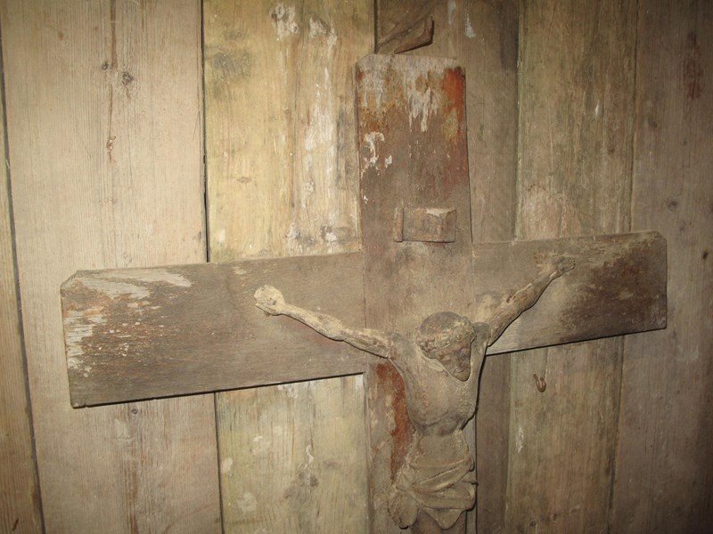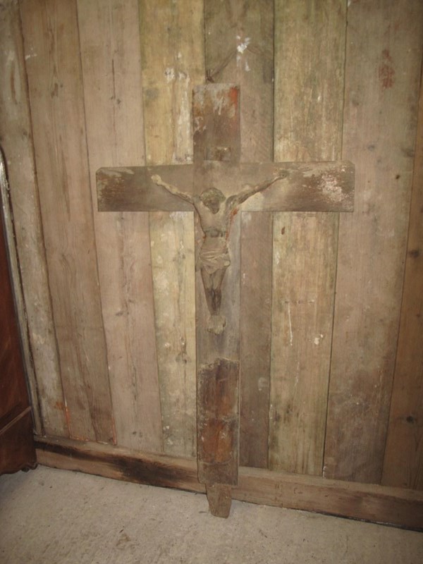 Large 18th century wooden cross from south east France. The cross was recovered from a farmhouse barn it was one of the items we recovered before the barn was demolished. Has laid in a barn for years so expect dust decay and some pigeon droppings.