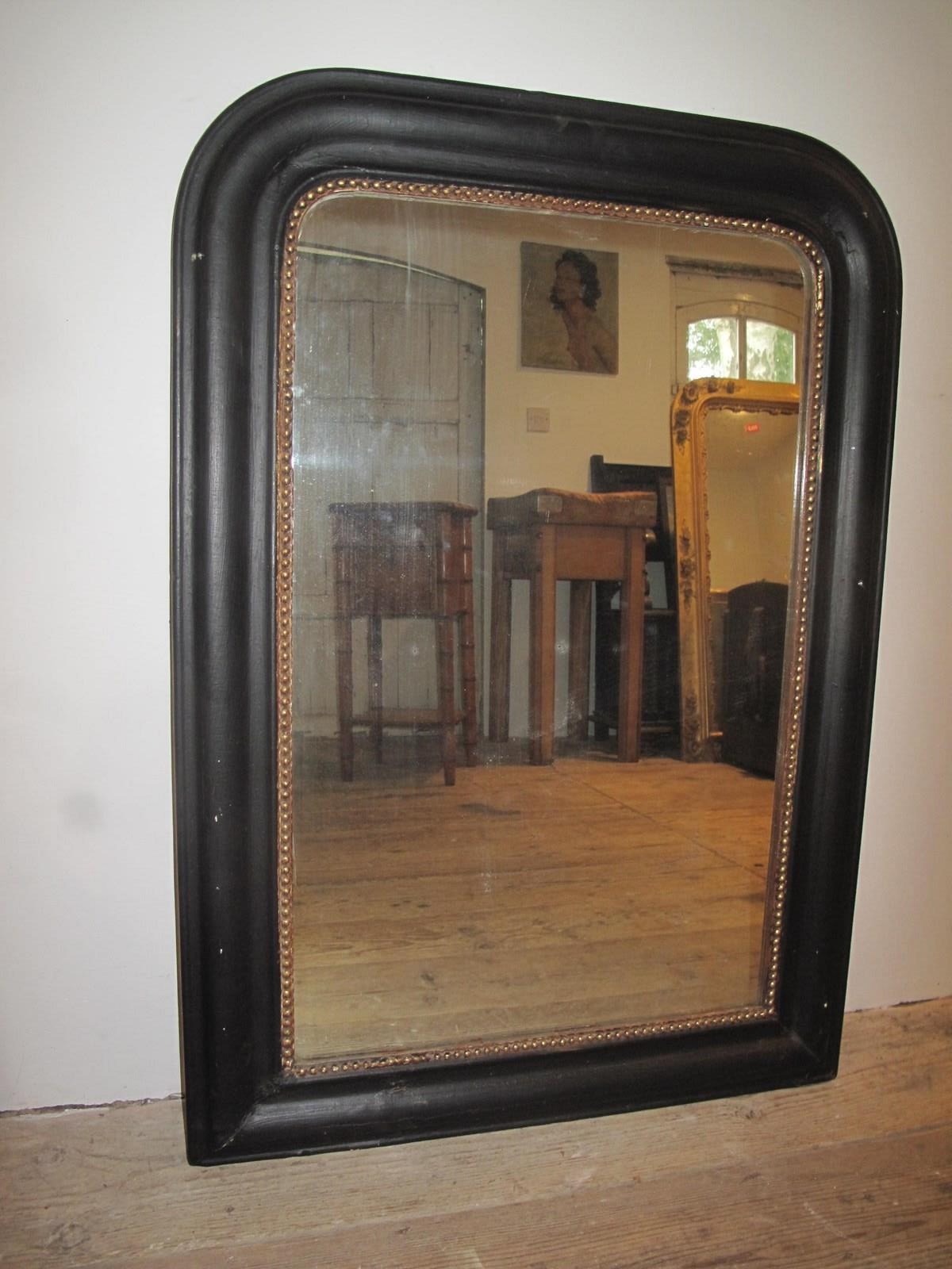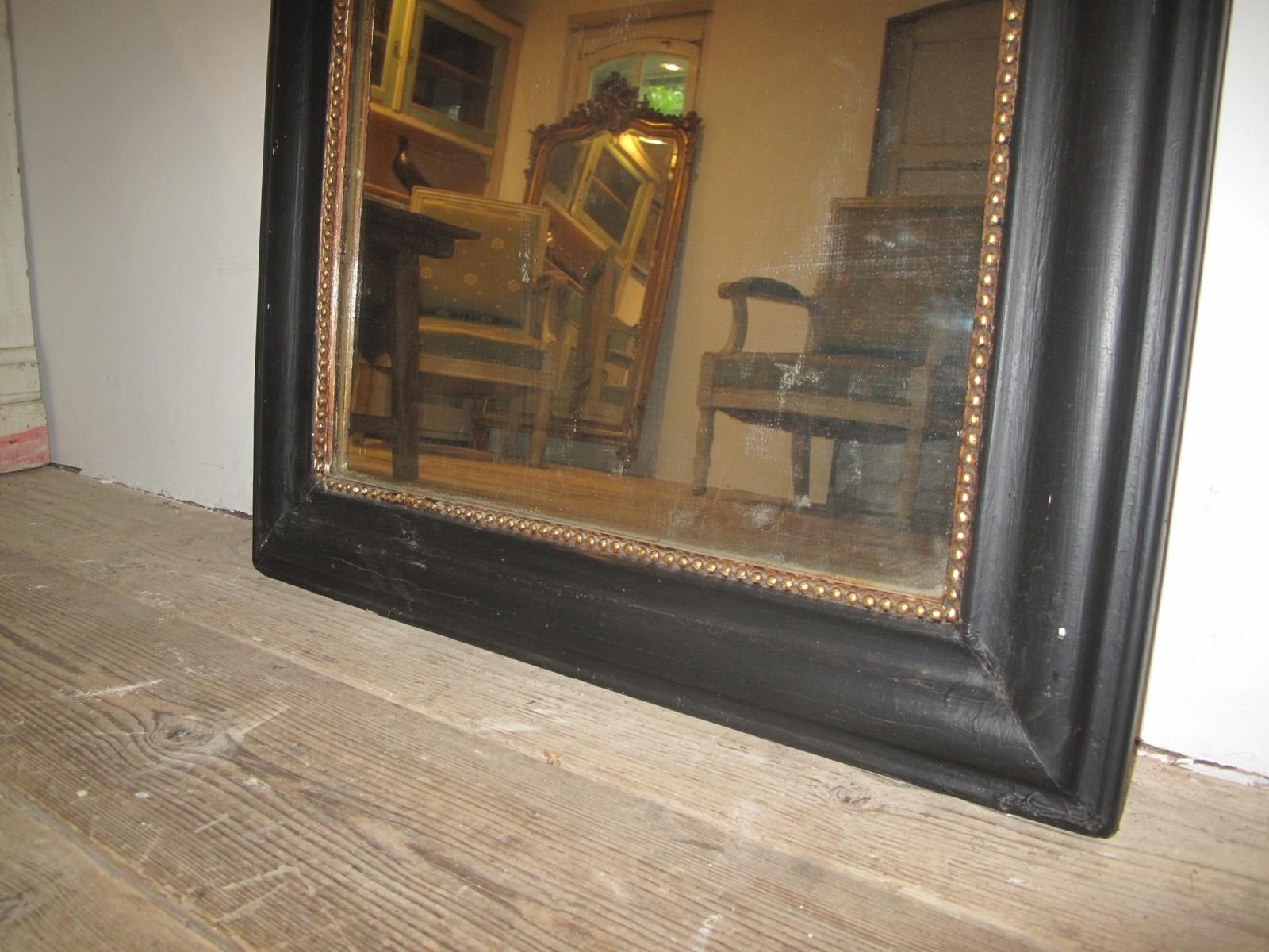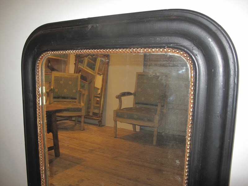 Large ebonised mirror with its original glass and backboards. c.1890.