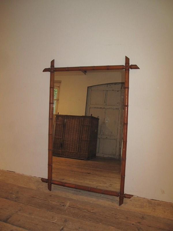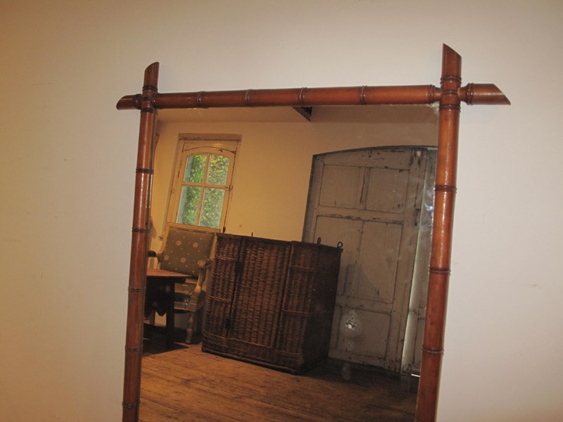 Large antique faux bamboo mirror in good condition . The mirror can be used landscape or portrait and has its original glass and backboards c.1900.