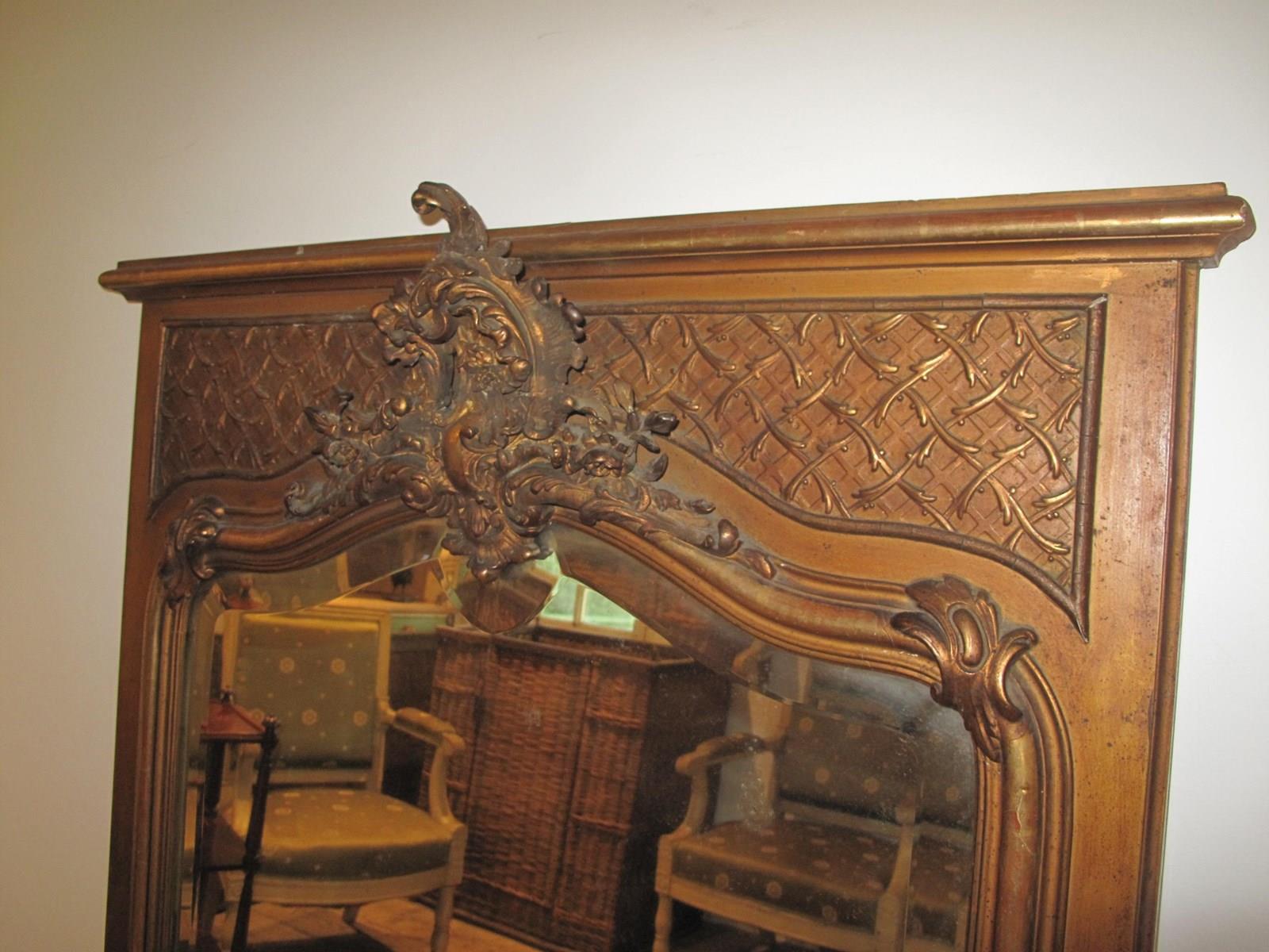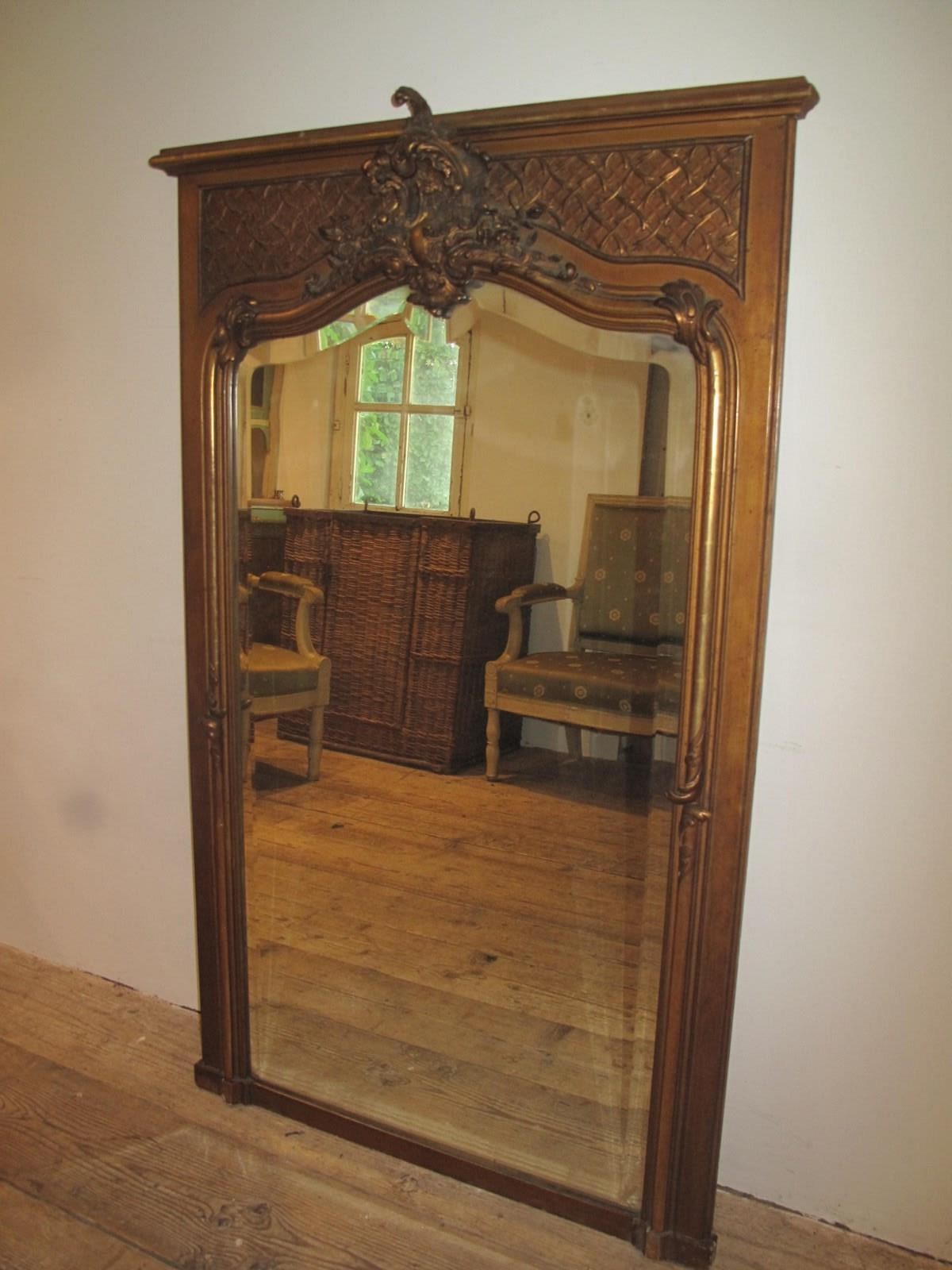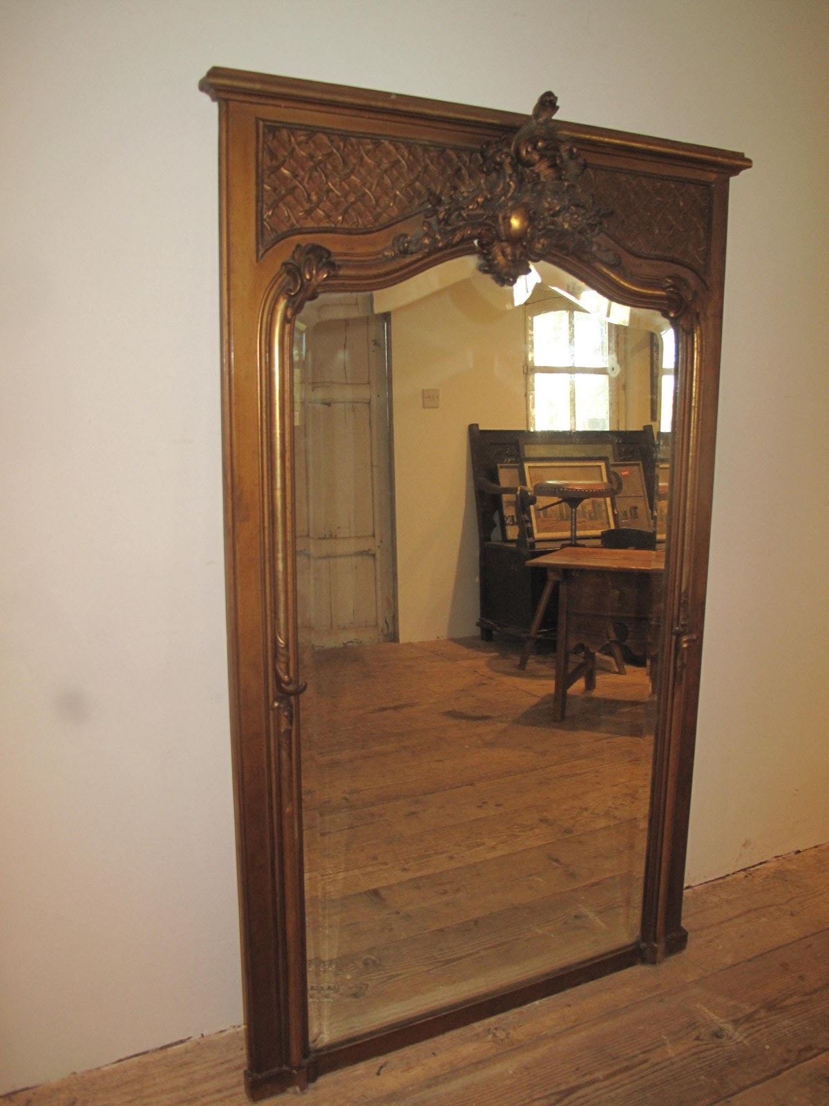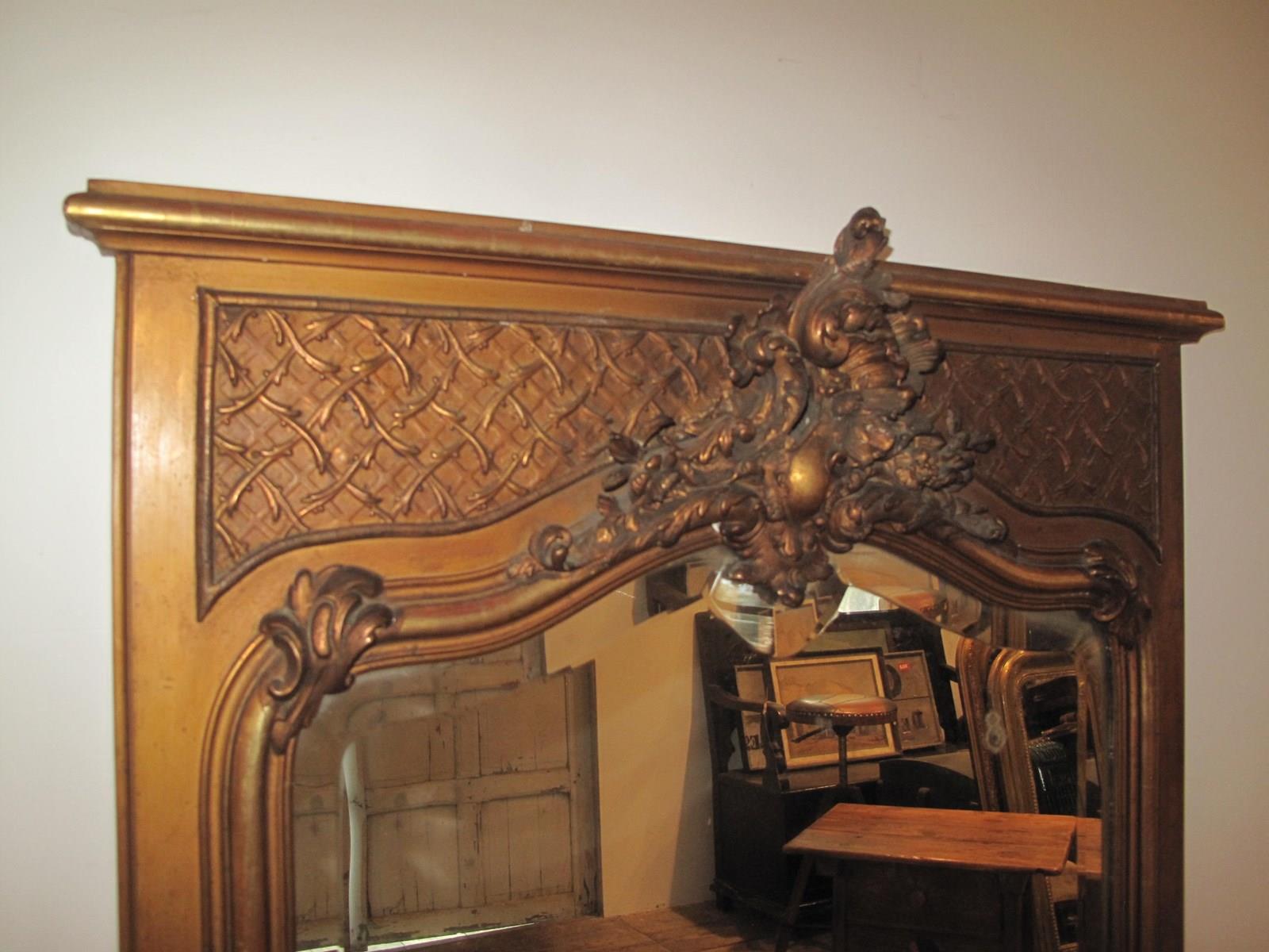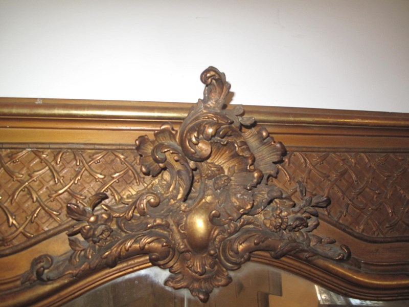 Large antique gilded mirror just in from a Paris apartment. The mirror is in good condition and has its original bevelled glass gilding and back boards, c.1890.