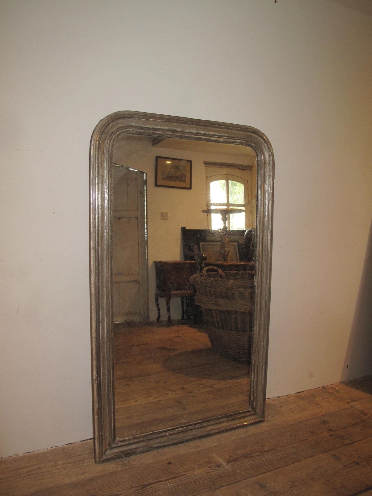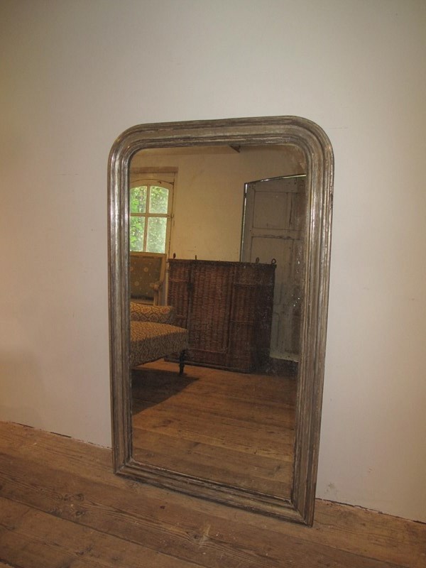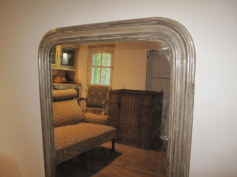 Large antique silver gilt Louis Philippe mirror with its original faded gilt finish. The mirror dates to the late 19th century.