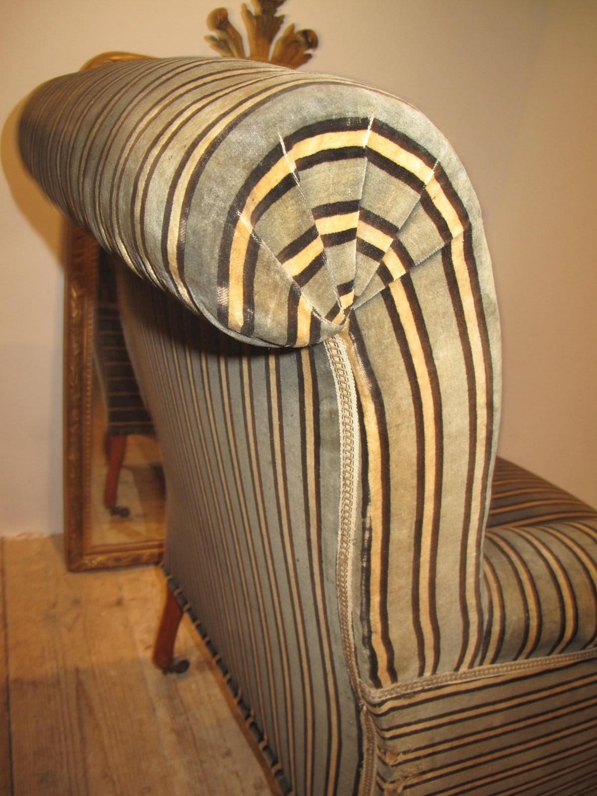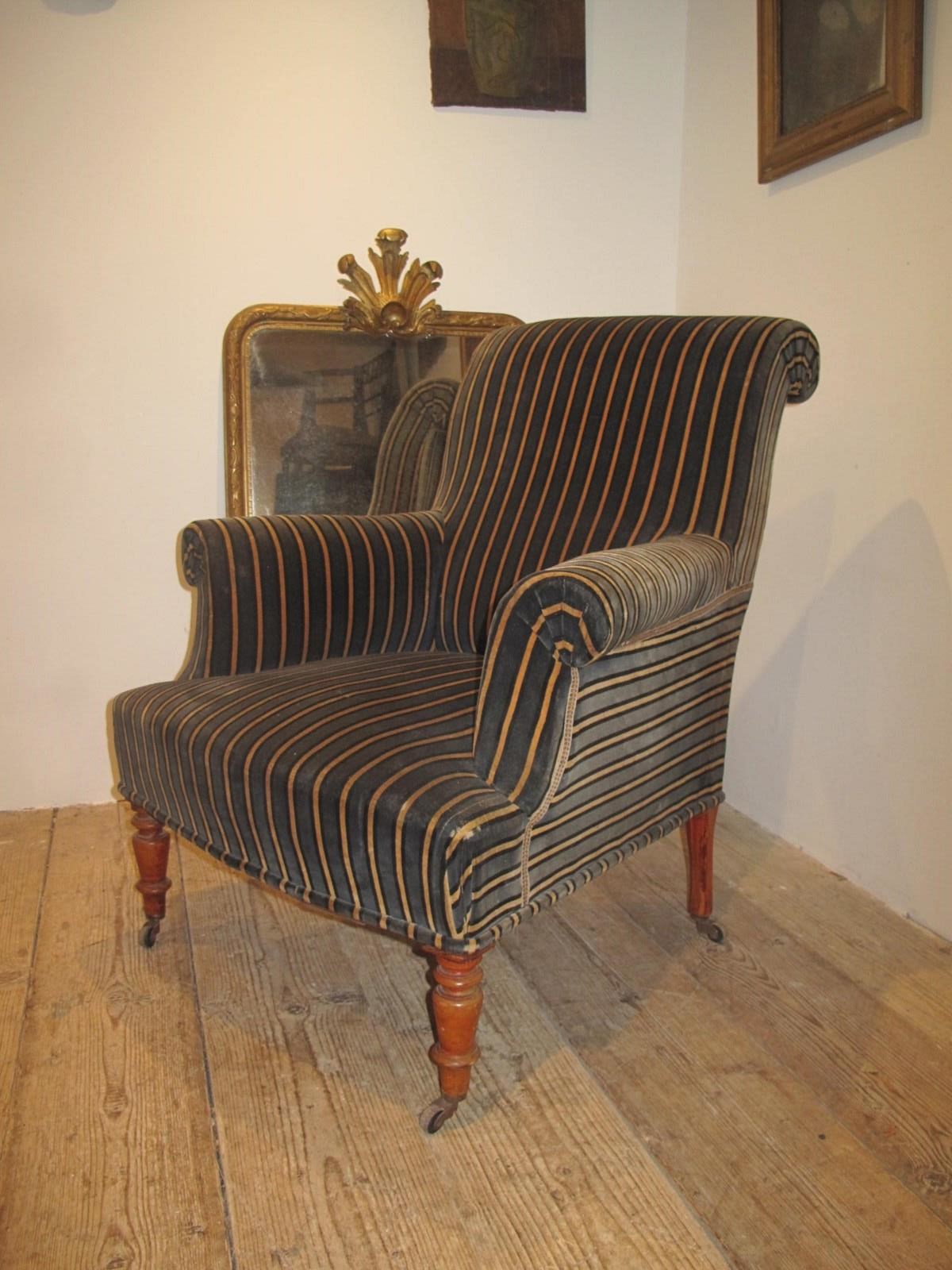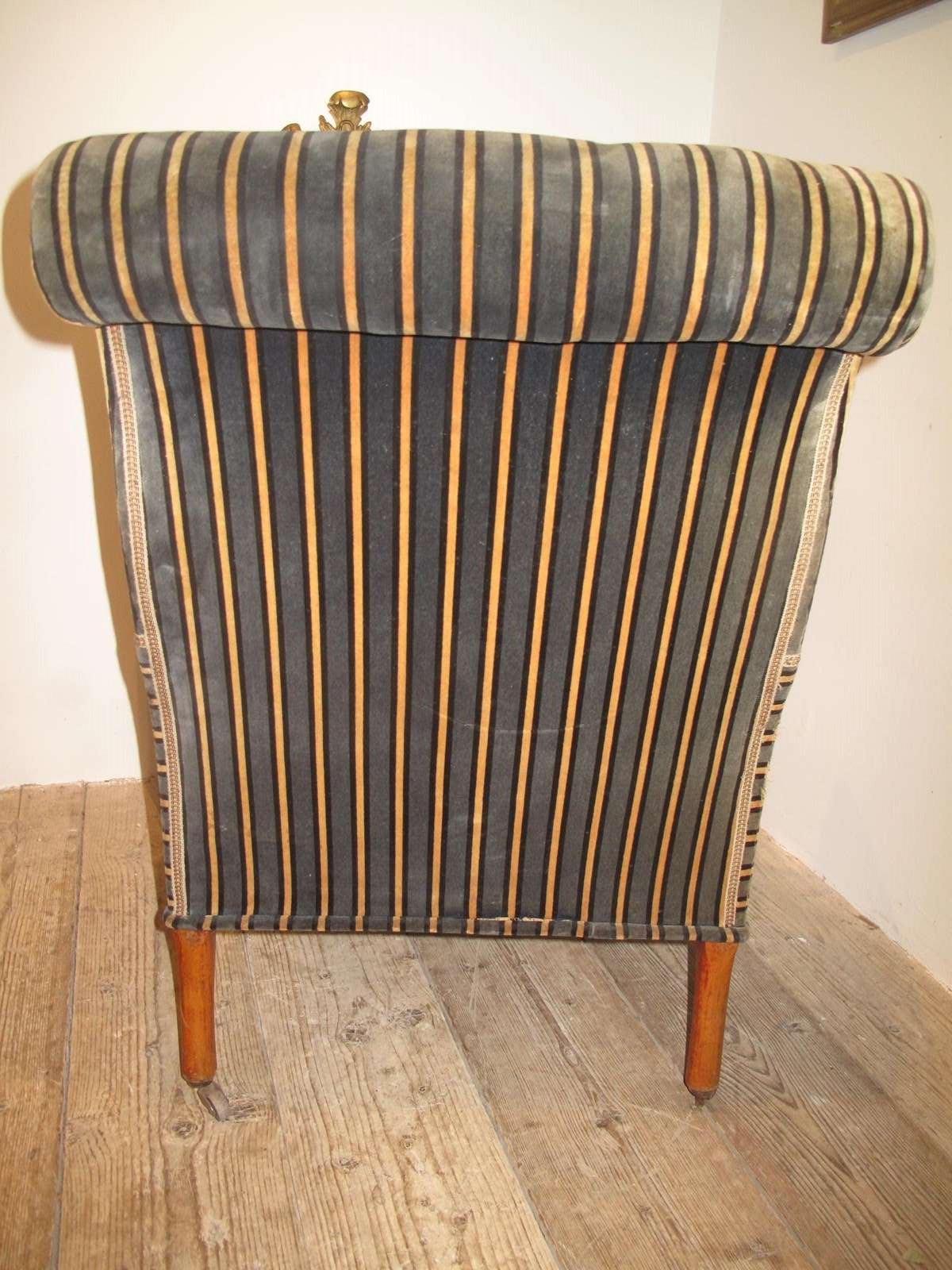 Large comfy Napoleon III chair in its original fabric. The chair is on its original free wheeling castors and has good springs and upholstery. c.1890.