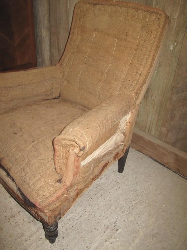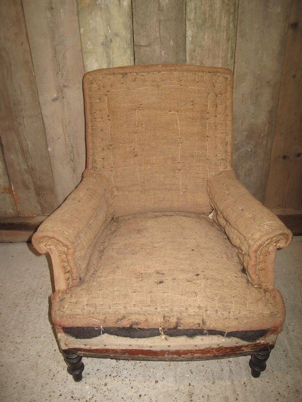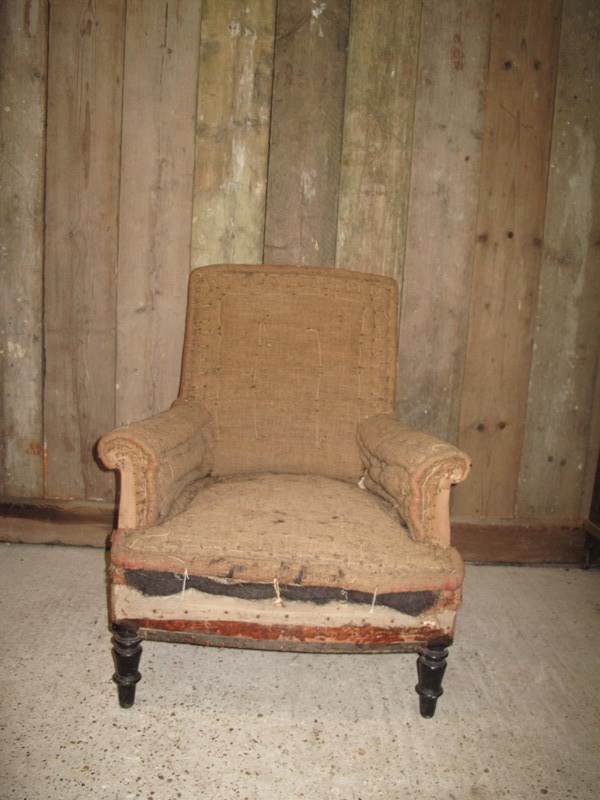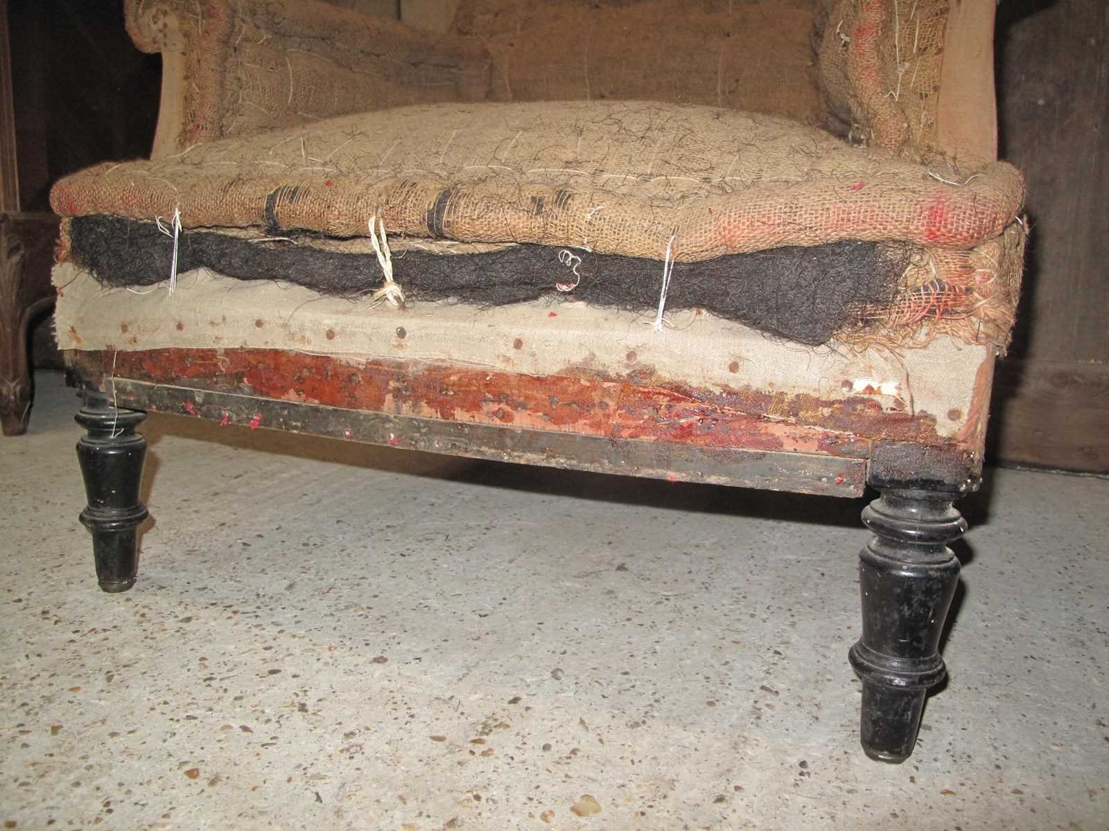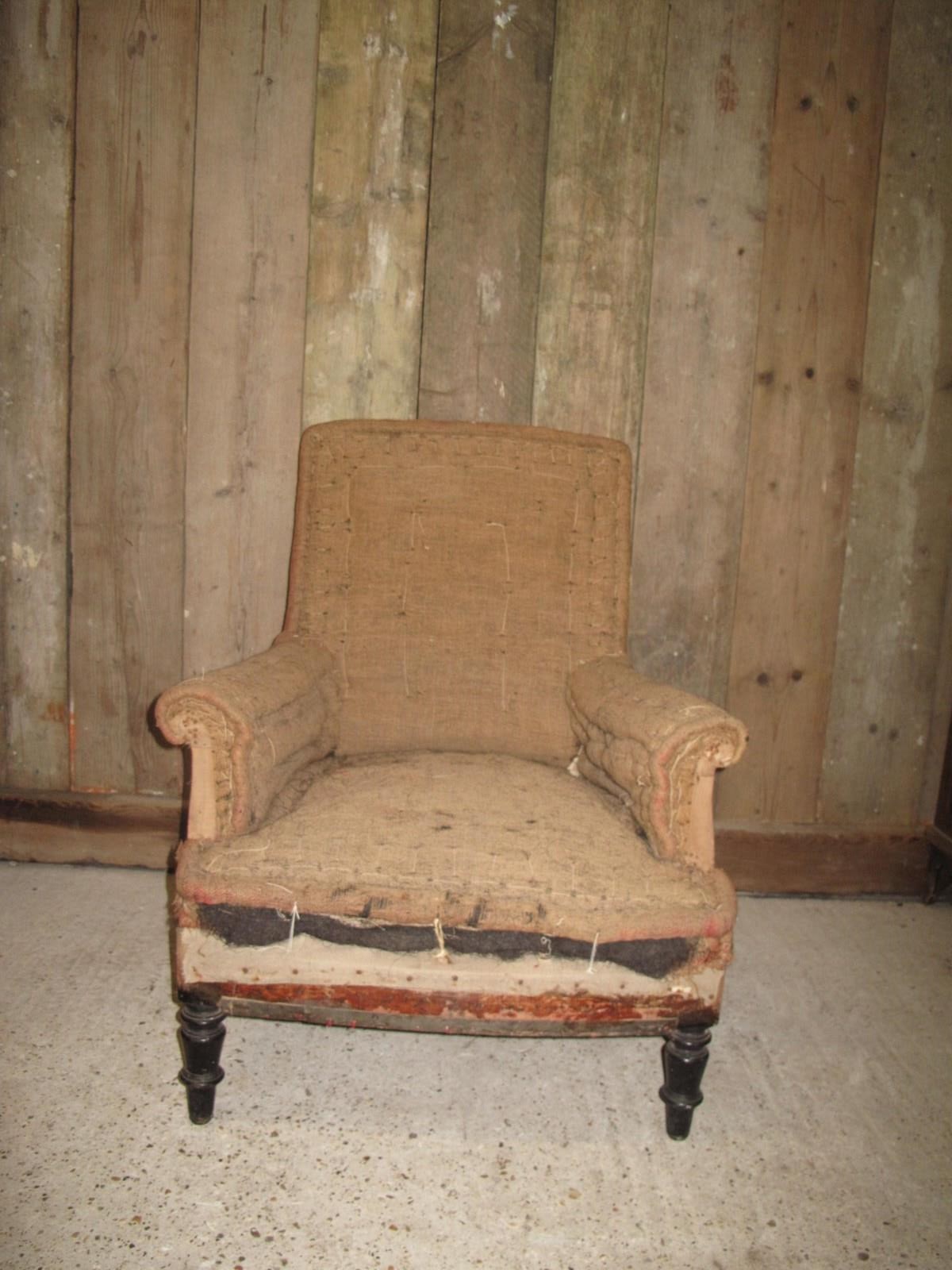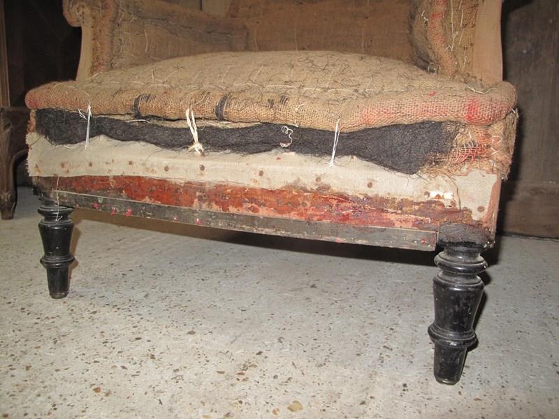 A good sturdy Napoleon III chair with its original ebonised legs ready for re covering.