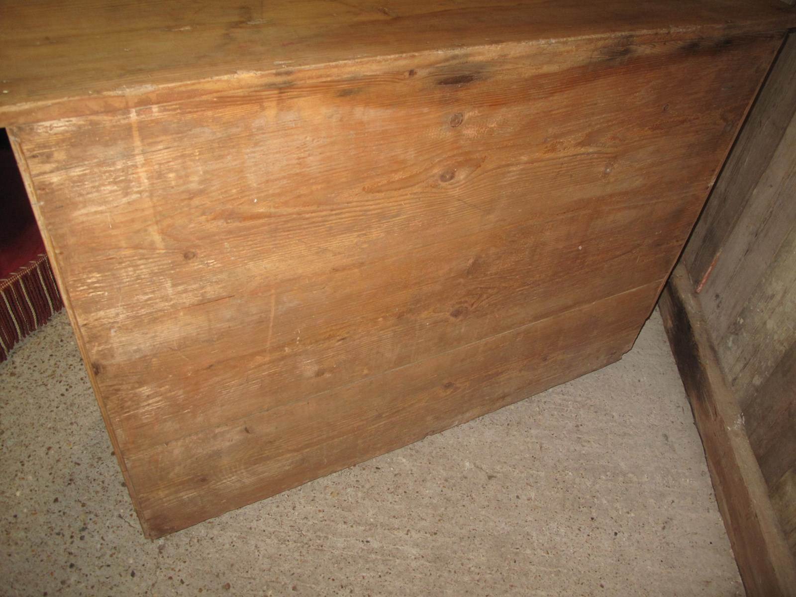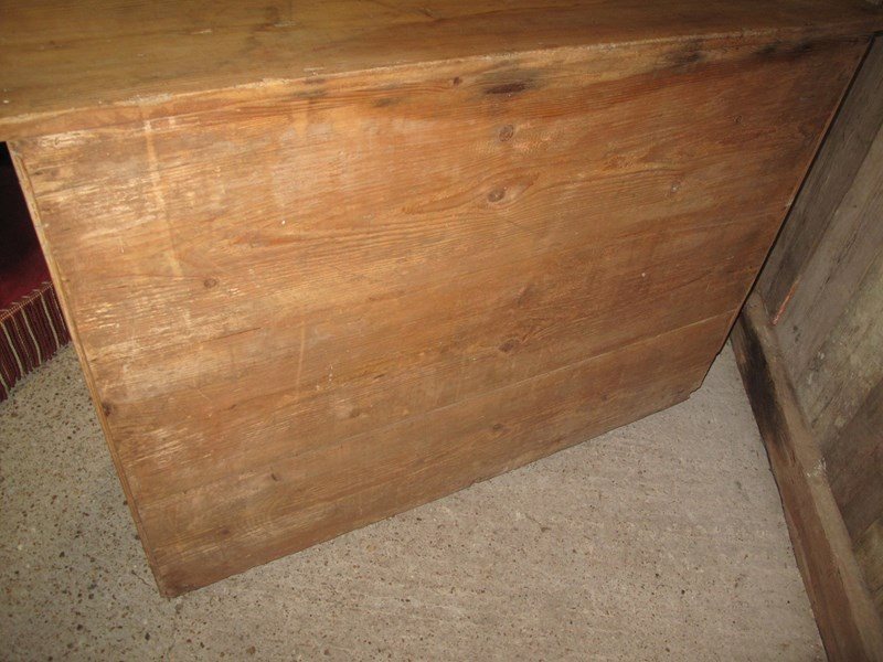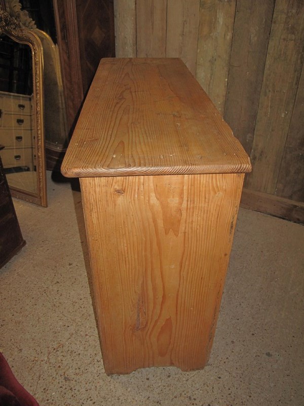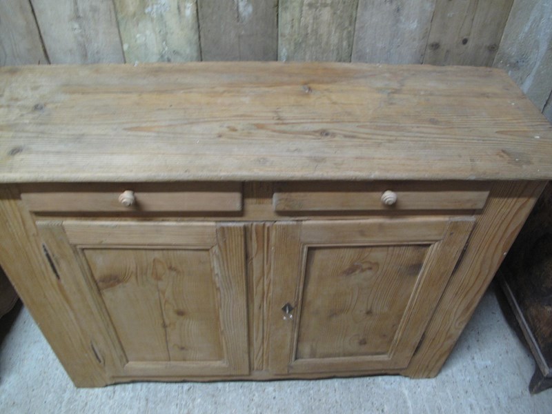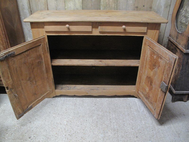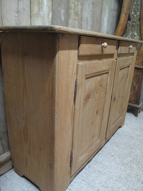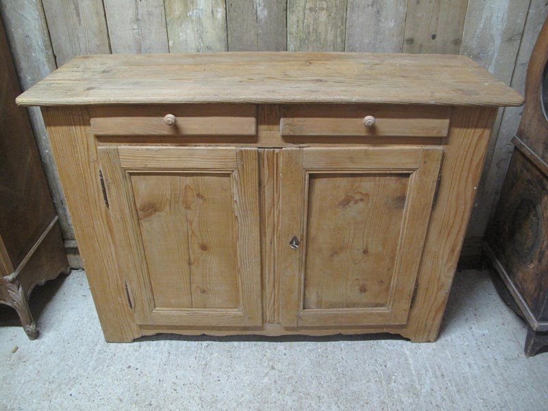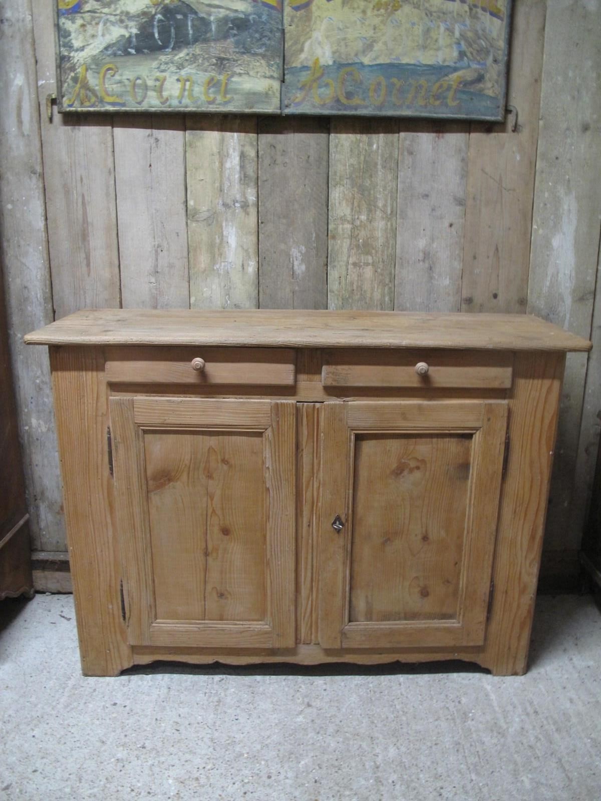 Narrow antique pine cupboard from the Jura in eastern France. The cupboard is made from solid thick planks of pine. The cupboard has two drawers that slide easily and a working lock and key. These early pine cupboards are getting increasingly hard to find. c.1850.