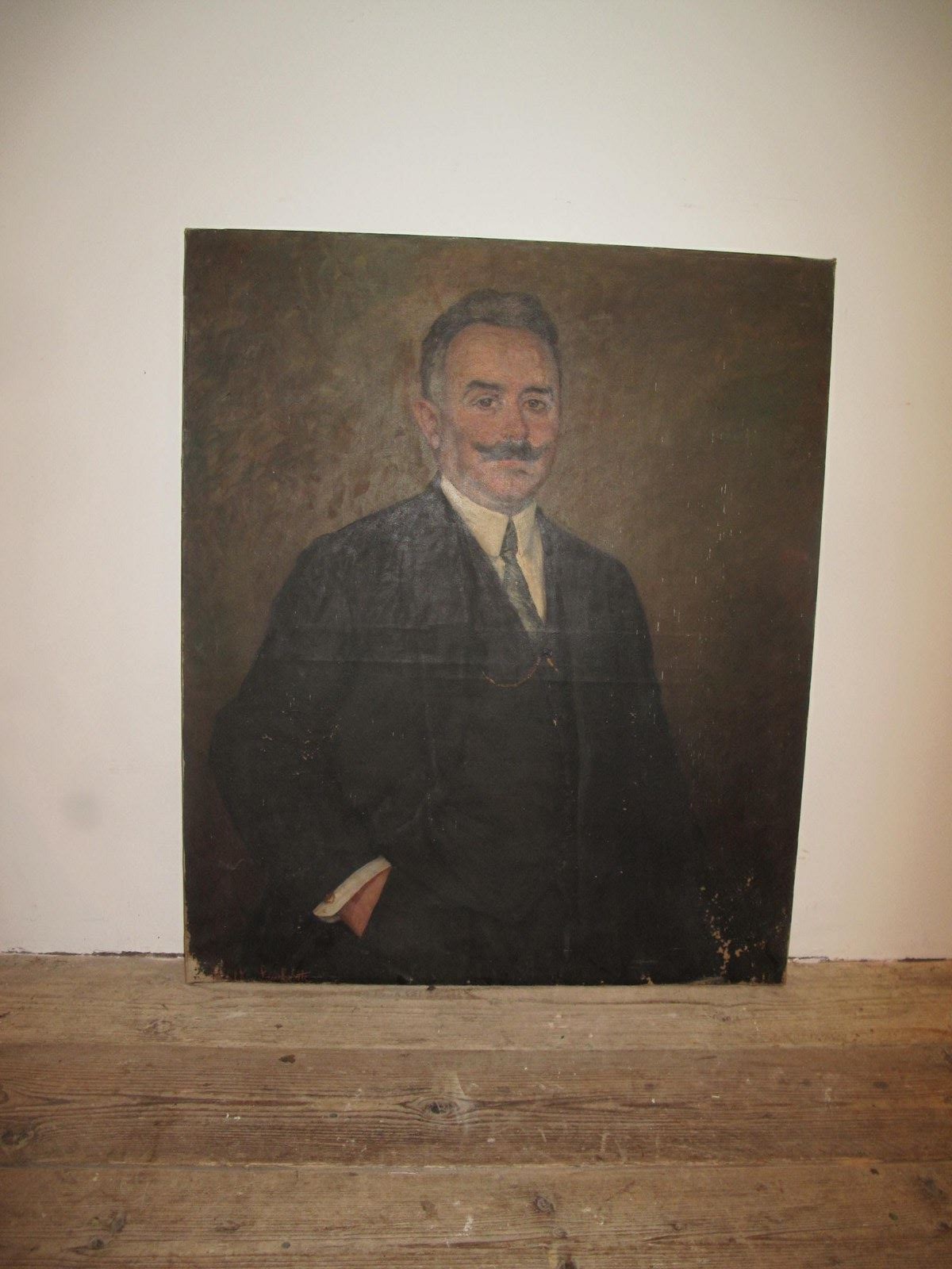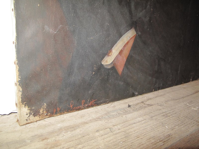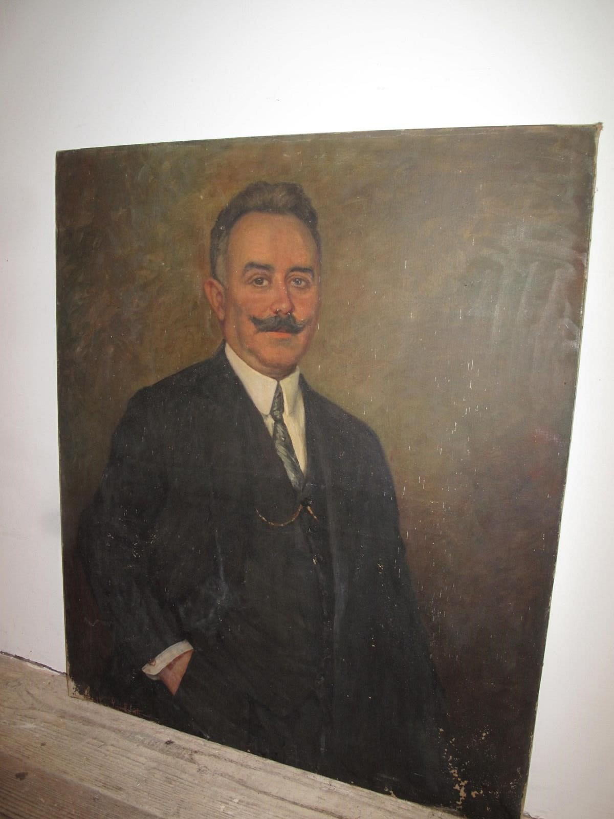 19th century oil on canvas depicting a suited gentleman. Signed bottom left hand side Maria Salkin-Lambiotte 1872-1930