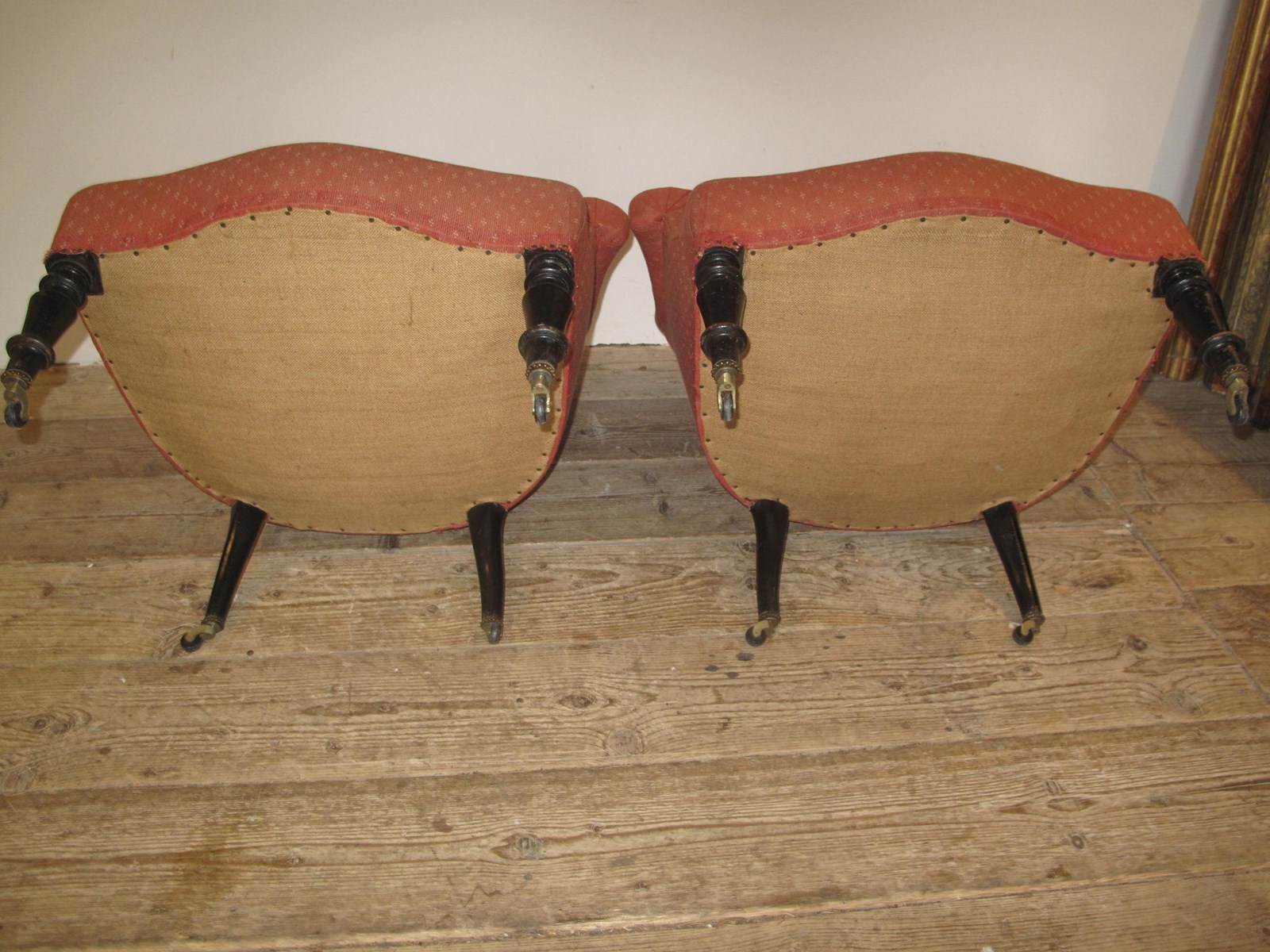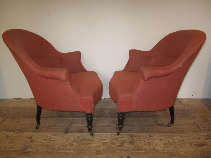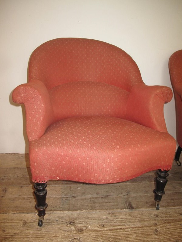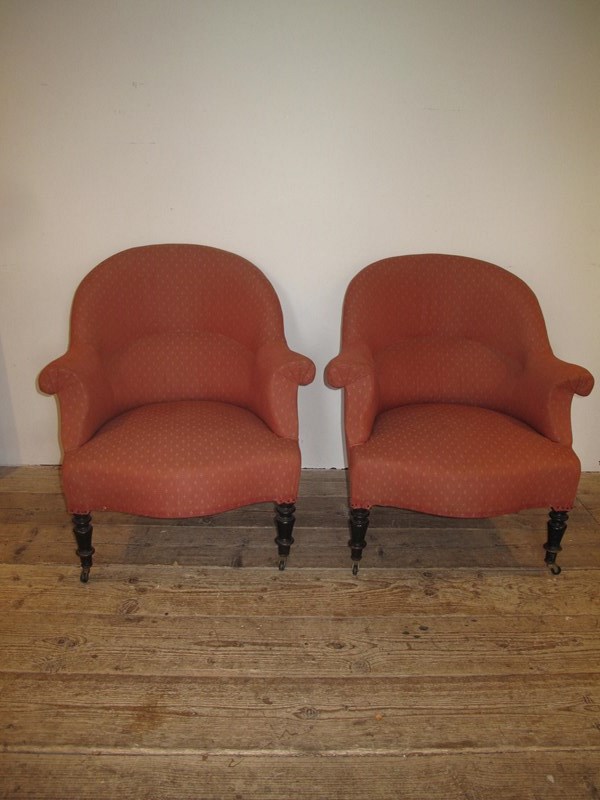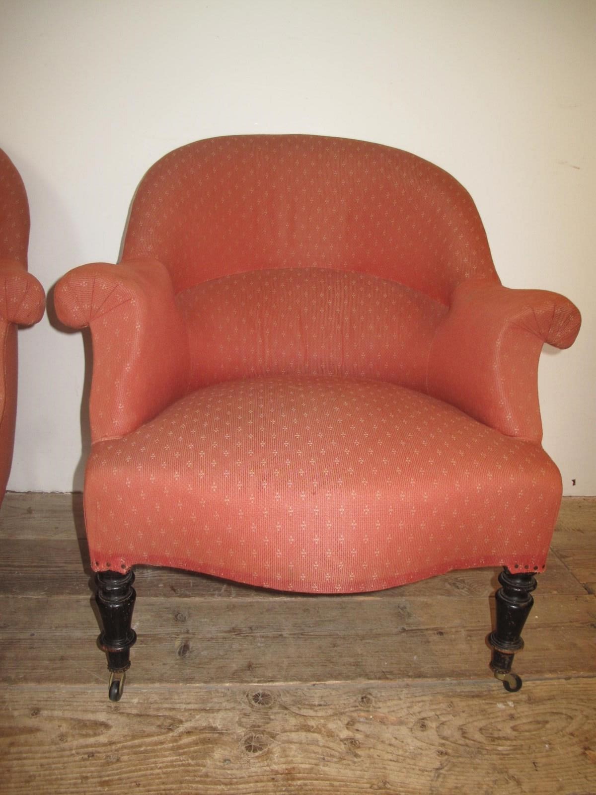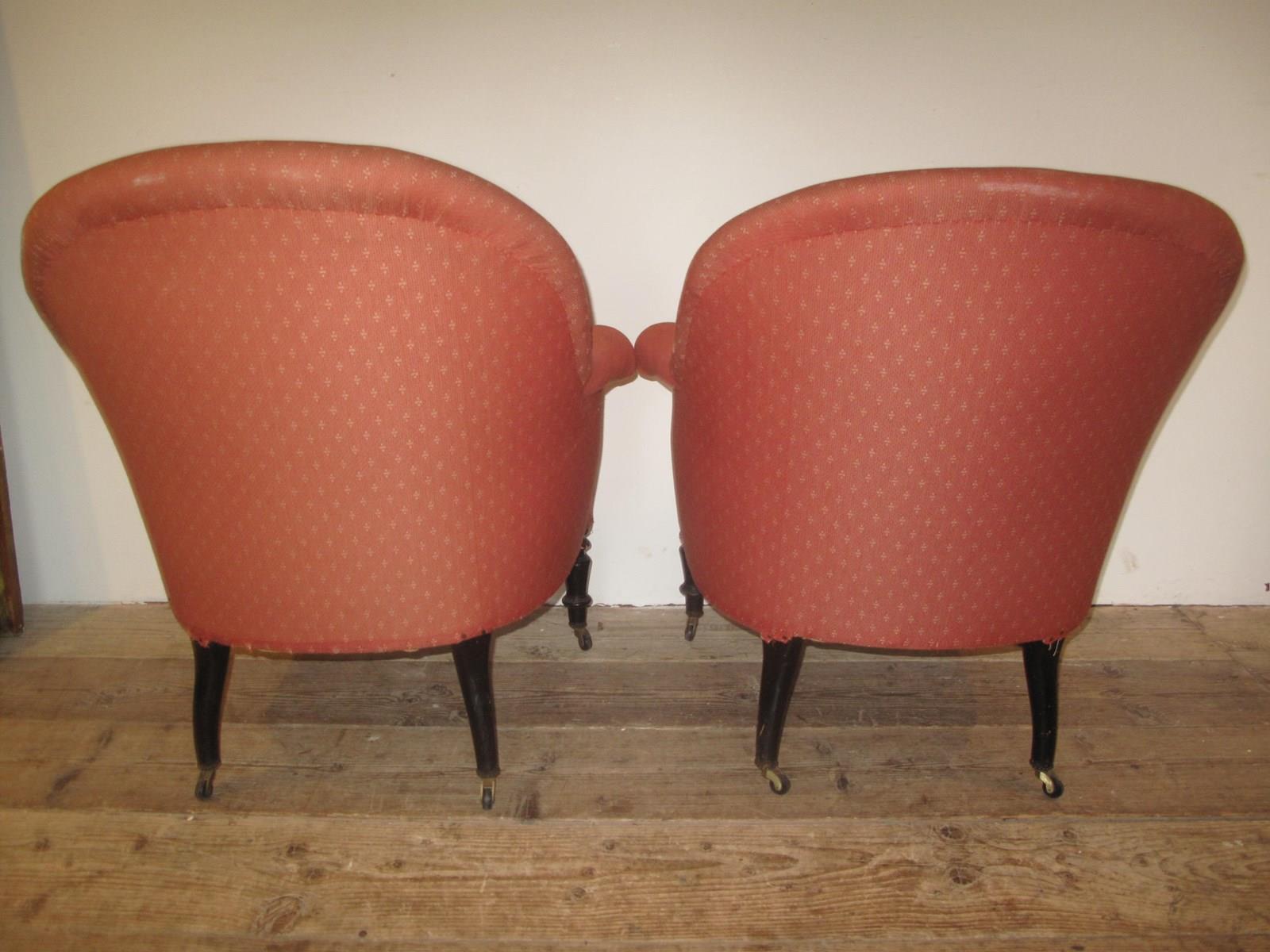 Pair of Napoleon III chairs with the original ebonising to the legs. Both chair are in good solid condition and are ready to use or if you want change the fabric. (Price is for the pair).