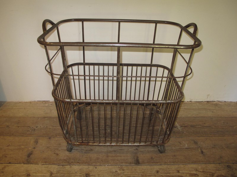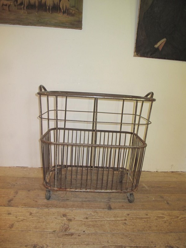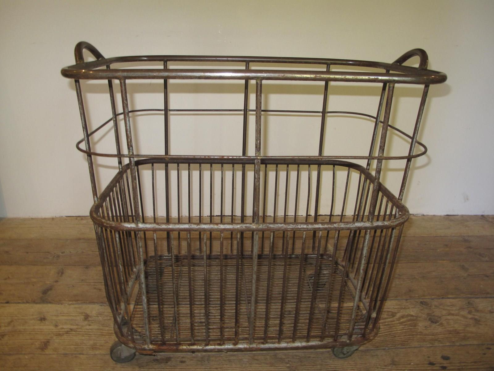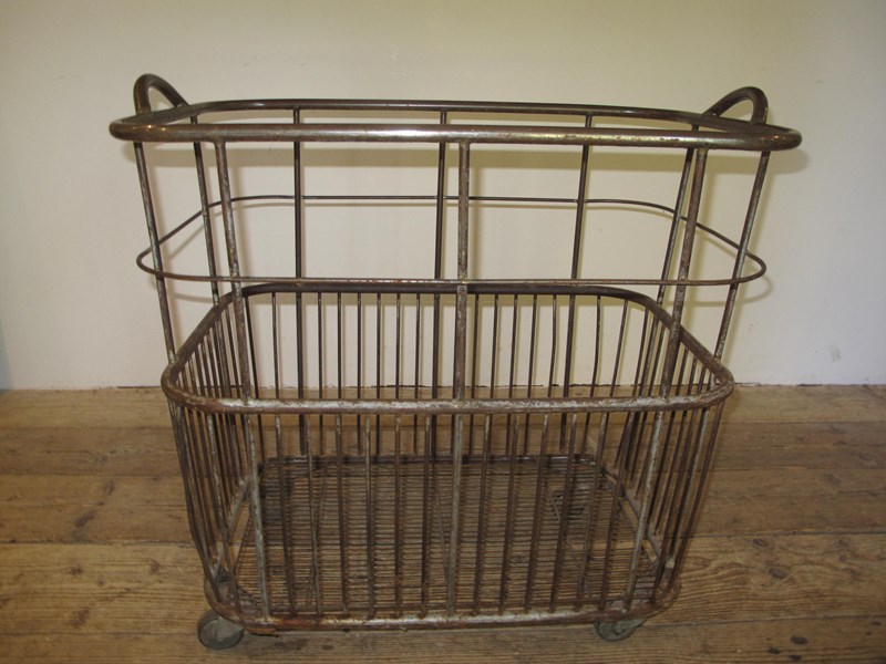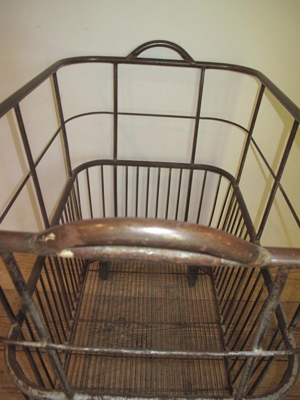 Vintage metal boulangerie trolley with its original metal base. The trolley is in good condition and it moves freely on its wheels. Mid 20th century.