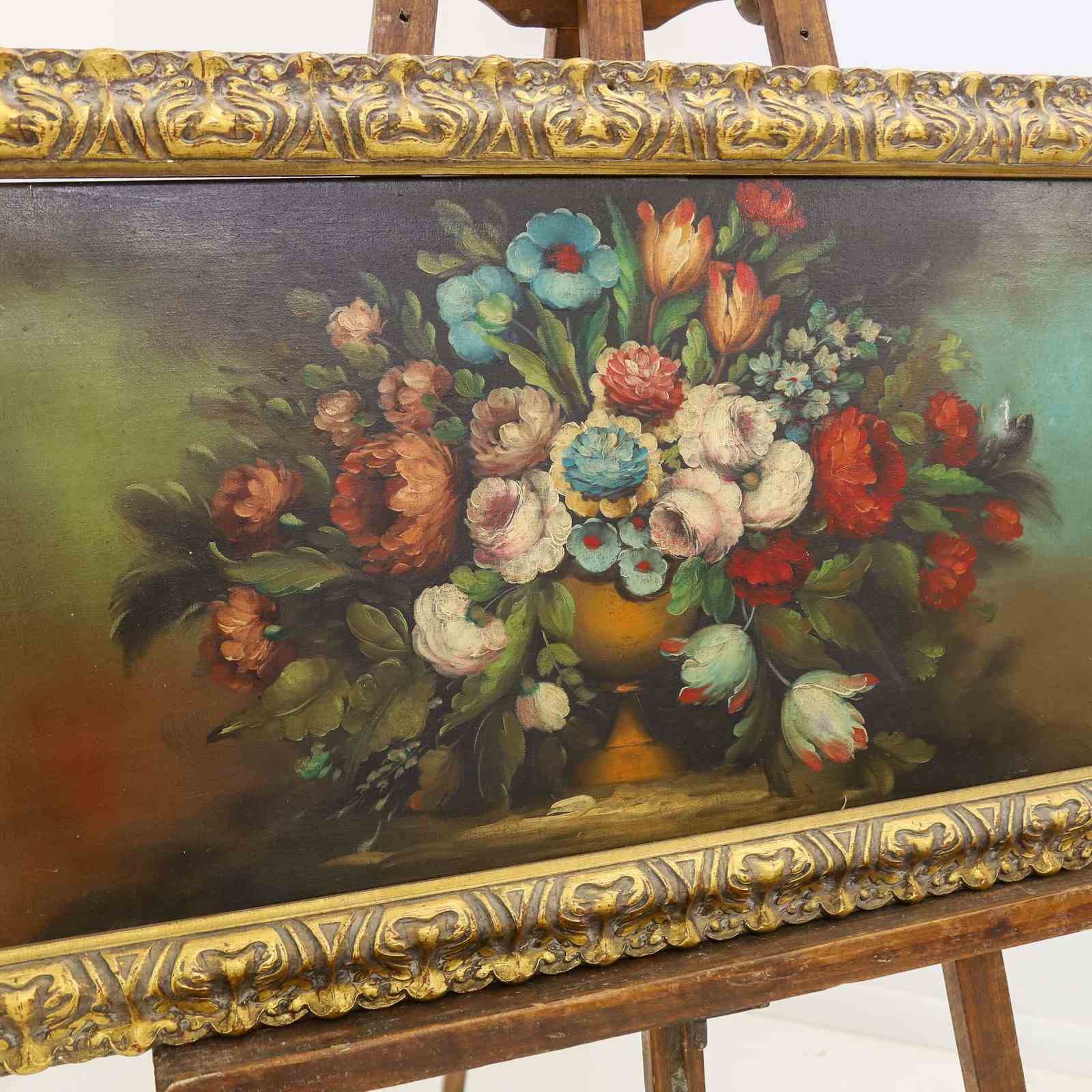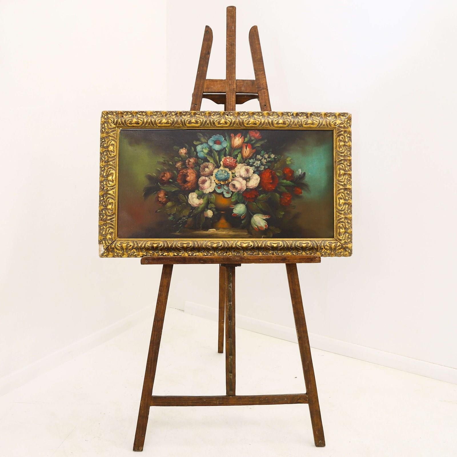 20th Century Italian Oil on Canvas Still Life Painting of Flowers