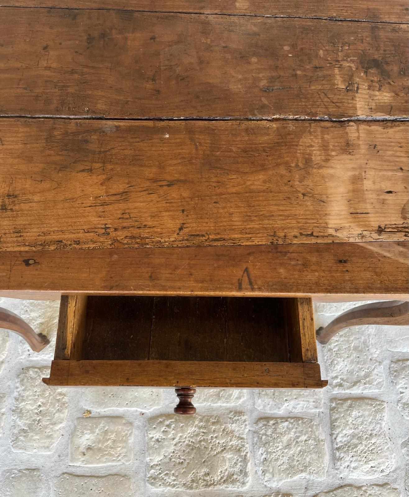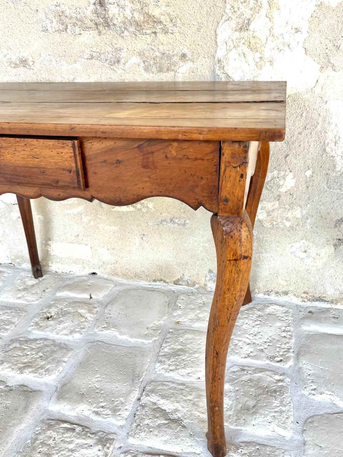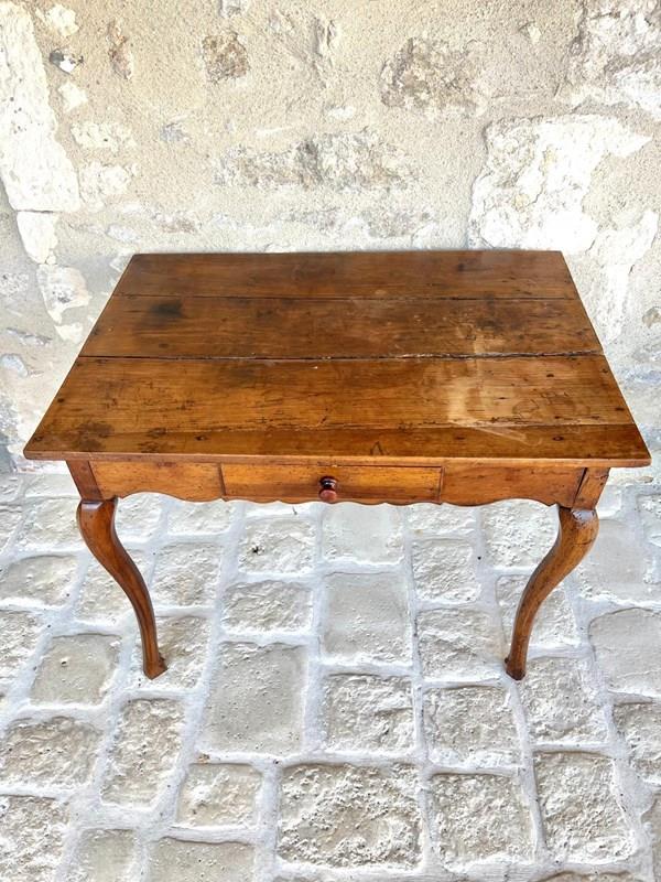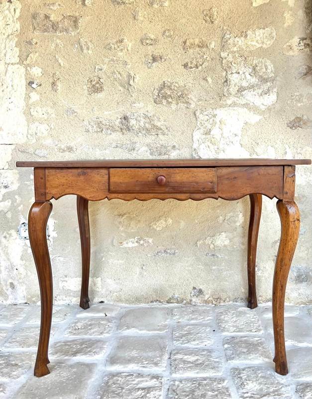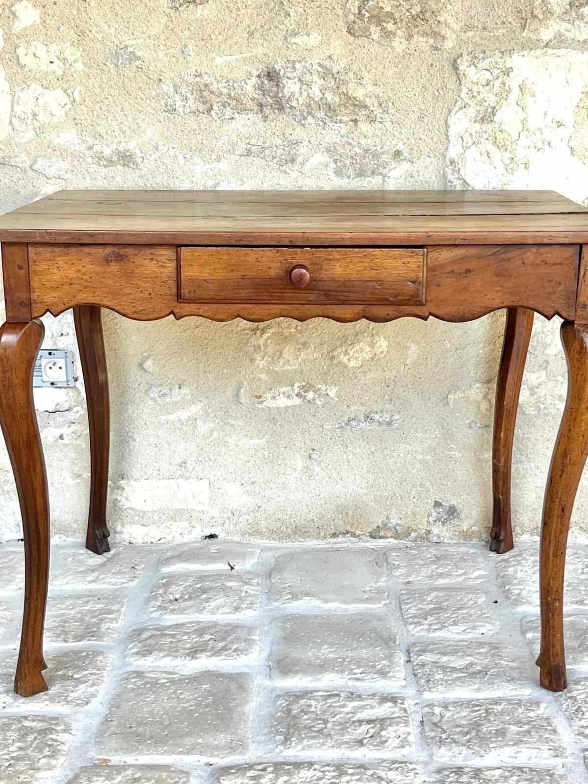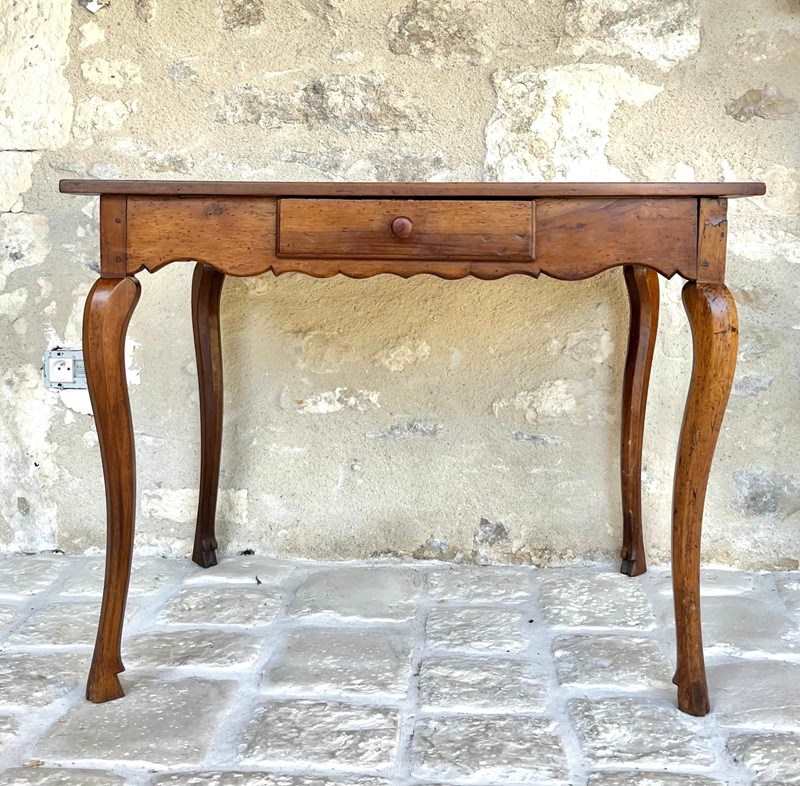 French 18th century fruitwood ladies writing desk or side table. Beautifully proportioned on cabriole legs with a single drawer. Elegant and yet rustic and one of the sweetest desks and in it’s original condition. The top will be evened out and gently polished