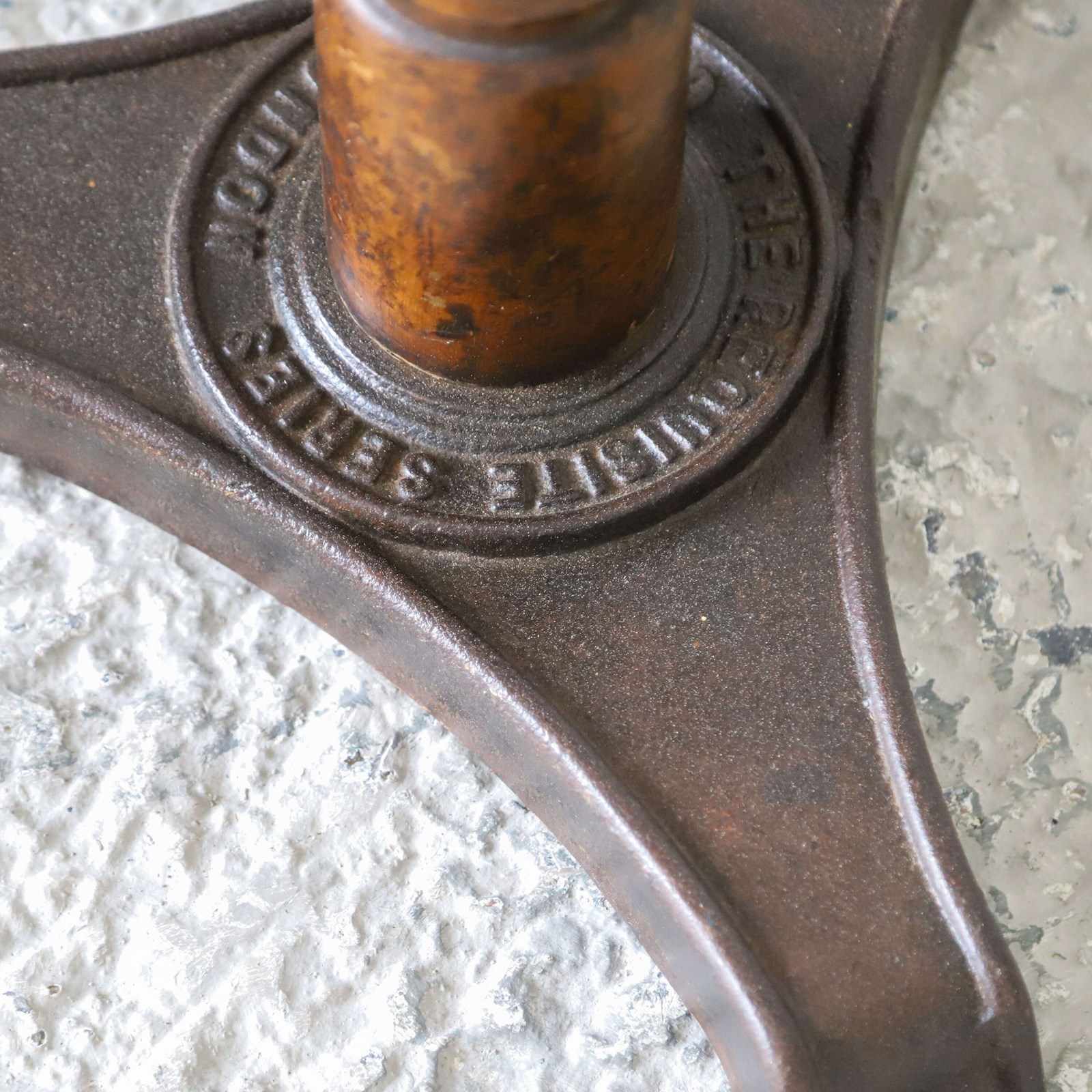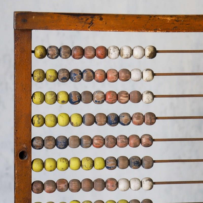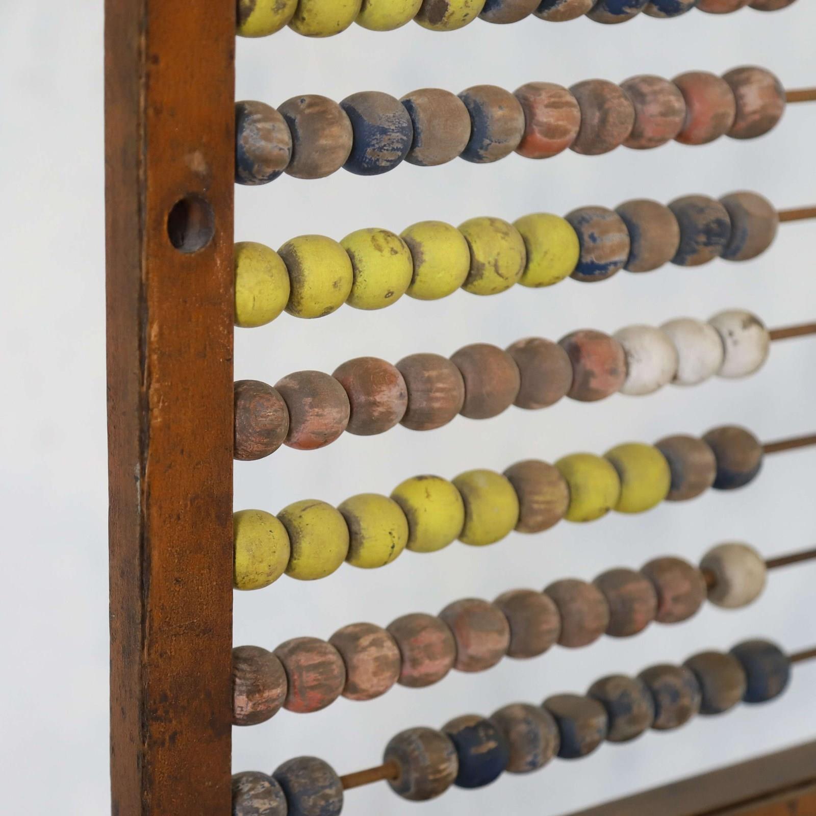 English 19th century school abacus on single mahogany stand. Set on iron base with makers mark all original lovely patina. Size height 142cm width 58cm